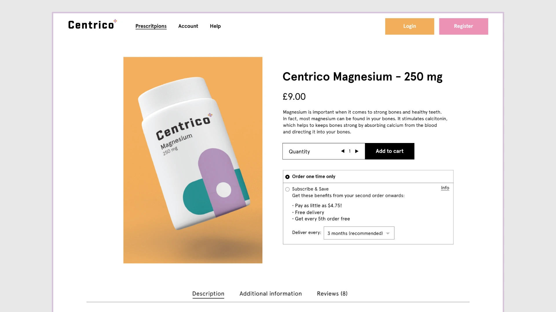 Centrico is a UK based pharma company with several physical locations, which recently started providing supplement subscriptions and prescriptions online with express shipments directly to the customers door. Convenience and personal support are some of the main values they strive for.