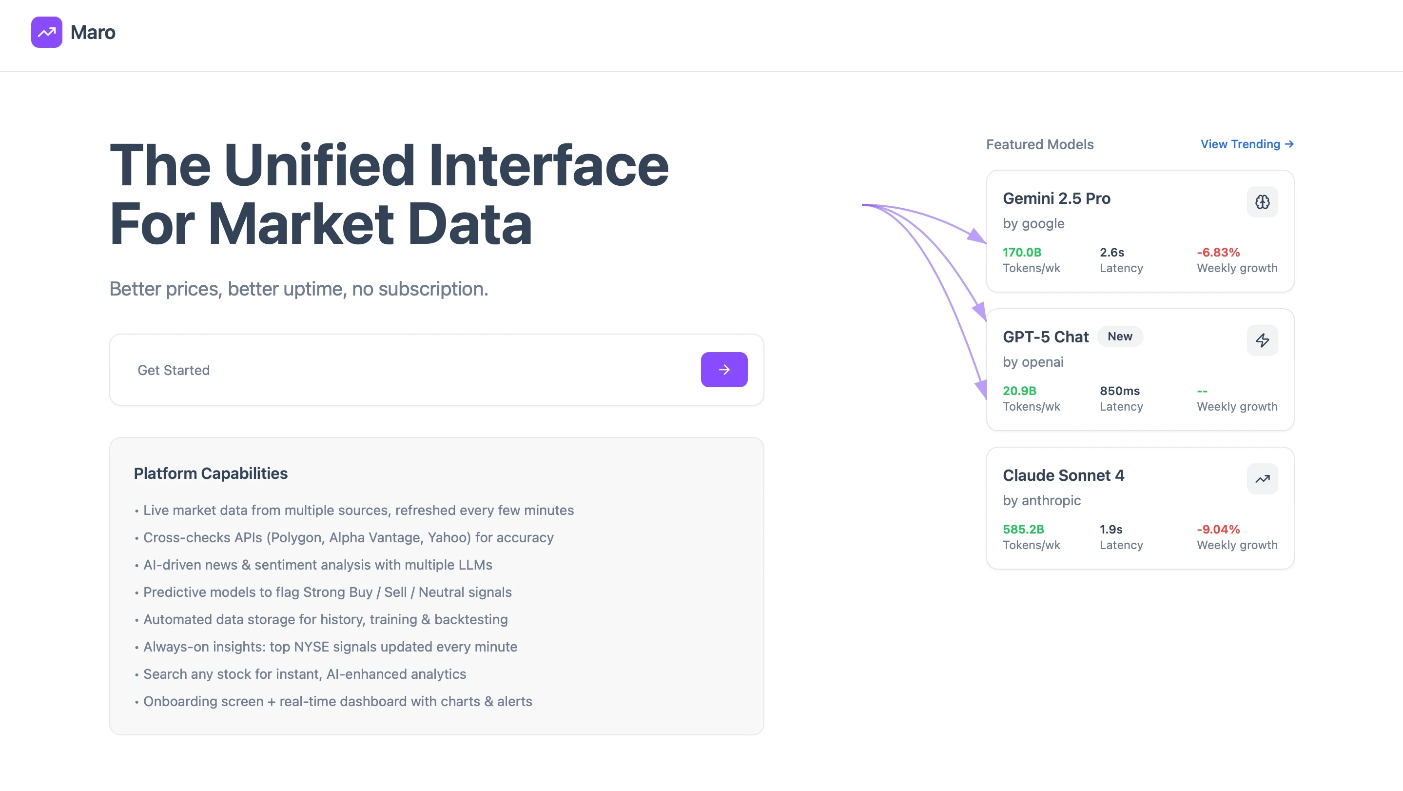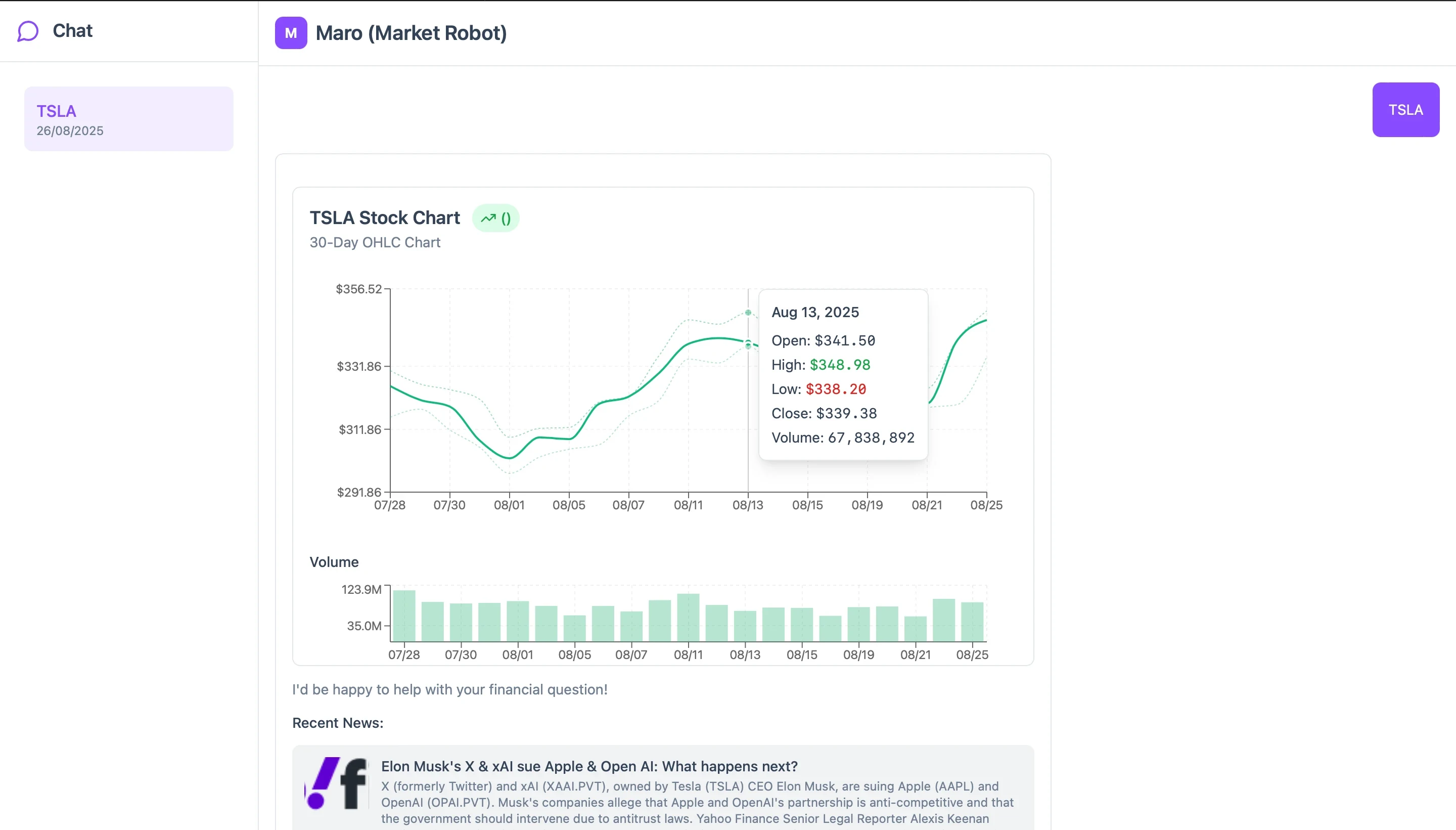 Maro AI Financial Assistant is an intelligent, AI-powered chatbot designed for investors and financial professionals. It leverages real-time stock data, news sentiment analysis, and advanced large language models (LLMs) to provide market insights, predictive analytics, and actionable advice, including sell recommendations.