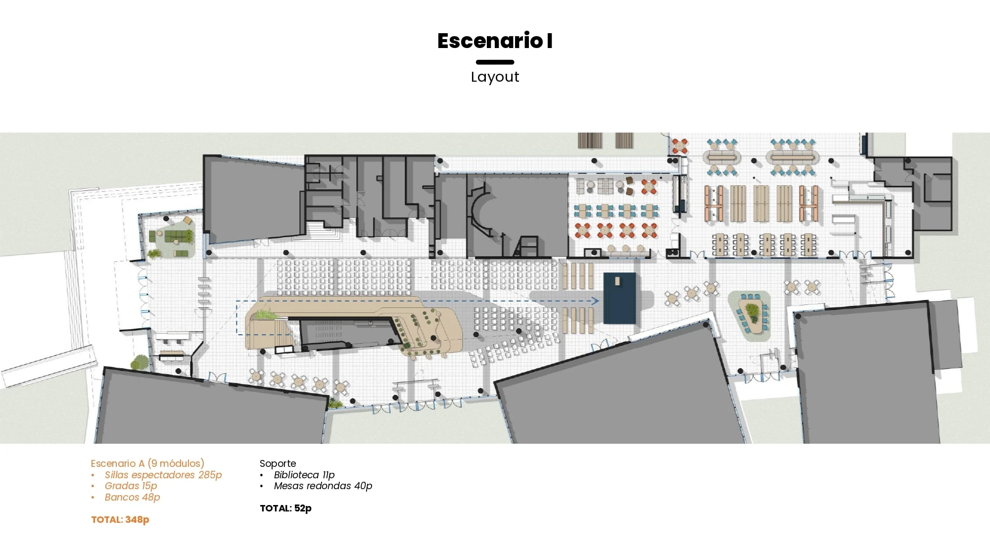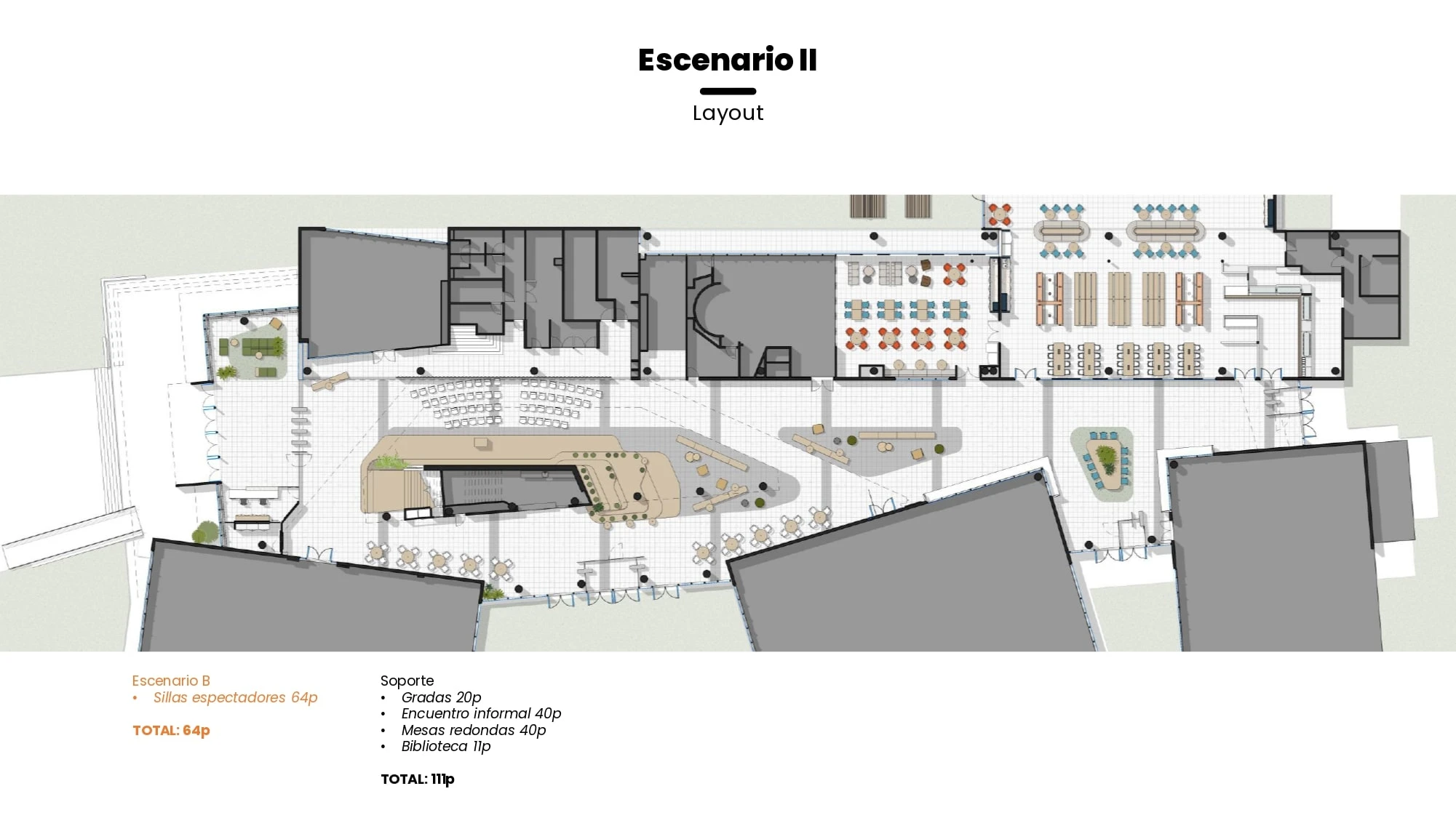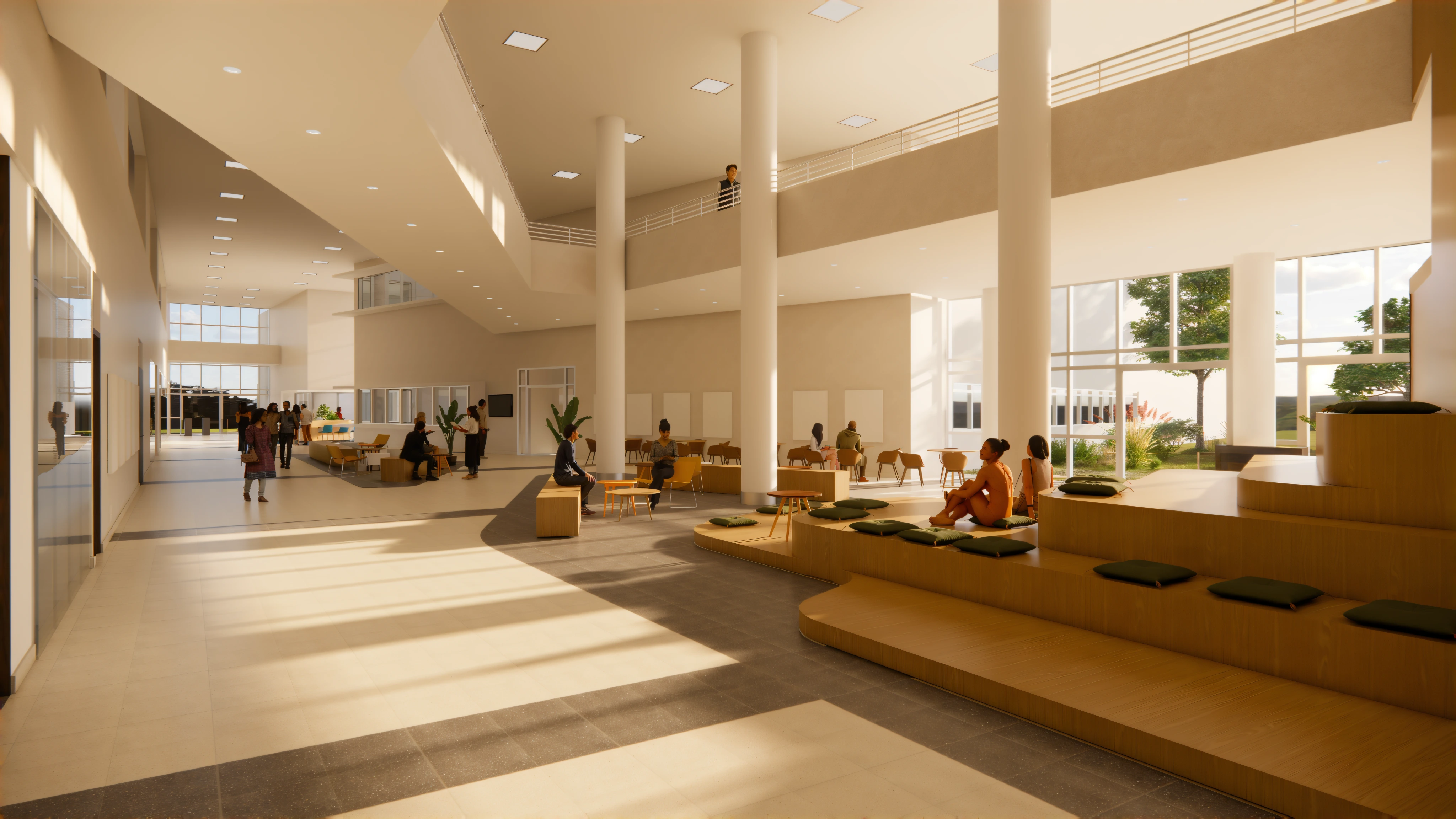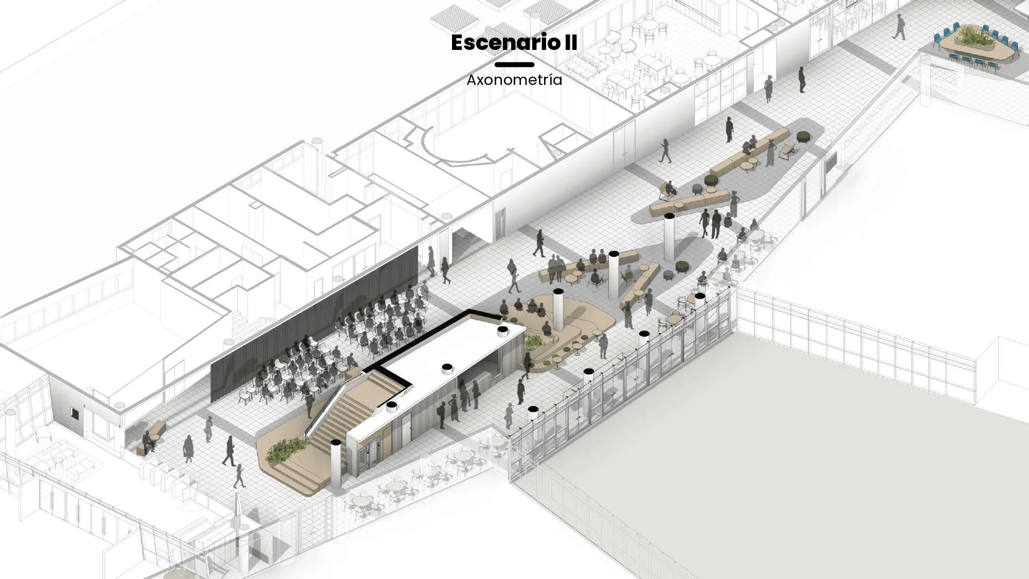 The project aims to revitalize the entrance hall of a university on the outskirts of Buenos Aires. Around the central staircase, a stepped seating structure redefines the space, turning it into a place for gathering and pause.