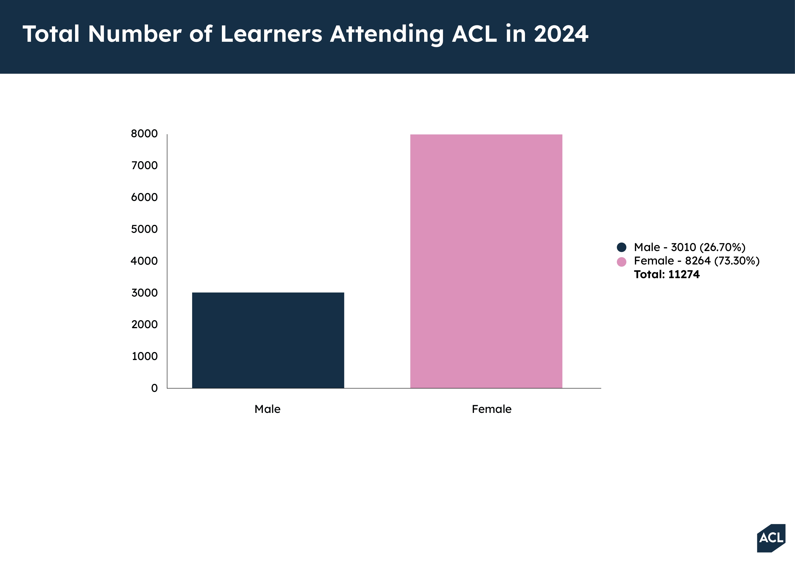 Bar Chart Showing Total Local Number of Learners at ACL in 2024. Data & Copy Provided by ACL.