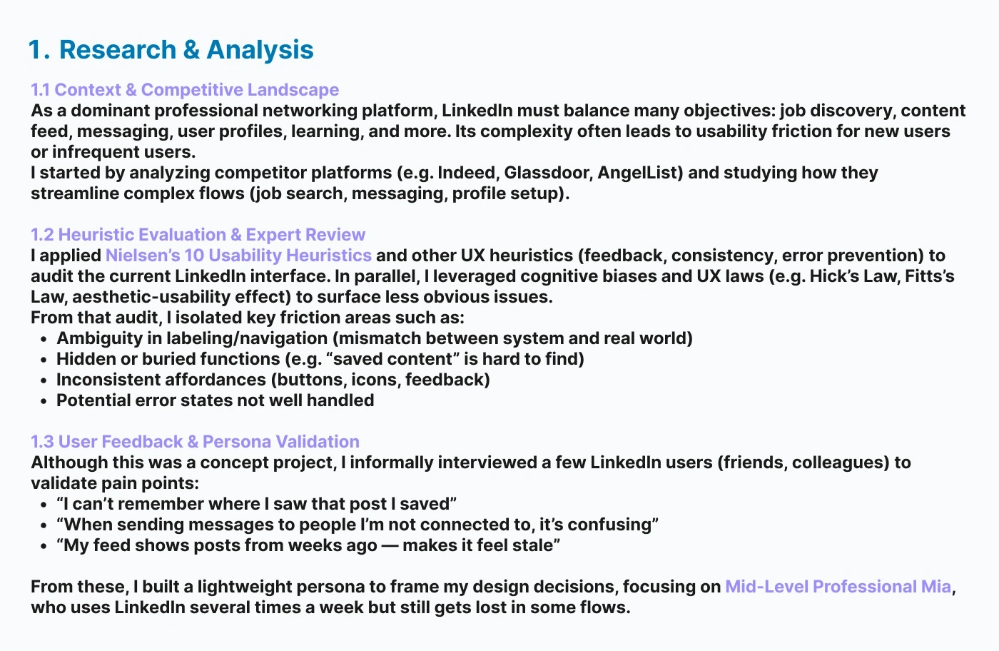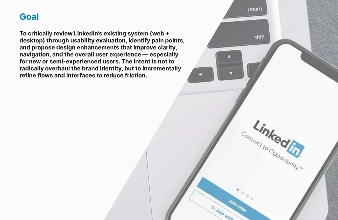 To critically review LinkedIn’s existing system (web + desktop) through usability evaluation.