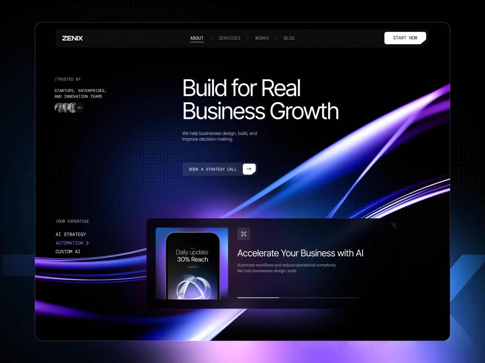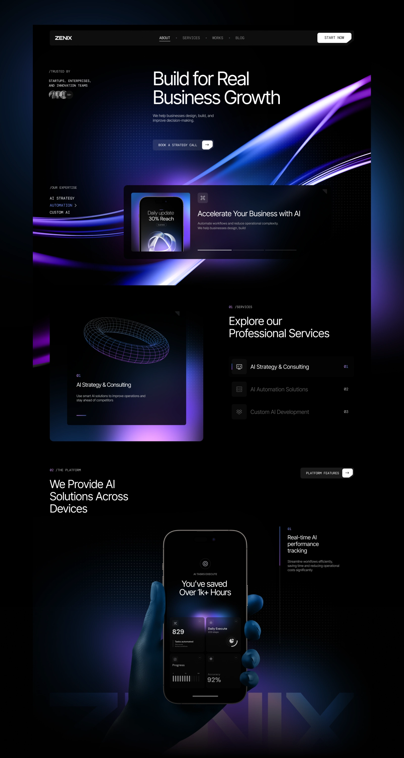 Zenix is a high-performance SaaS website template crafted specifically for modern AI agencies. The goal was to create a visually striking yet conversion-focused foundation that helps AI-driven businesses launch faster and stand out in a crowded market.