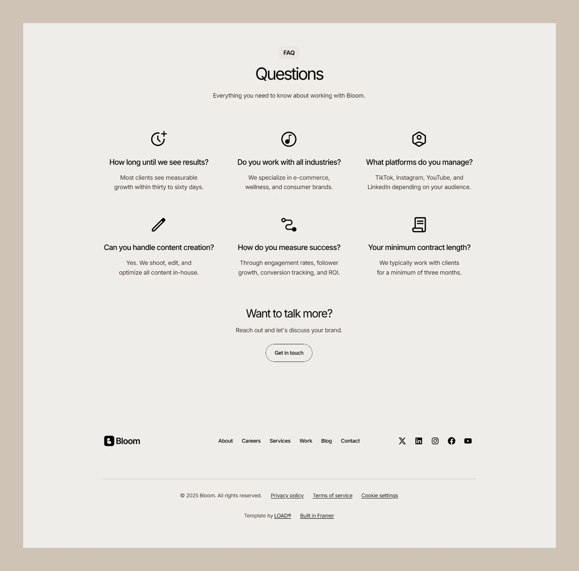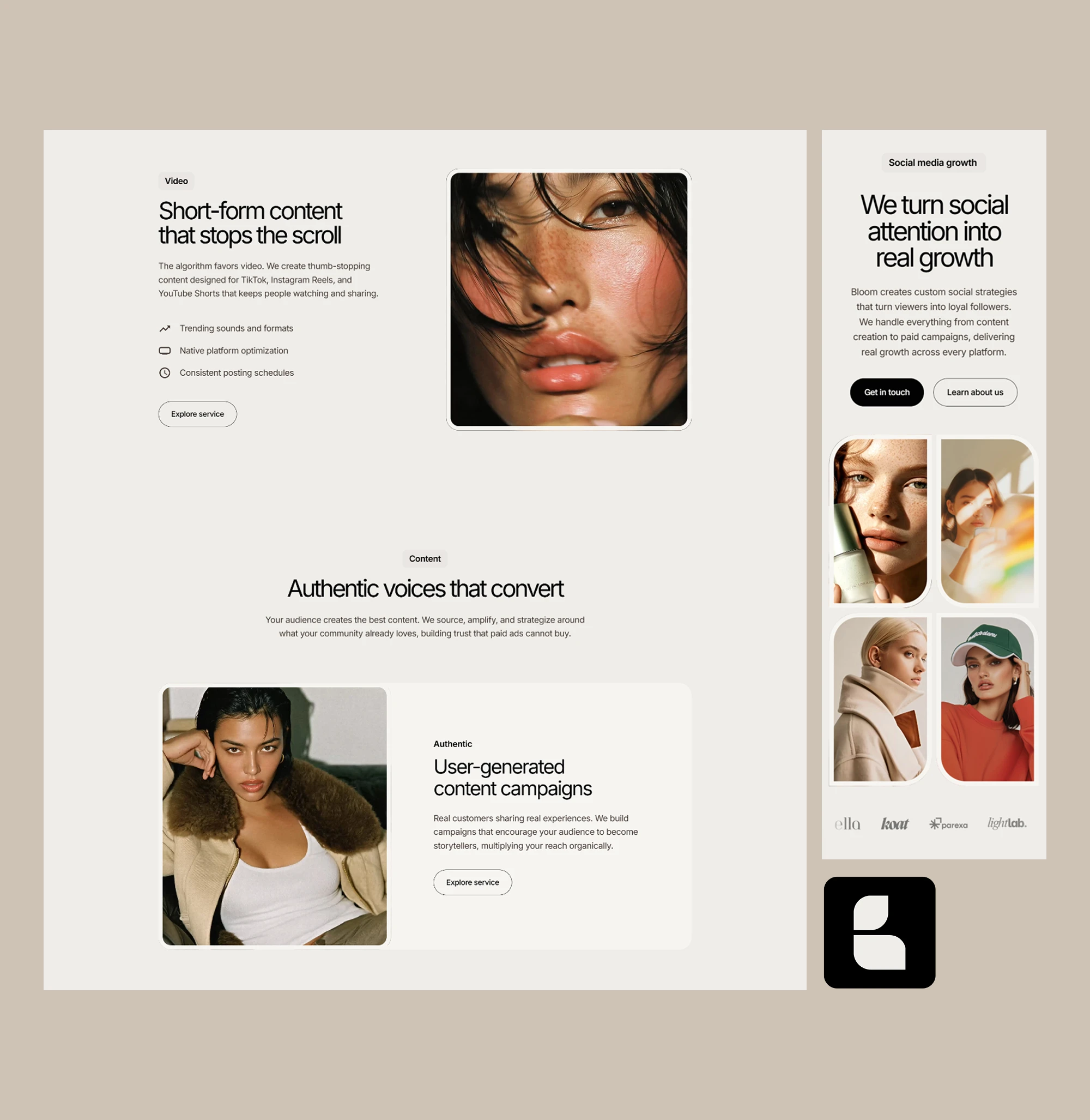 Bloom is a modern, SEO-optimized Framer template built for social media agencies and creators focused on short-form content, UGC, and growth-driven strategies.