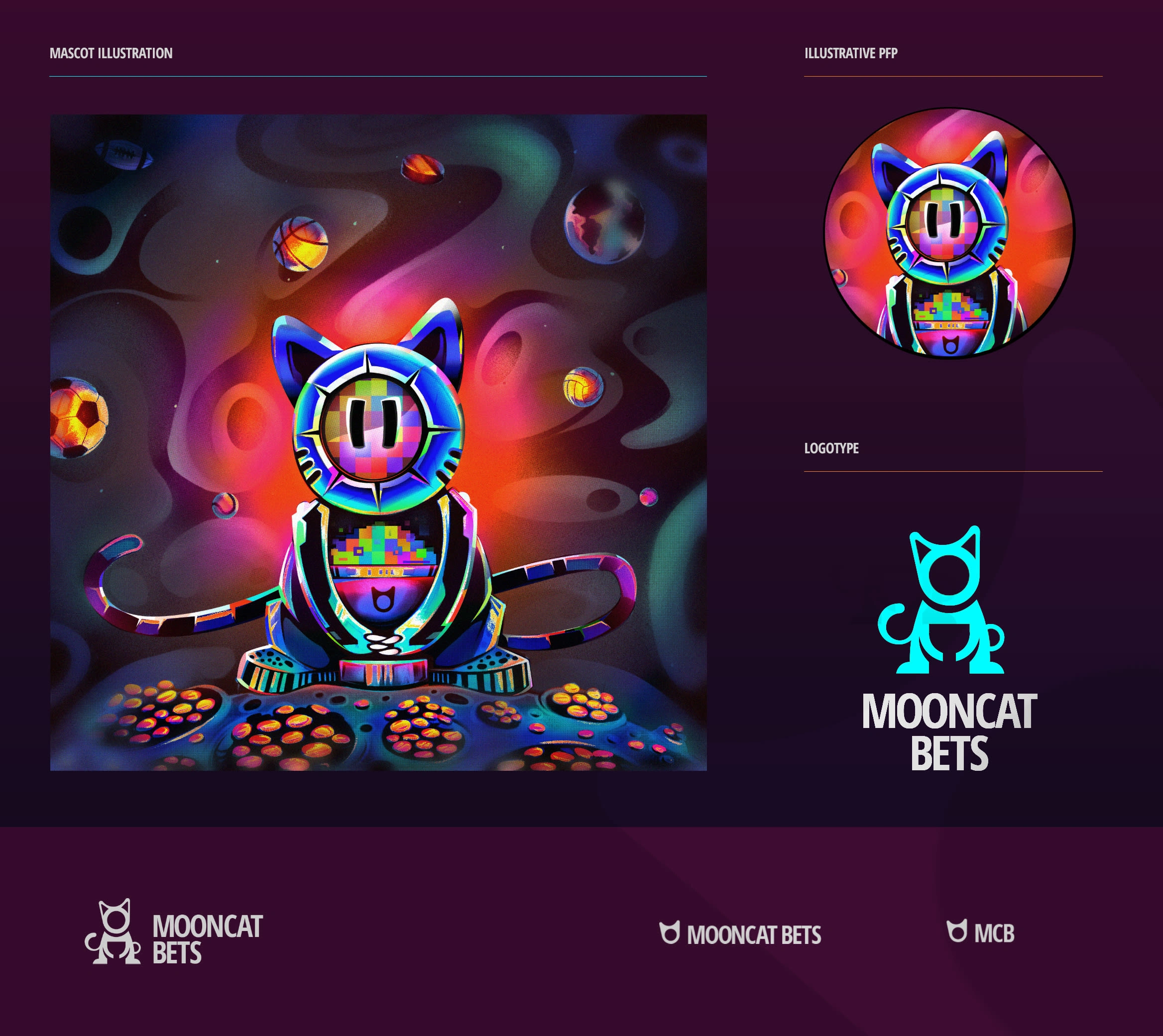Designed logotype and mascot for Mooncat Bets, a crypto-native, community-first betting platform. Bold, memeable character built to anchor the brand.