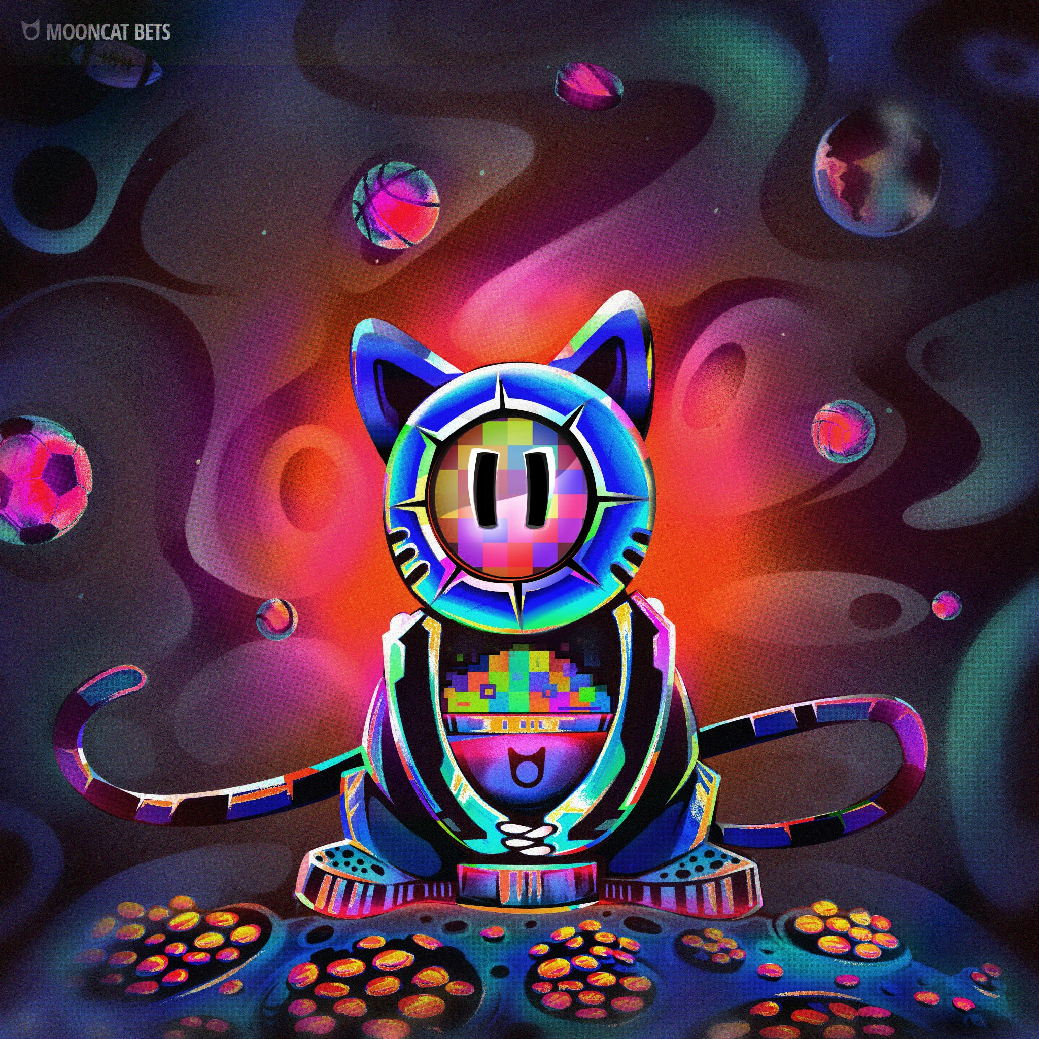 The answer turned out to be a TV-headed cat sitting on the moon, surrounded by orbiting sports balls and crypto coins — drawn by hand, vectorised with precision, and rendered into a world.