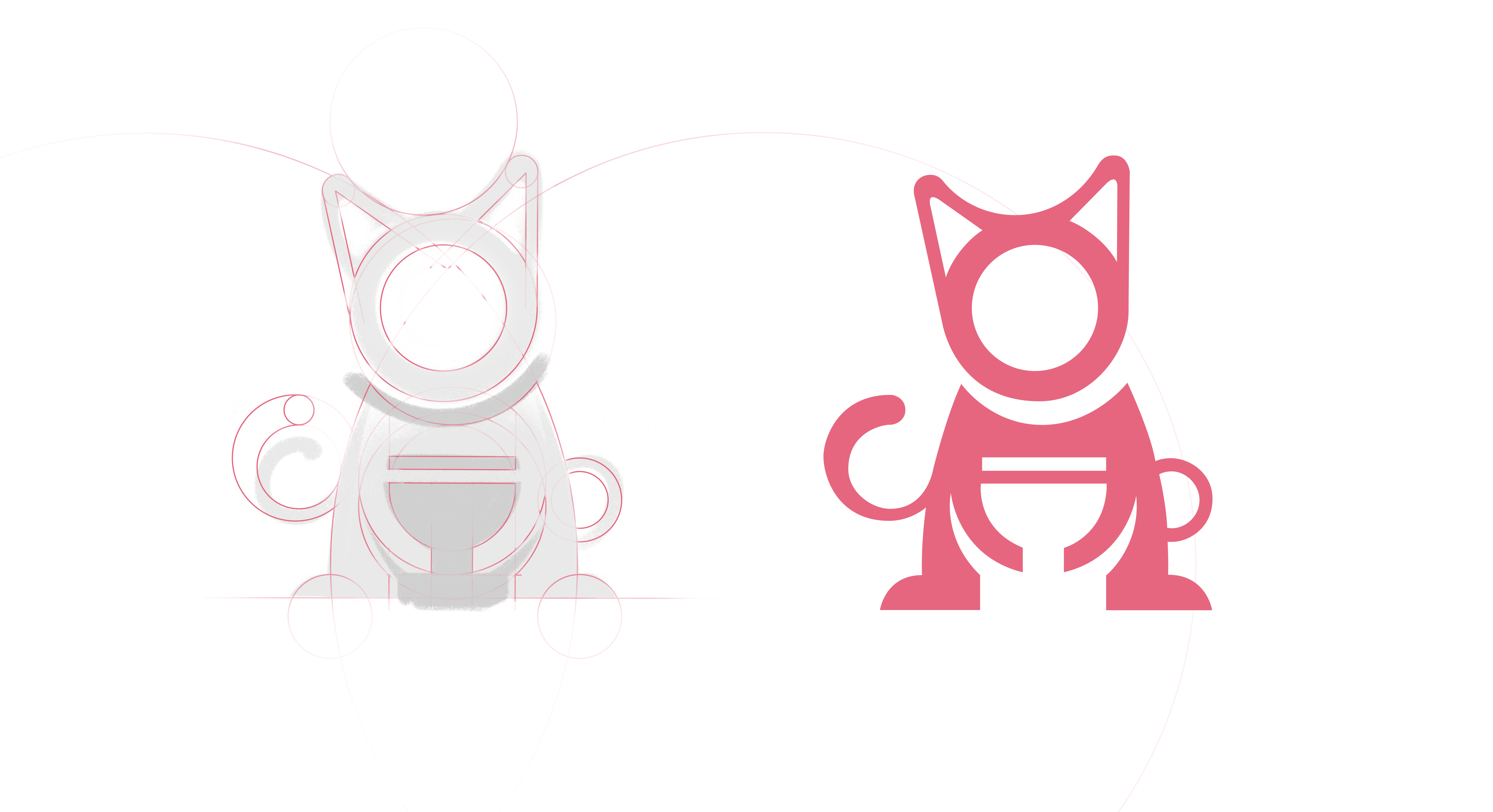 The mascot was drawn by hand in Procreate — no vector shortcuts, no AI generation. Stroke by stroke, the character took shape: cat ears, circular head, trophy body. The screen recording captures every revision in real time — proportions pushed and pulled, limbs redrawn, personality iterated until the posture felt right.