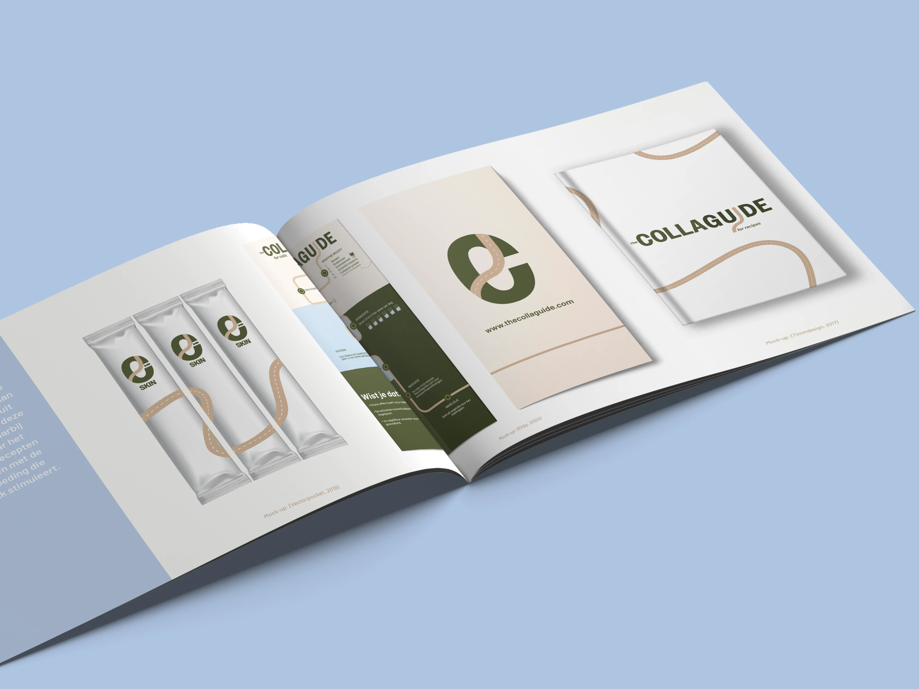 For The Collaguide, a collagen supplement brand, I created a complete brandbook to establish a strong and consistent identity. The project started with extensive research into trends, target audiences, and consumer behavior around health and beauty. From this foundation, I developed the mission, vision, and brand values, positioning the brand as a modern, adventurous guide to collagen.