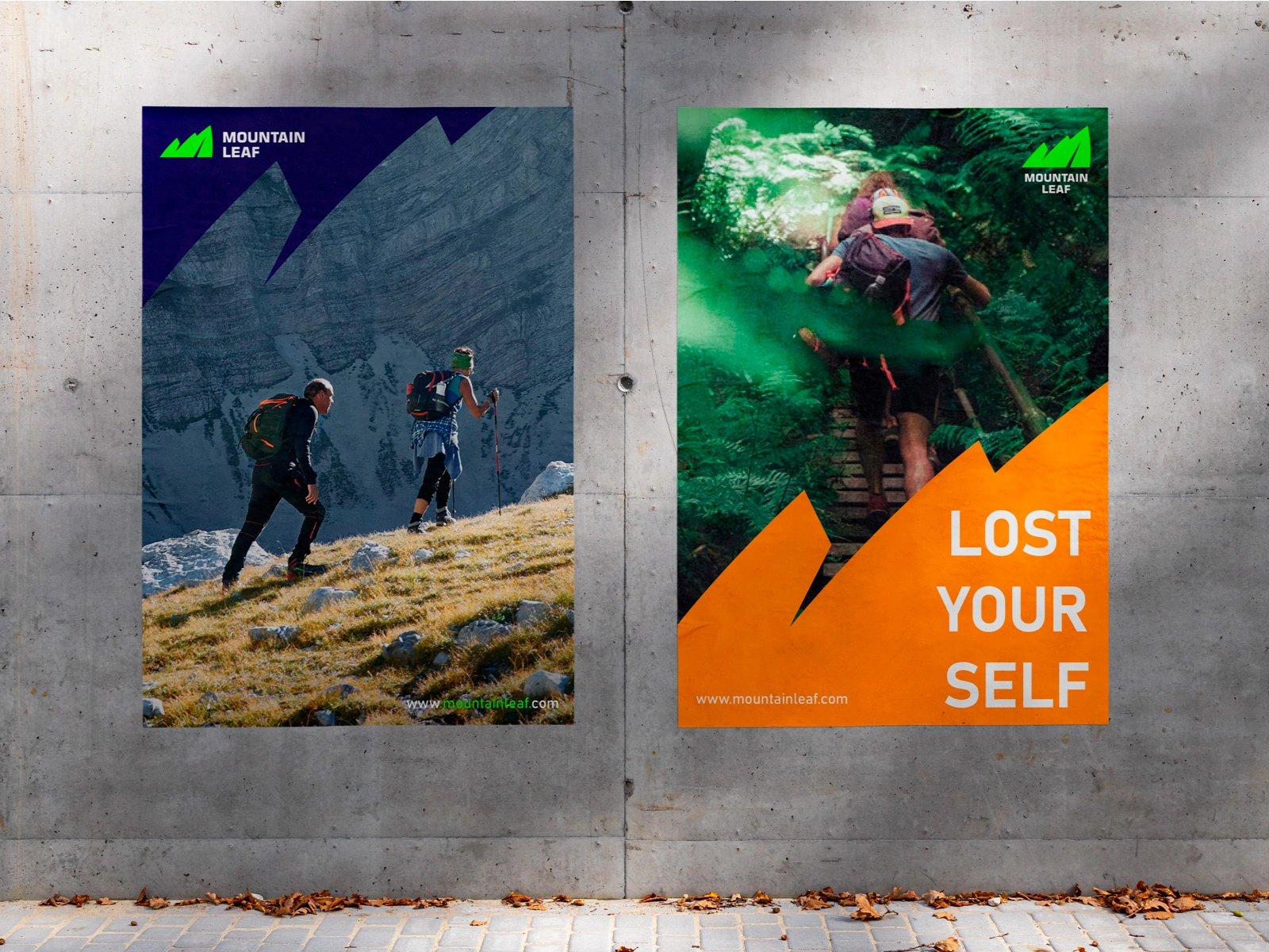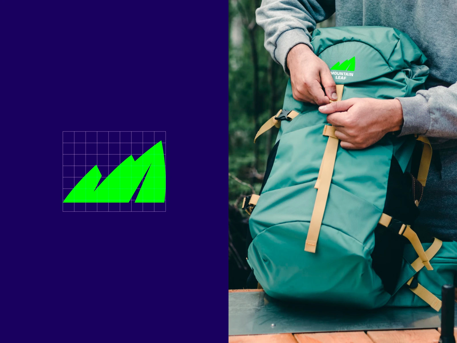 Mountains and leaves are the most powerful elements to create a brand identity and match the brand name. So we decided to use these two things become the logo. We use contrast color, bright and dark to make it stand out, neon green and navy blue. Neon and bright colors also serve as markers for easy discovery for explorers when out in the wild.