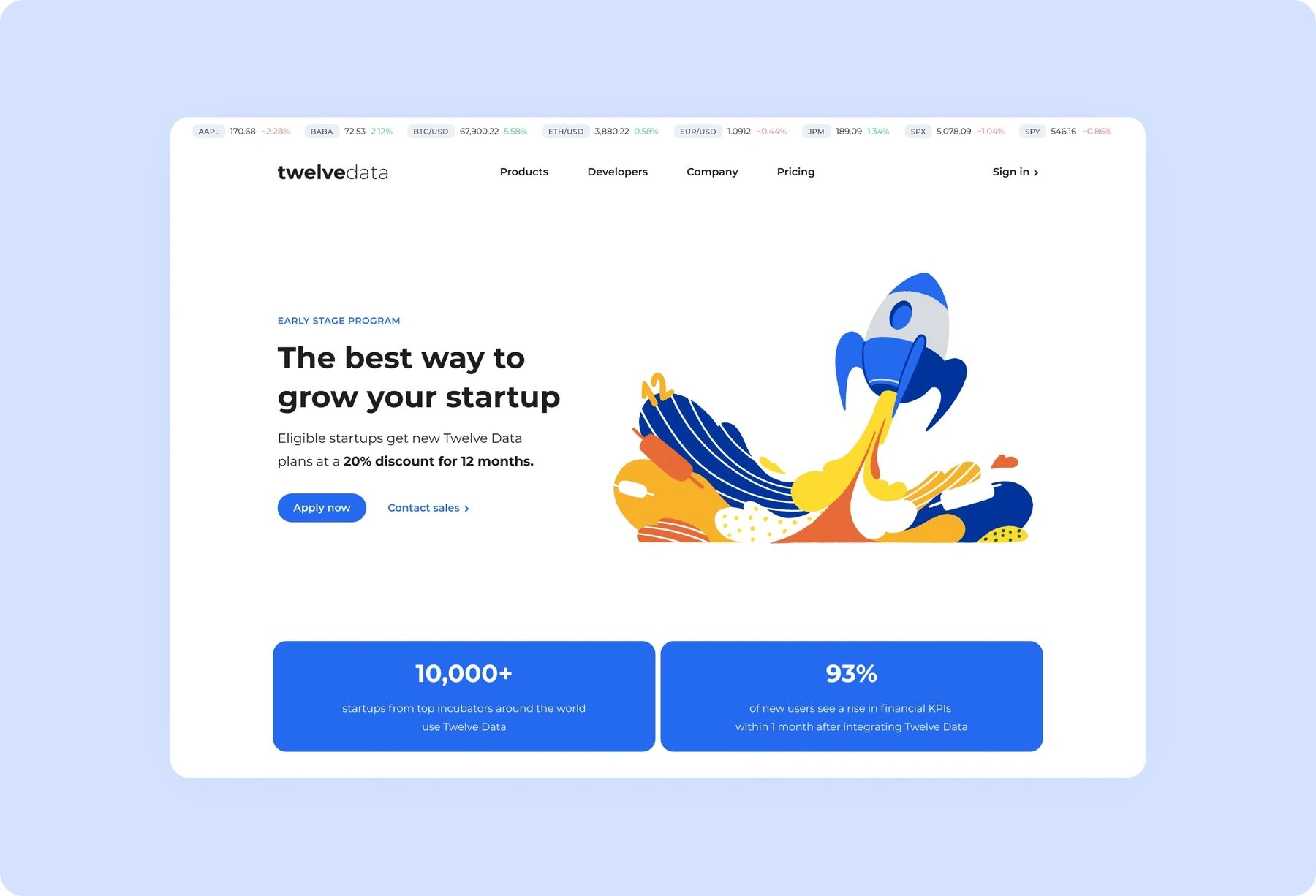 Twelve Data is a B2B/B2C financial data provider. We redesigned the marketing site, IA, dashboard, pricing experience, and email flows, while managing a cross-functional team and driving measurable growth.