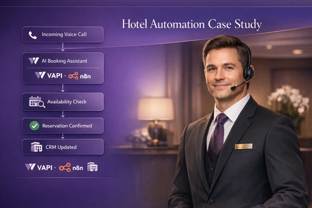 I built a human-like AI voice booking assistant that handles inbound hotel calls, answers availability and pricing questions, and automates booking confirmation.