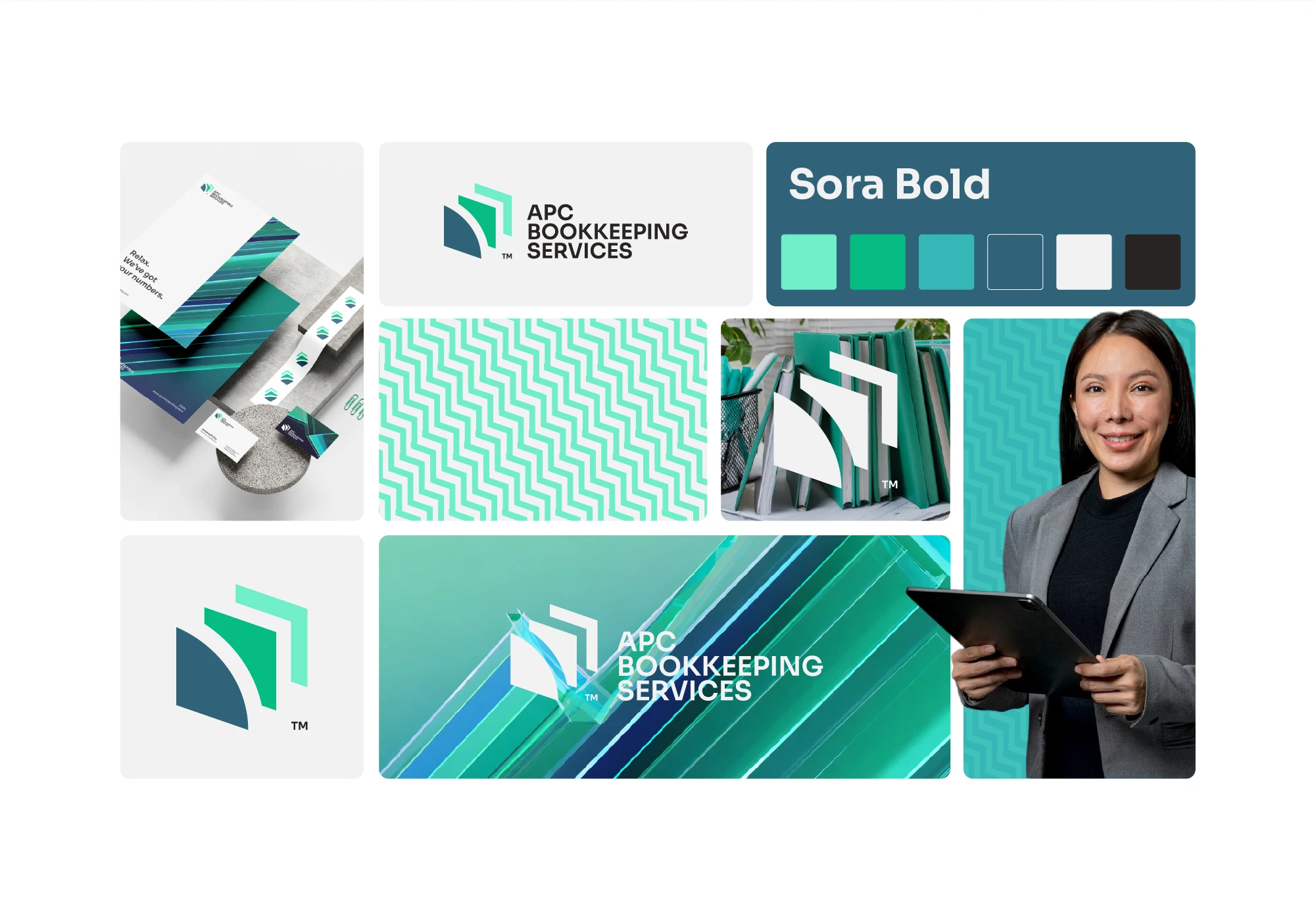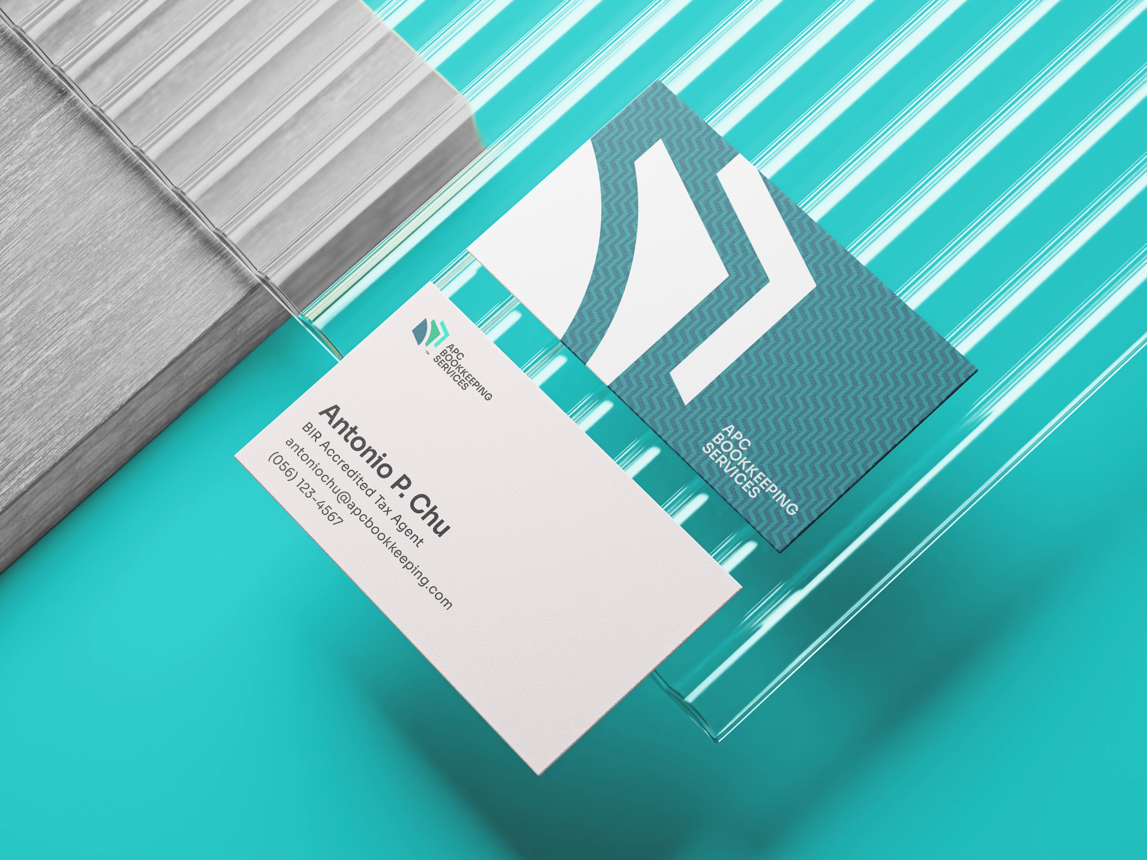 Visual Identity Revamp: We modernized APC Bookkeeping's logo, replacing the dated design with a clean and sophisticated aesthetic. The color palette of jade, dark blue-green, and mint green was carefully selected.