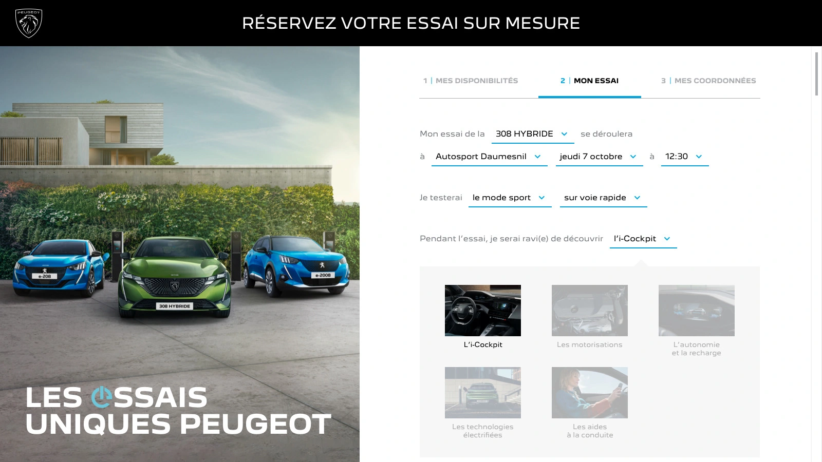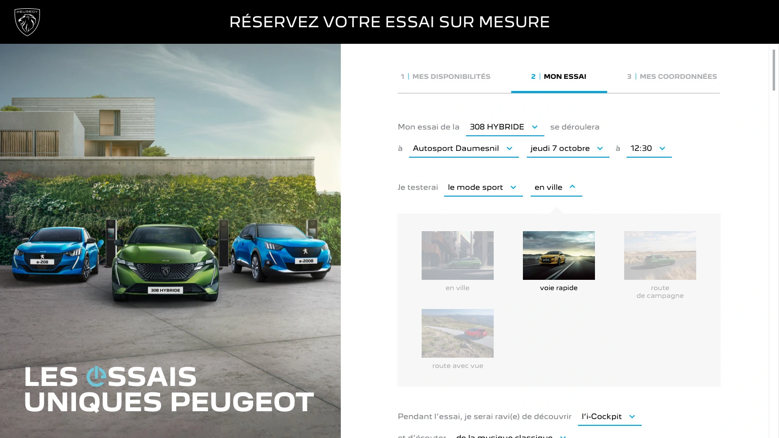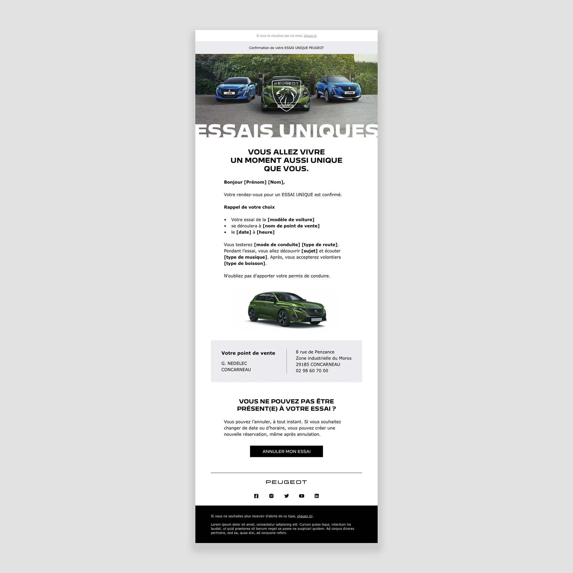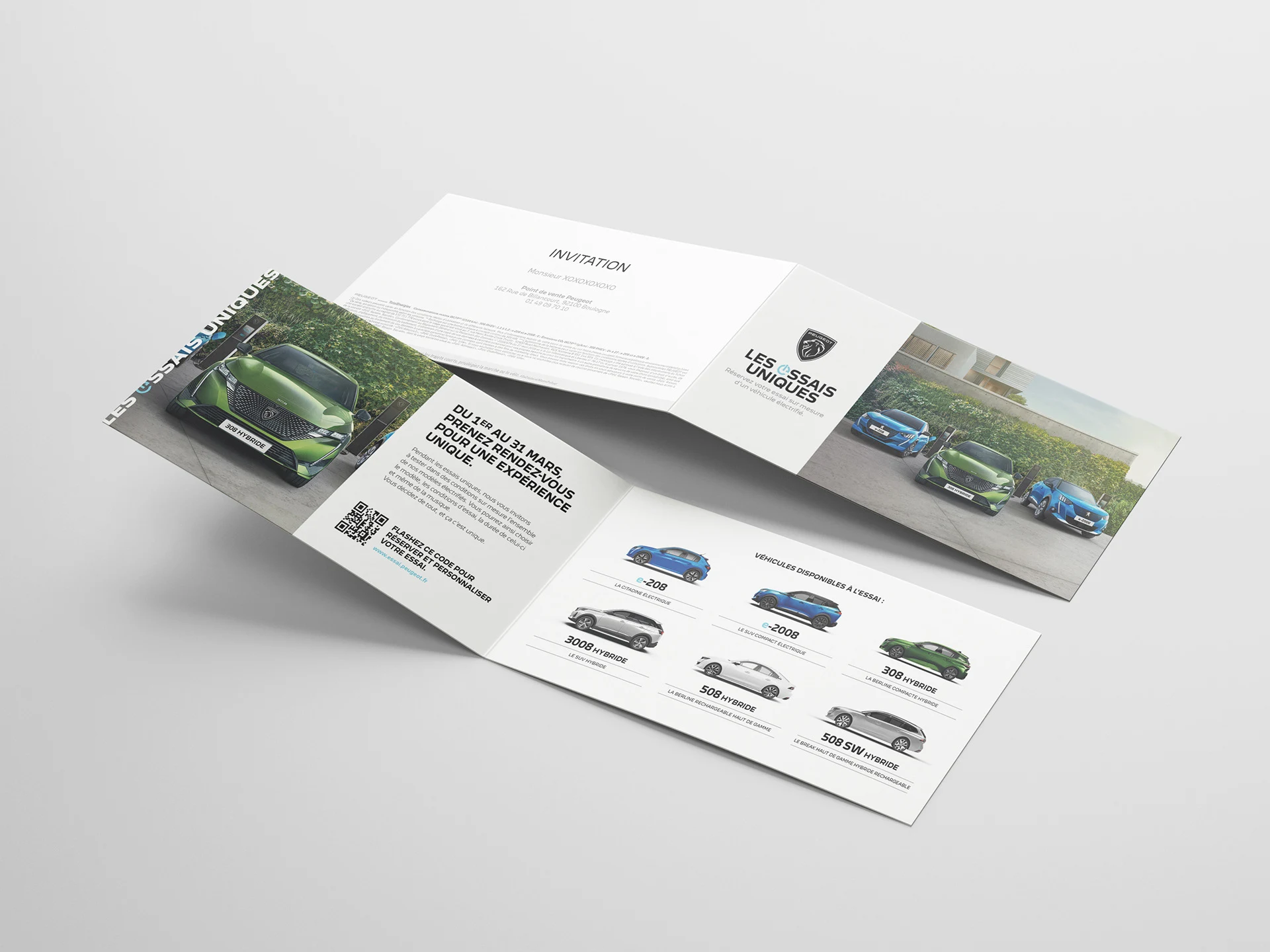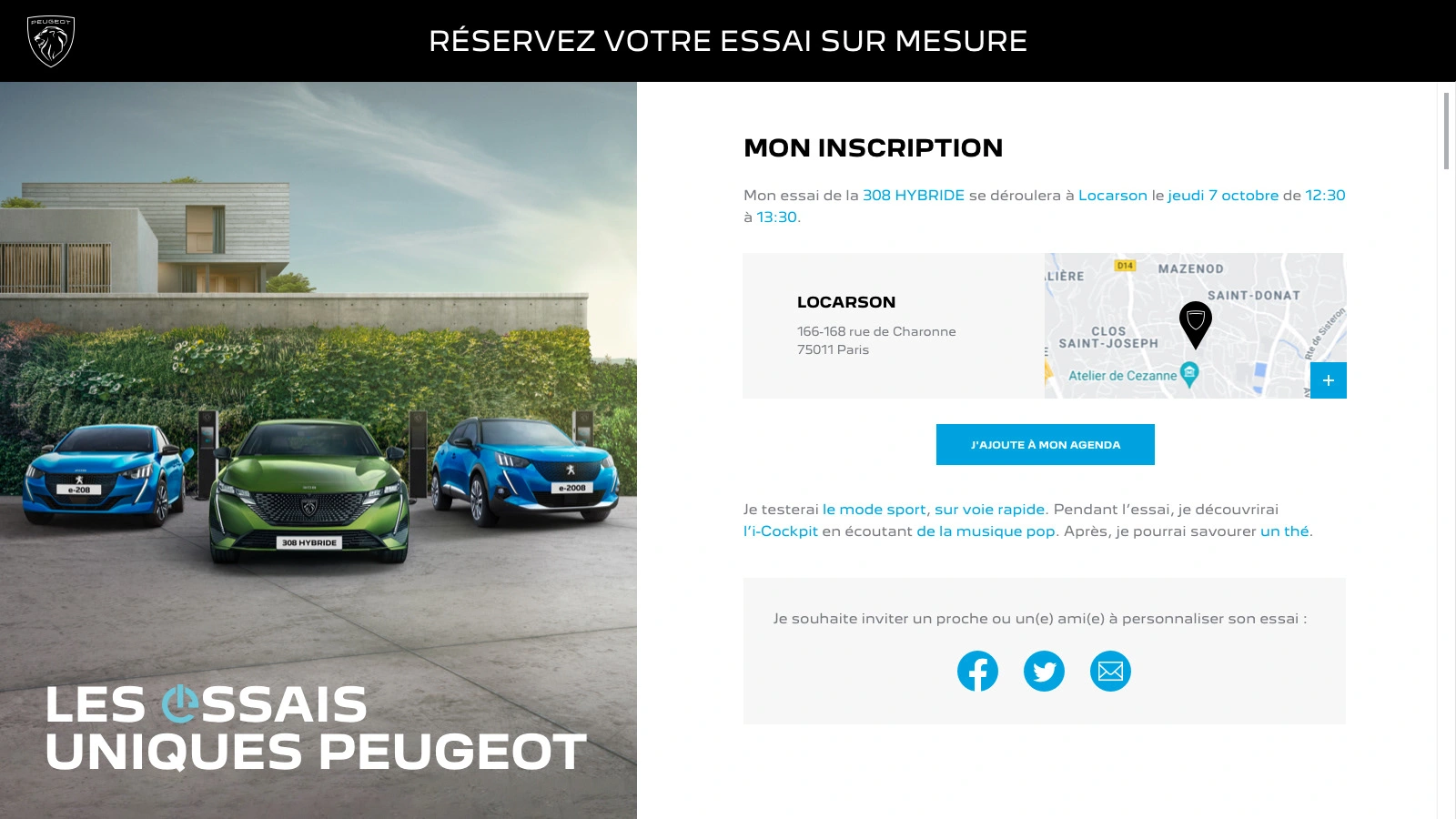 Art direction and conception of Peugeot's campaign about personalized test drives. UI/UX design of the test drive platform, campaign landing page, email and print design.