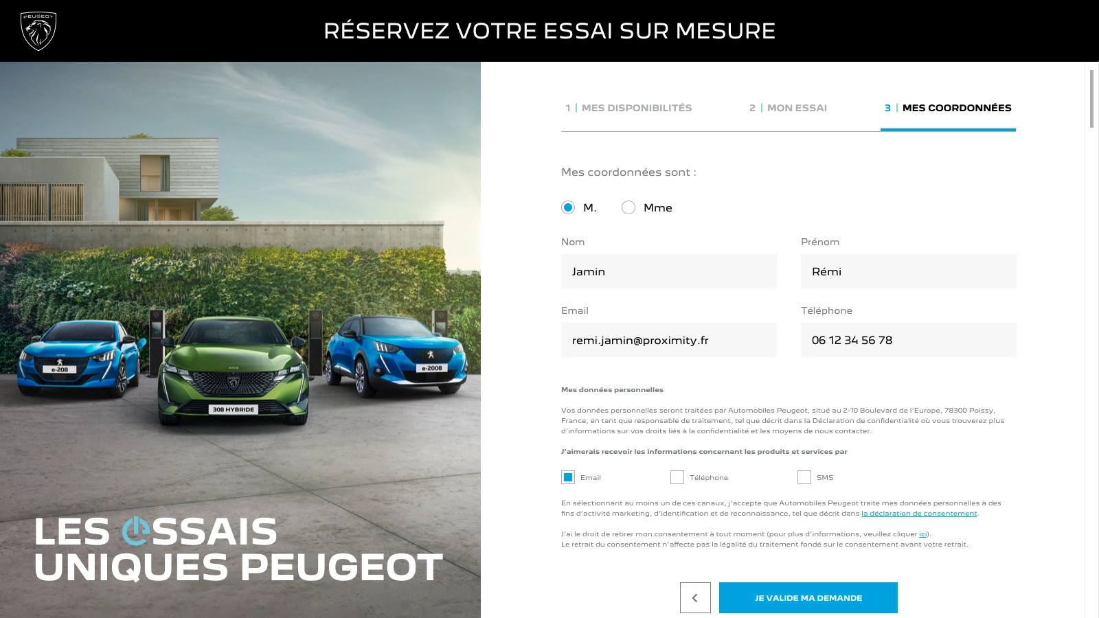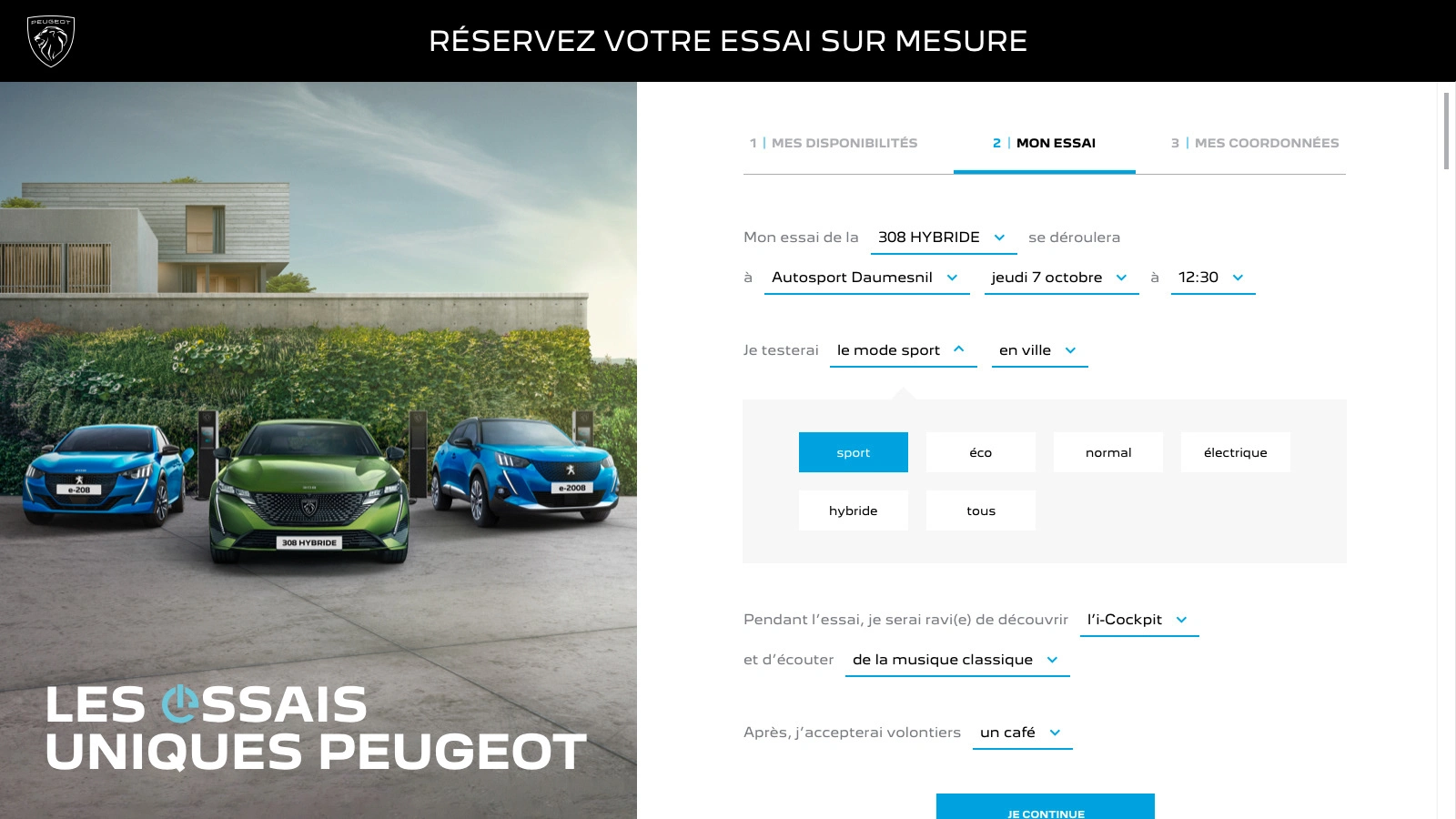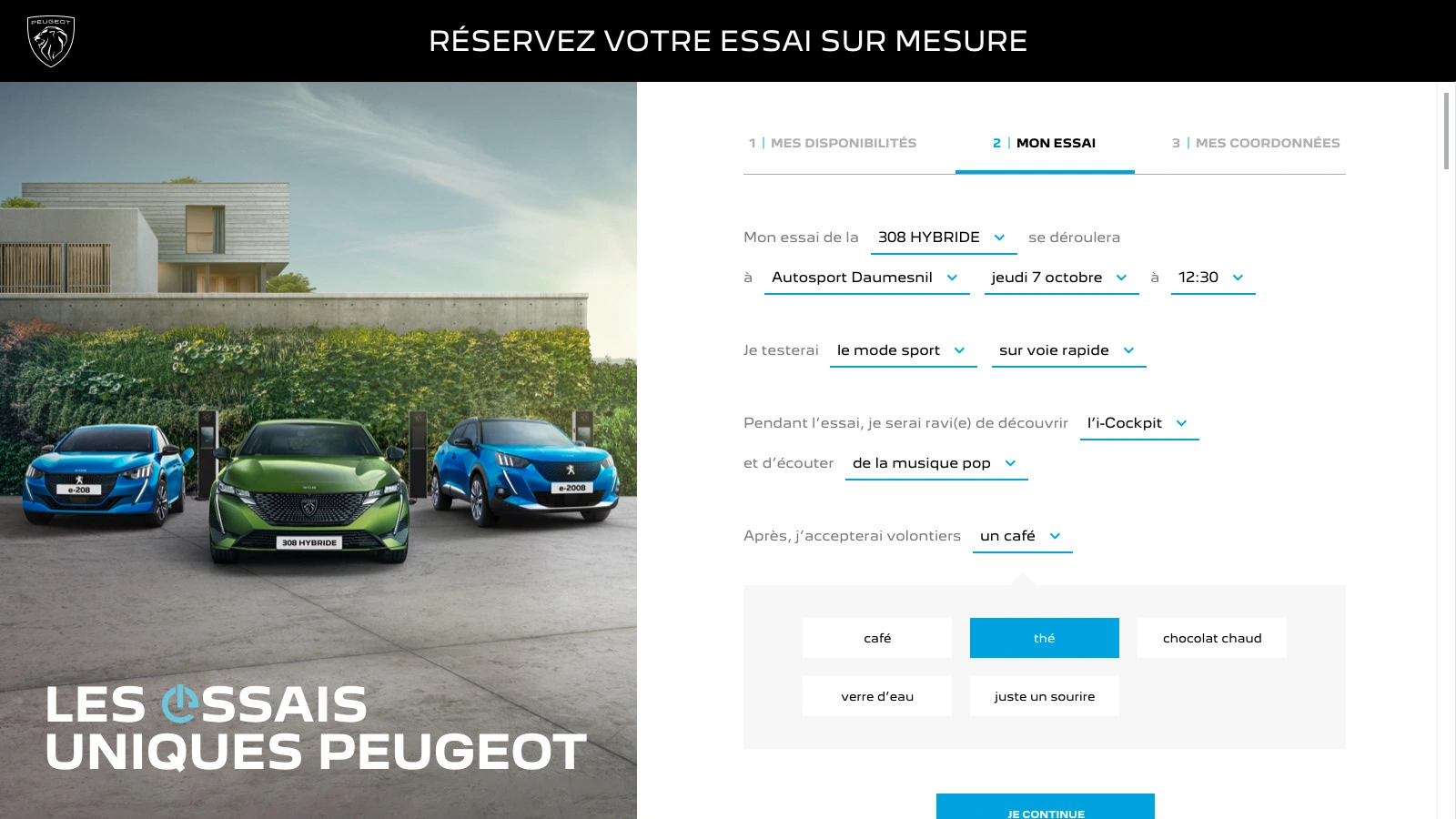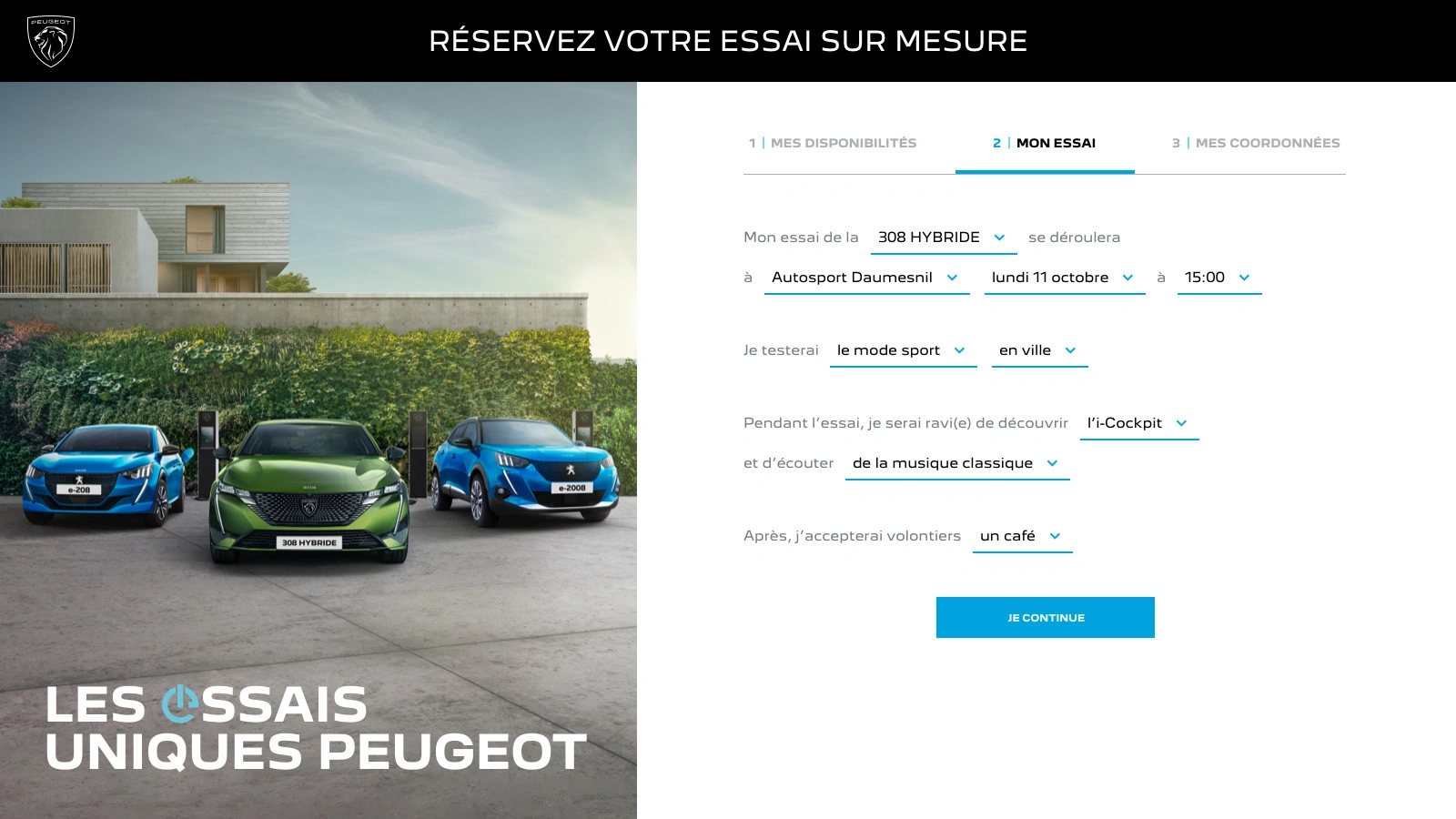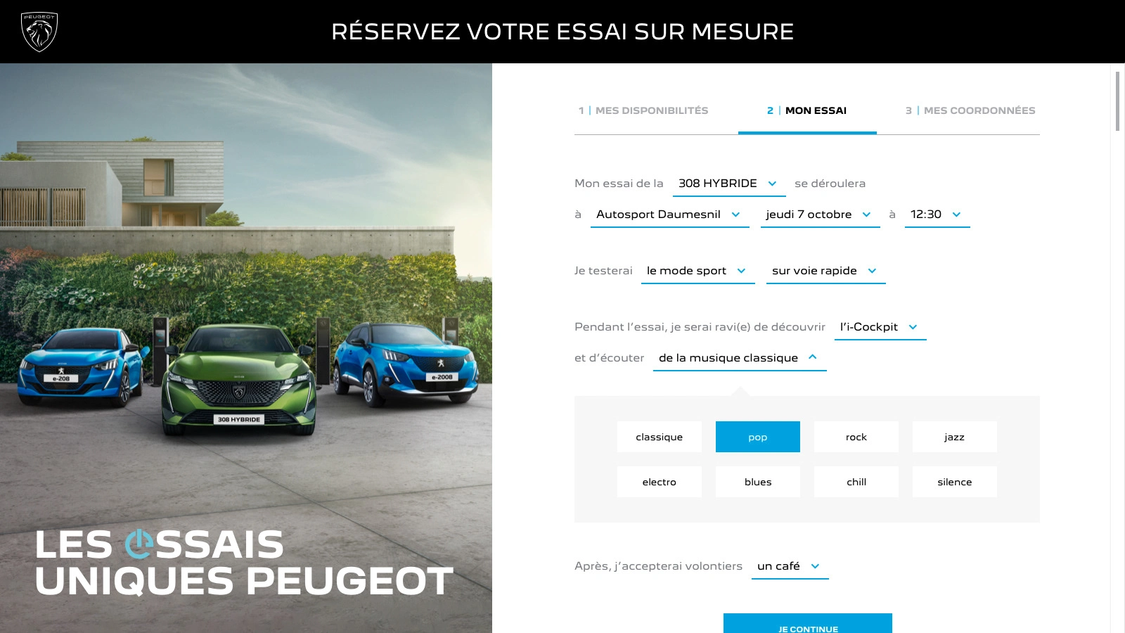 Art direction and conception of Peugeot's campaign about personalized test drives. UI/UX design of the test drive platform, campaign landing page, email and print design.