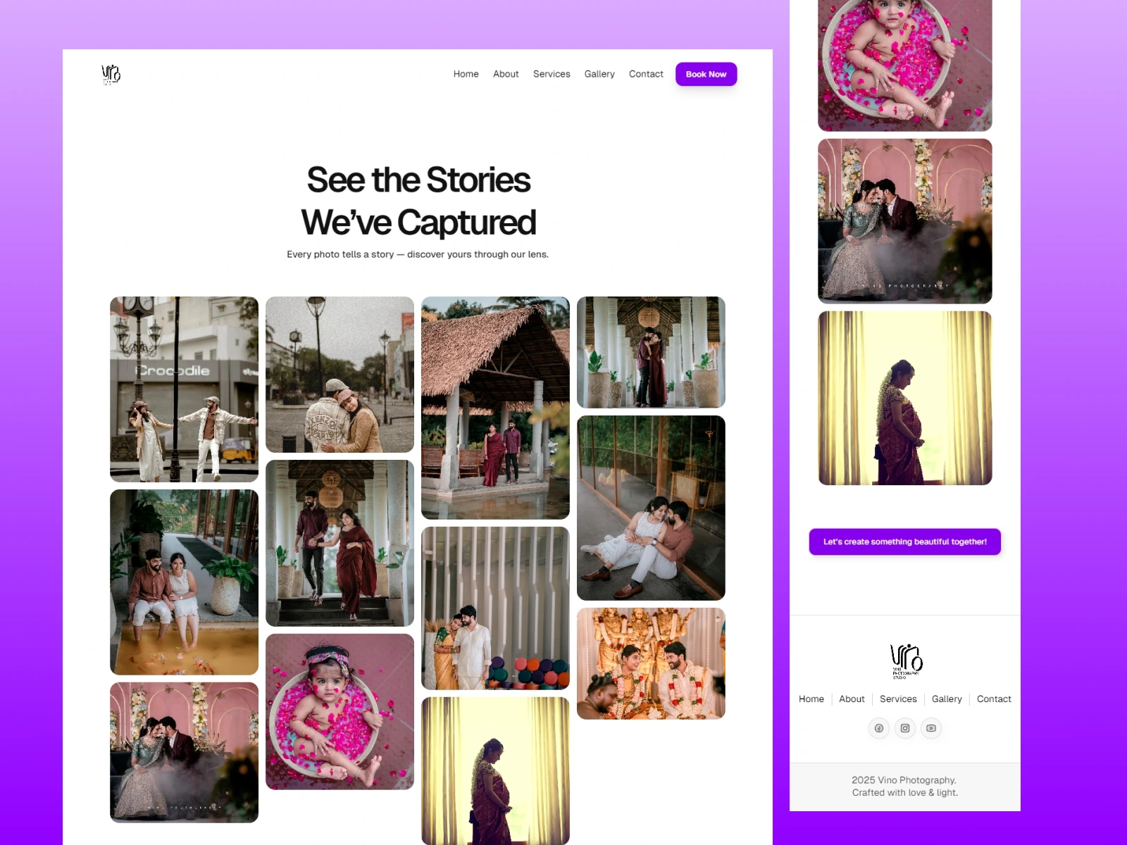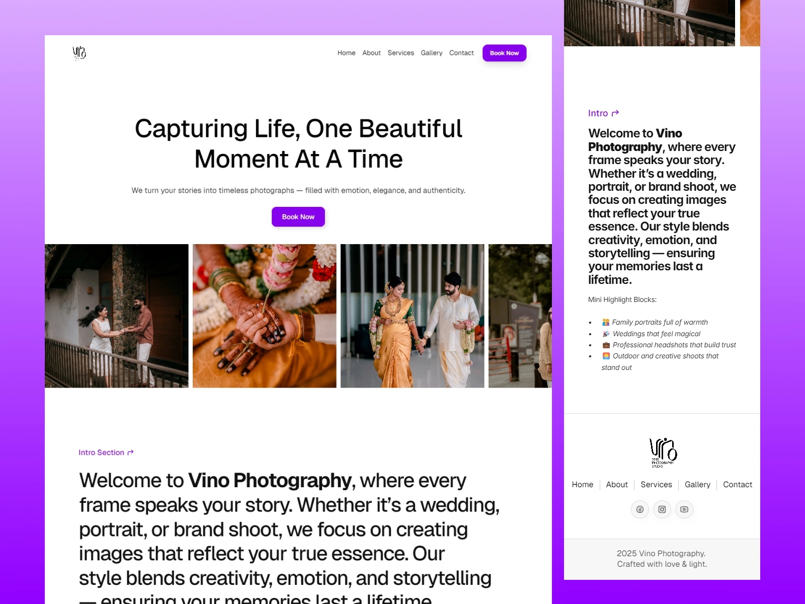 Designed and developed a website for Vino Photography using Framer. I designed this website by achieving the desired outcome without compromising on quality.