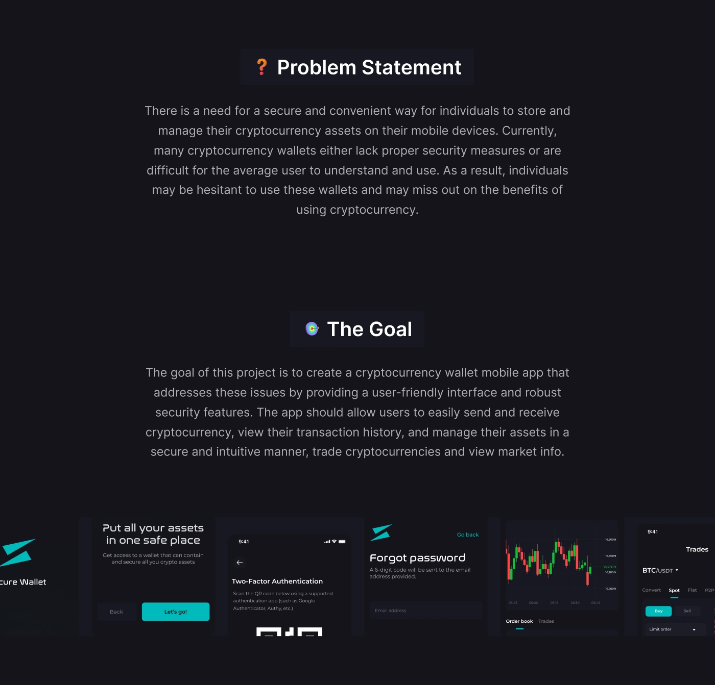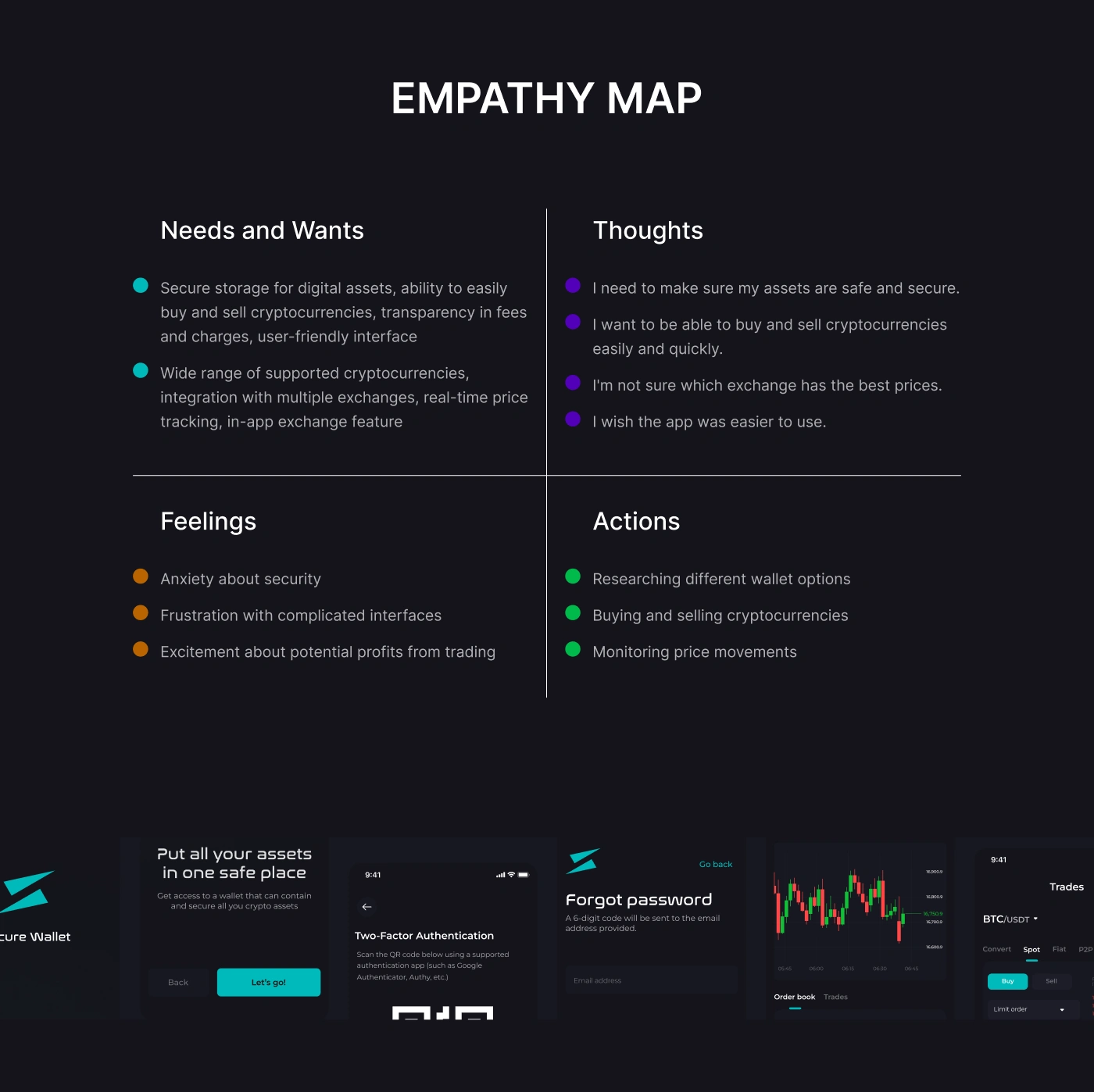 Secure wallet is a cryptocurrency wallet mobile app with trading features. Product Design, Interaction Design, App Design, Figma, Adobe Illustrator, Miro
