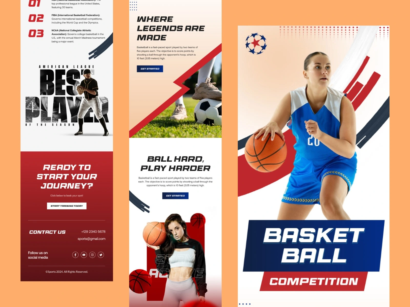 Crafted a sleek, mobile-responsive Basketball Event Template to streamline the registration process for upcoming sports leagues. This design prioritizes a clean editorial aesthetic, featuring sharp photography and a structured grid for easy readability of event details. Key highlights include a conversion-centric "Start Training" anchor and a comprehensive contact footer. The template balances a patriotic color palette with ample whitespace, ensuring a premium user experience for both desktop and mobile users.
