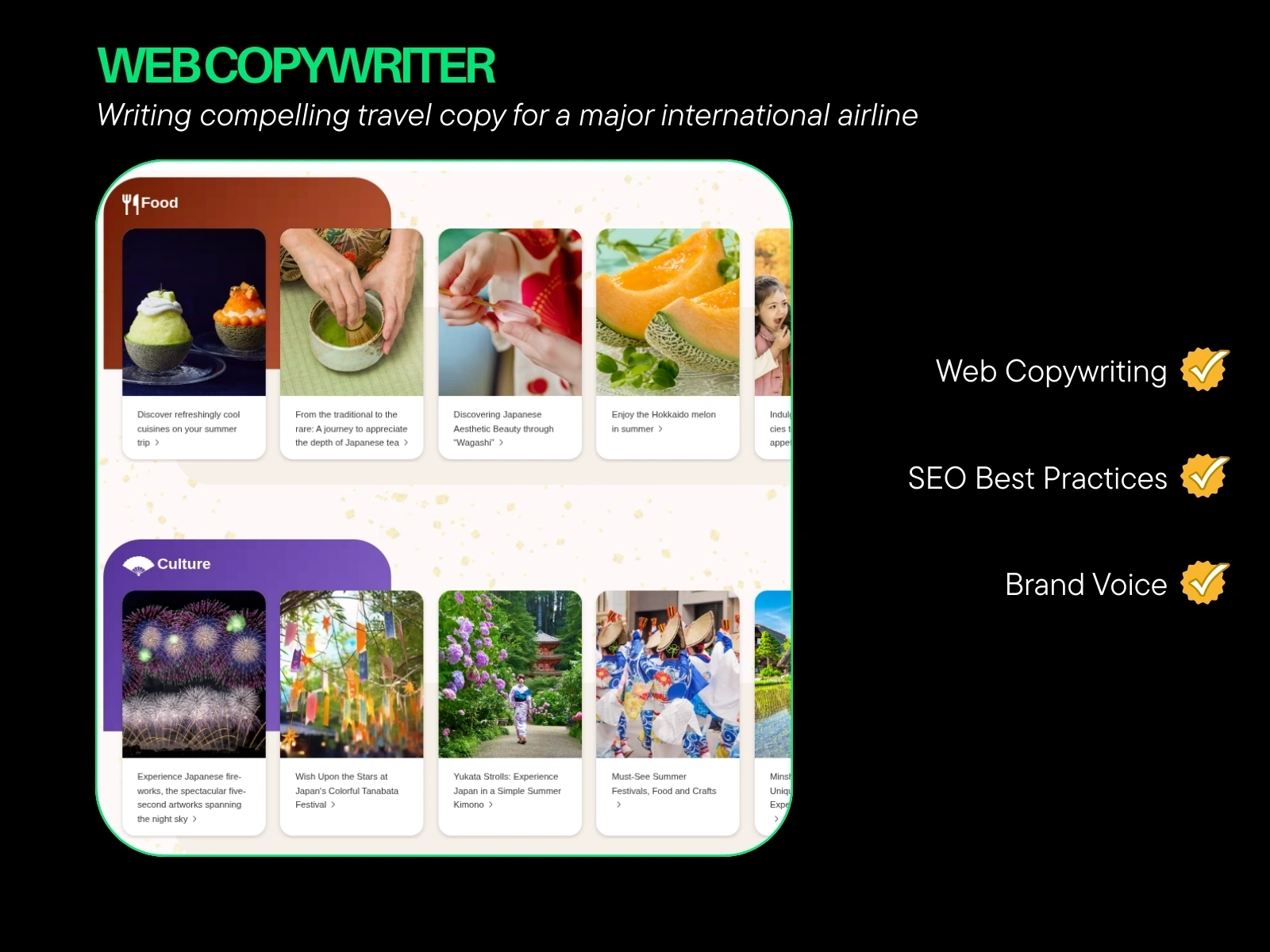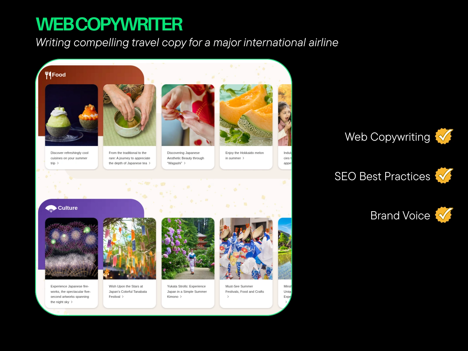 A major international airline needed a native English speaker to write compelling seasonal web copy for its English-language website.