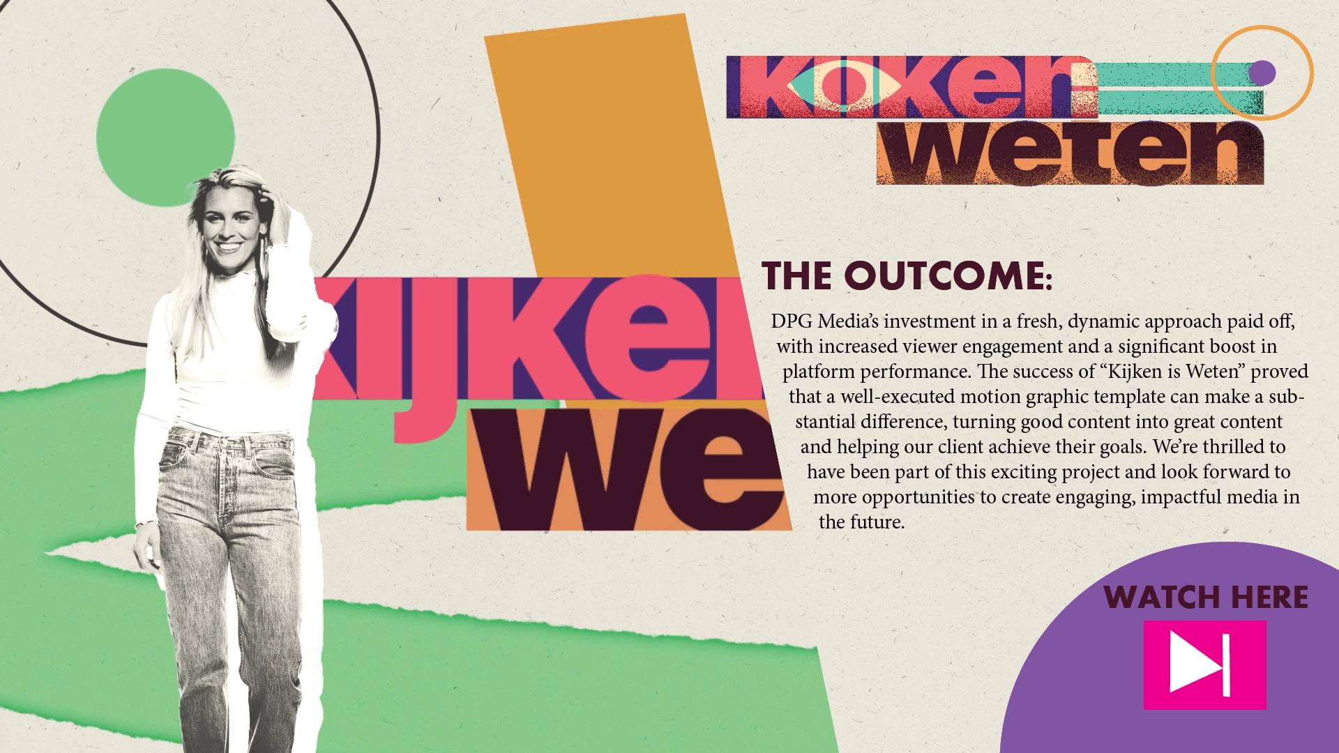 I was the motion designer for the Show "Kijken= weten " , I made the Motion Design Template and provided all the animations for each episode that aired on Ad.nl