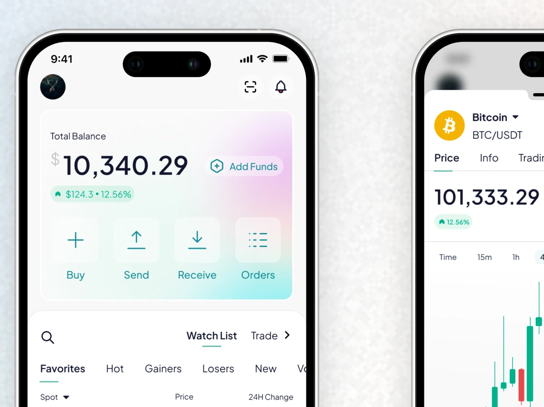 My Crypto Exchange App design focuses on simplicity and clarity for users to track balances and favorite coins, plus a clean interface for price charts and analysis.