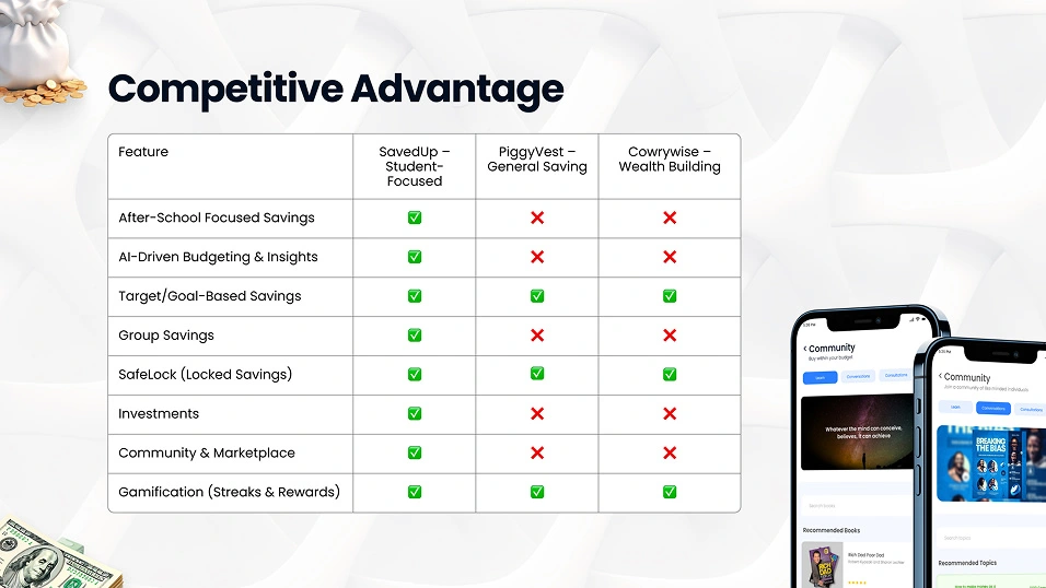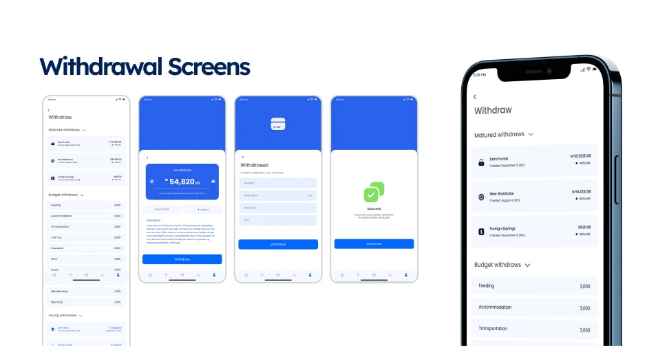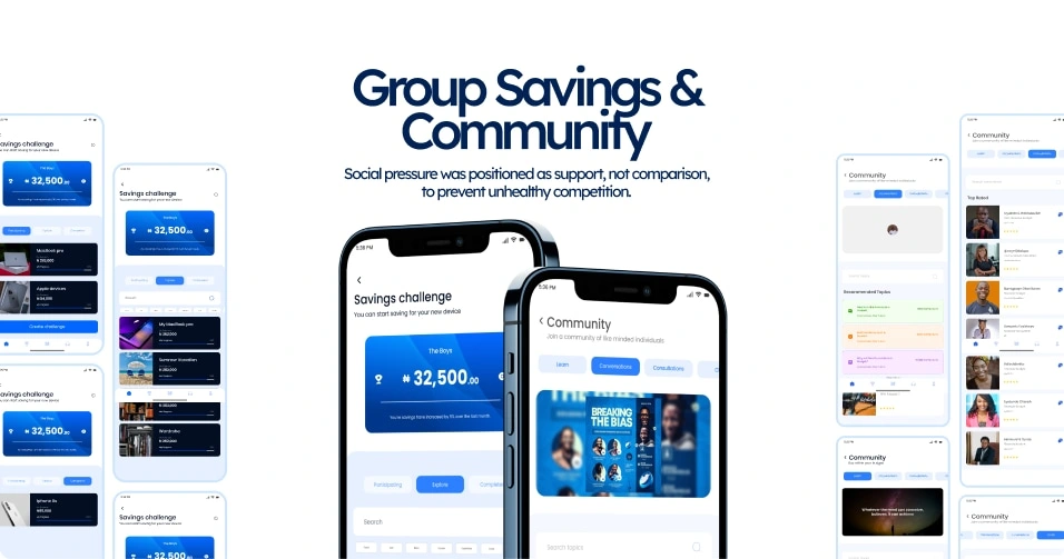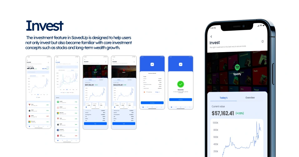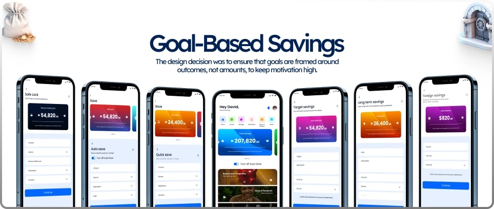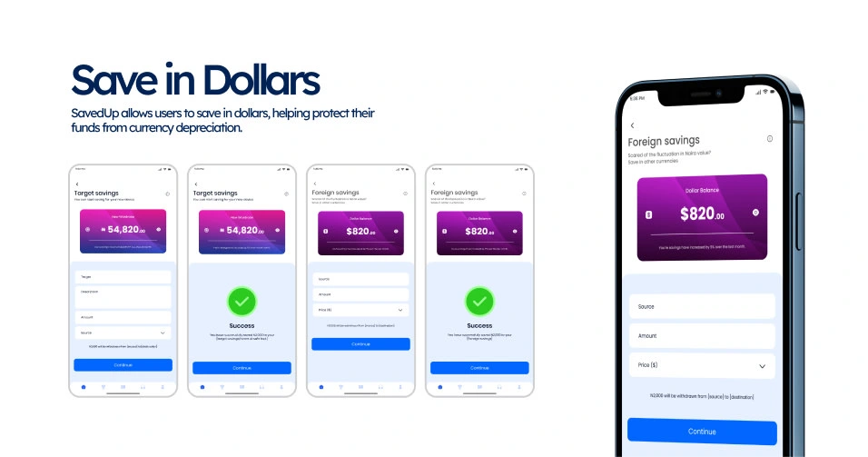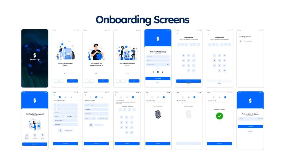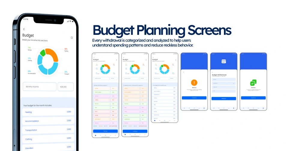 The SavedUp experience was designed to feel simple, intentional, and supportive, especially for students who may already feel overwhelmed by money decisions. From onboarding, users are guided to define clear savings goals tied to real post-school plans, helping them immediately understand why they are saving, not just how. Core flows were structured to reduce friction and cognitive load, with clear separation between saving, budgeting, and spending activities. Visual hierarchy, consistent layout patterns, and straightforward language were used across screens to ensure users could move through the app confidently without second-guessing their actions. The overall experience prioritizes clarity and momentum, making it easier for users to build and maintain healthy saving habits over time.