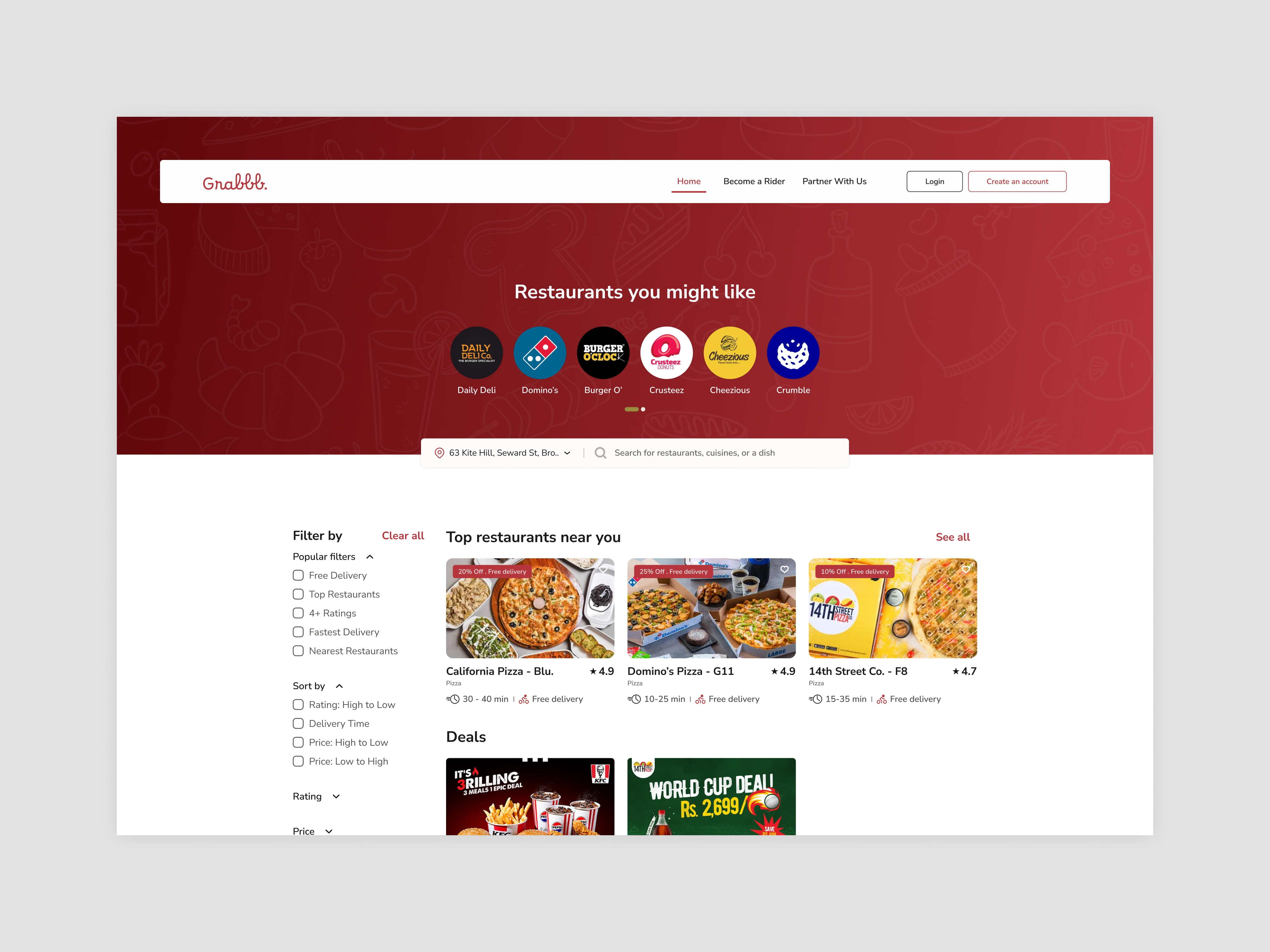 Grabbb Website - Restaurant Listing Page