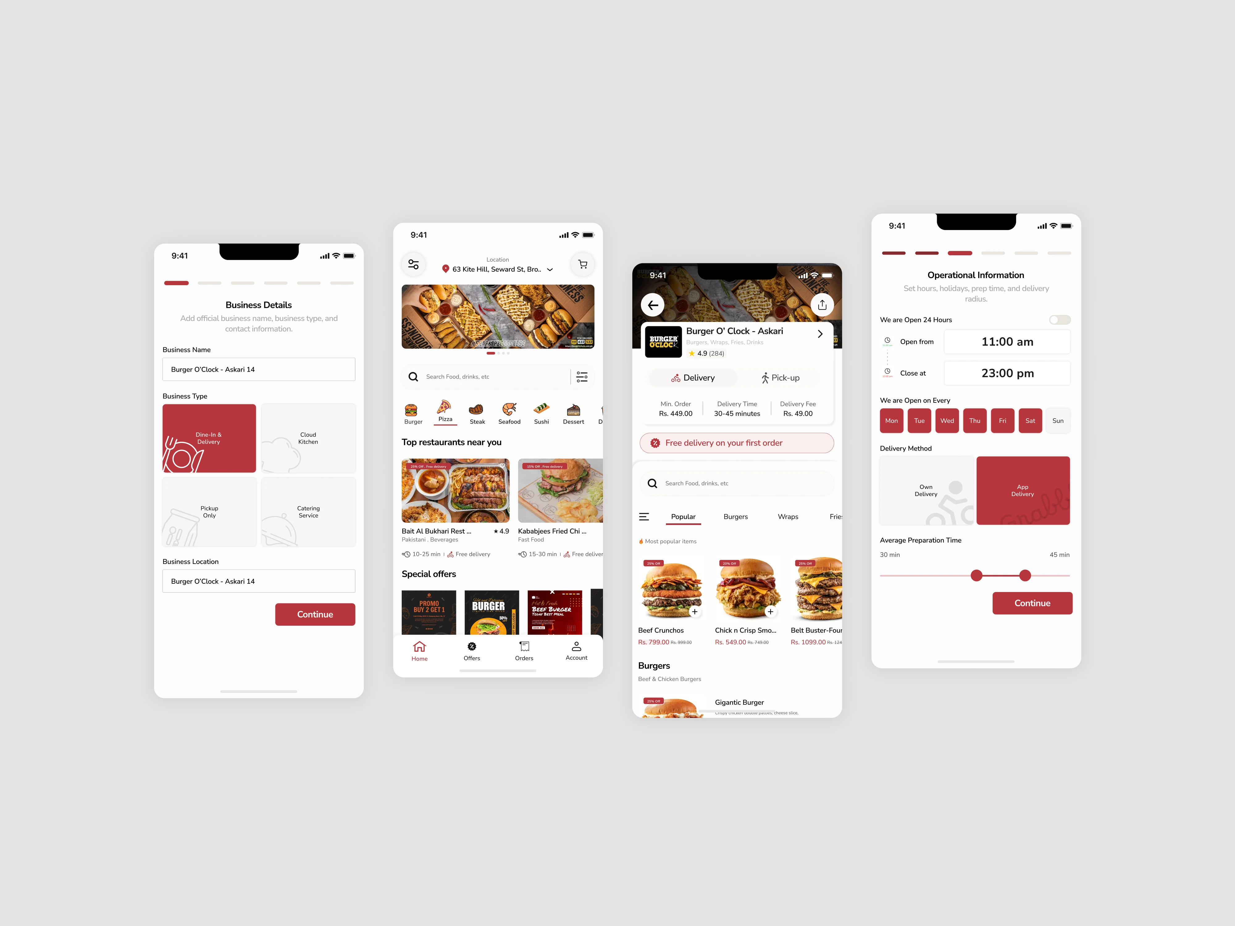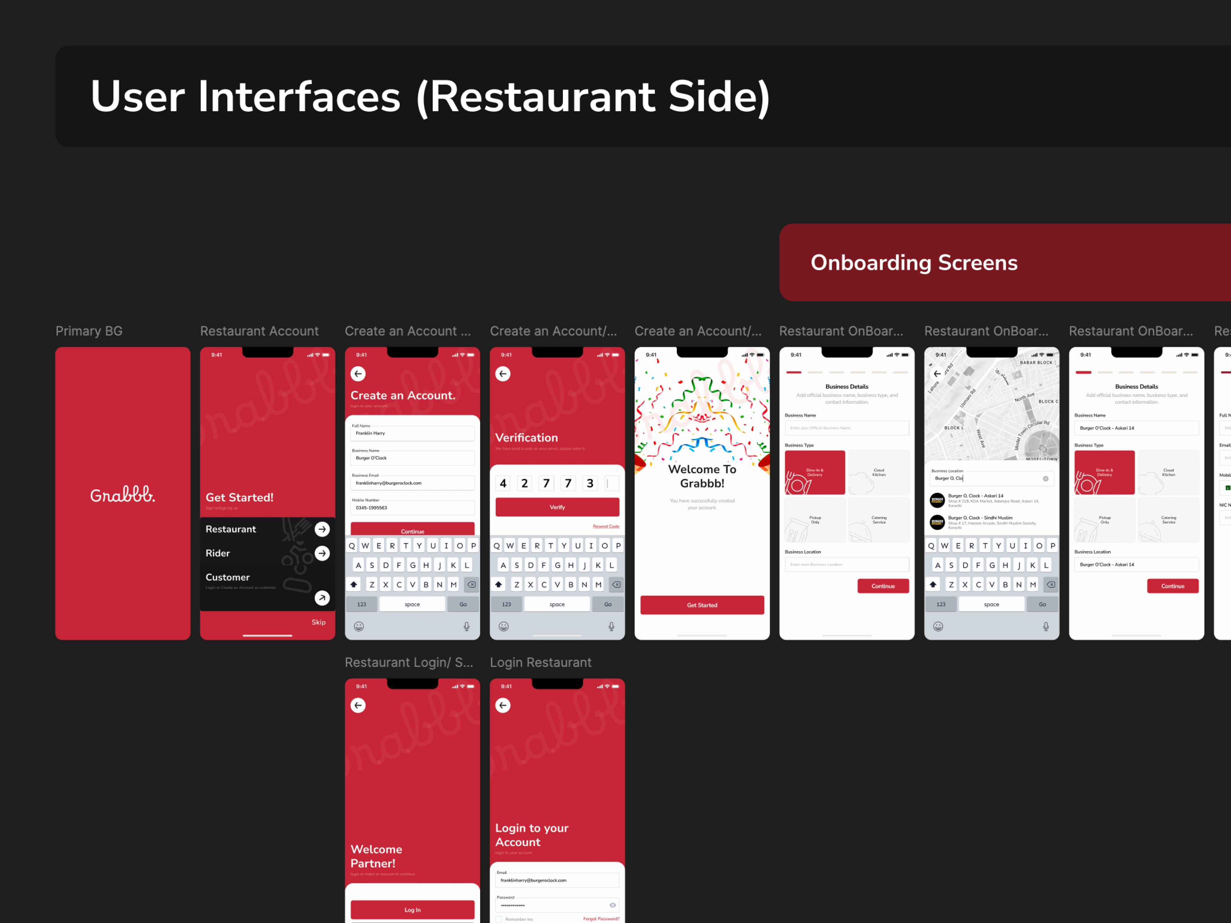 Customer & Restaurant Side Mobile Screens