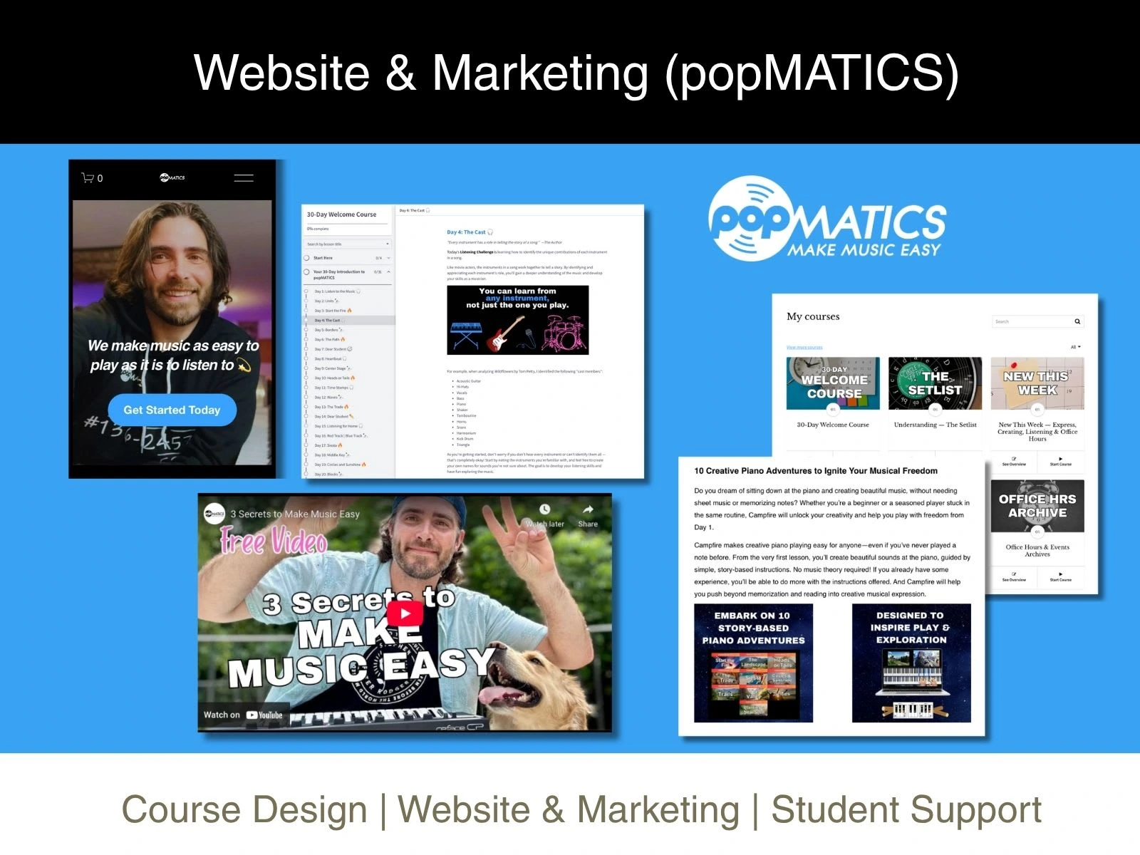 I co-created an online piano school that helps adults learn to play by ear and improvise confidently. The program includes live classes, video libraries, interactive assignments, and a supportive online community—all designed for flexible learning and creative exploration.