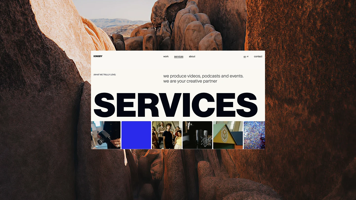 By integrating subtle motion and interaction with bold typography, the site now highlights Kinsby’s best work and successfully draws in their target clientele.
