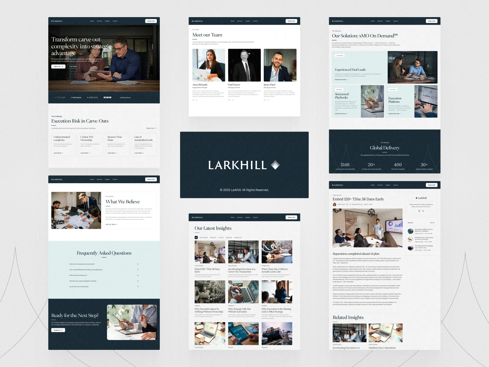 Larkhill’s website is a multi-page project for a consulting firm in M&A. The project focused on clear structure and messaging to help clients take next steps.
