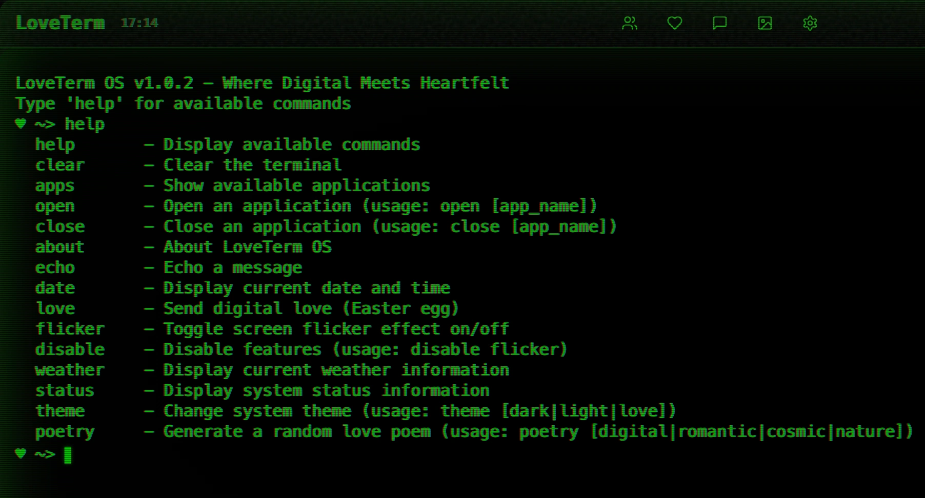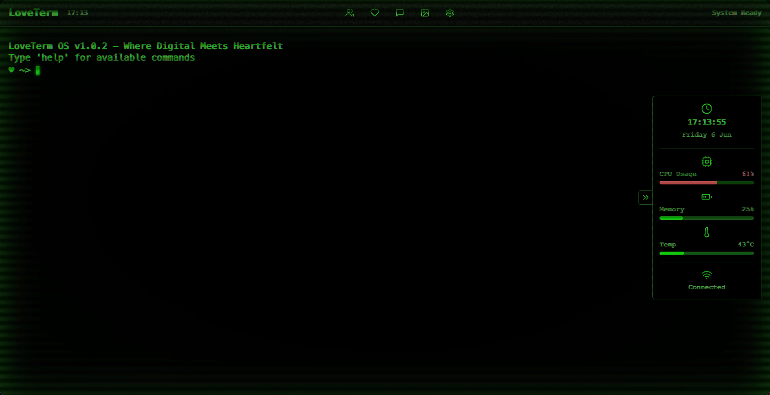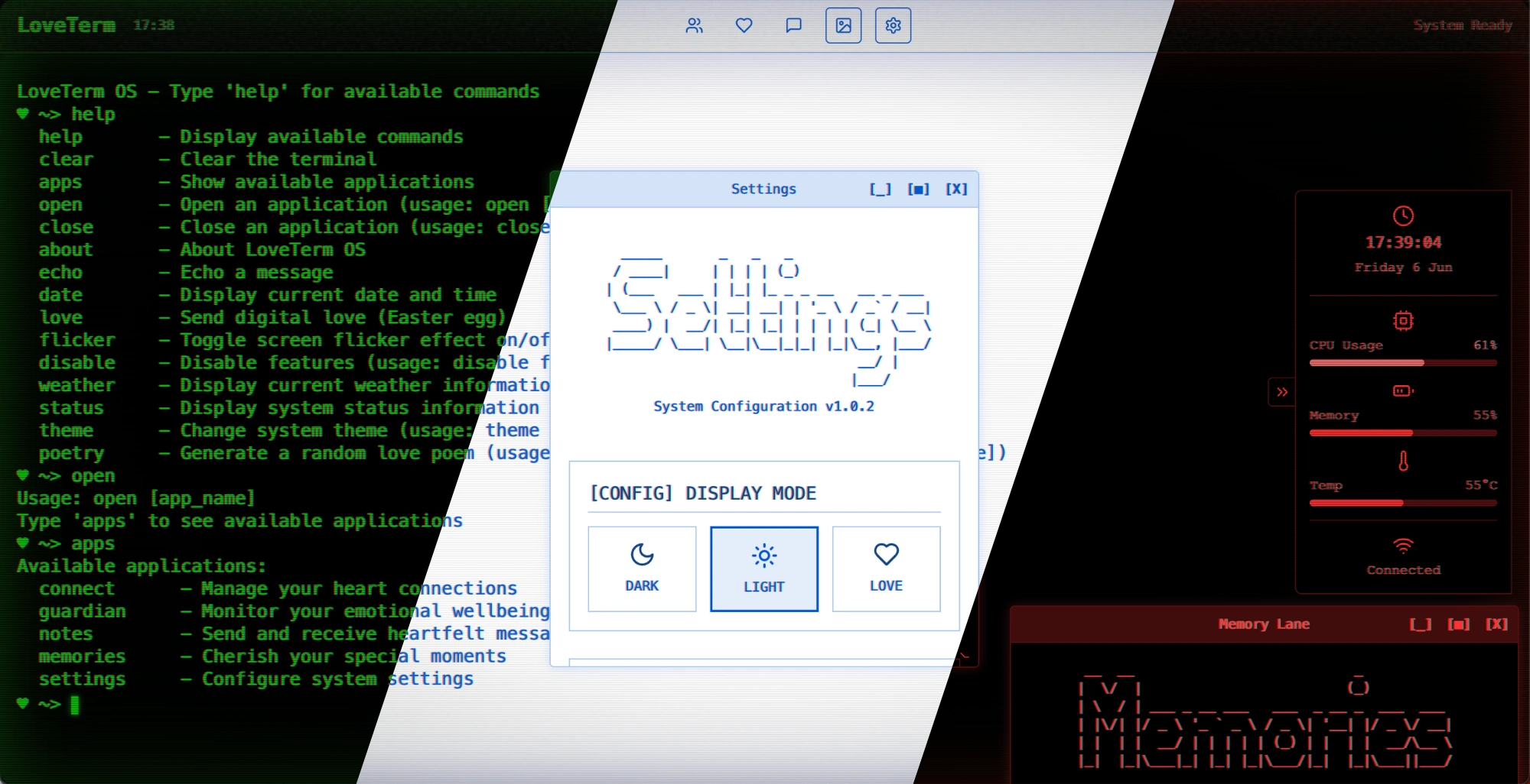 Developed LoveTerm OS, a retro-inspired terminal web app with AI-assisted features.