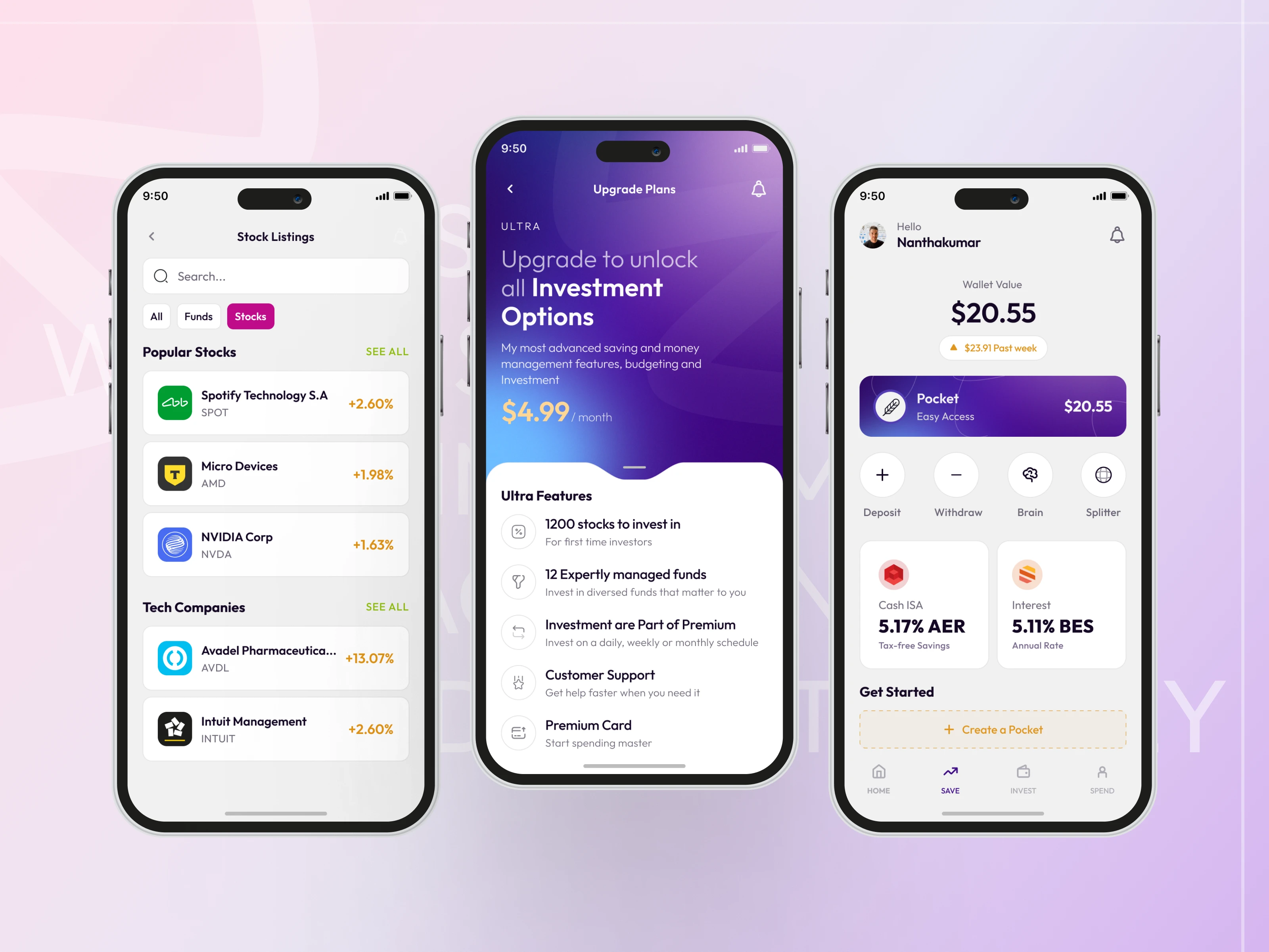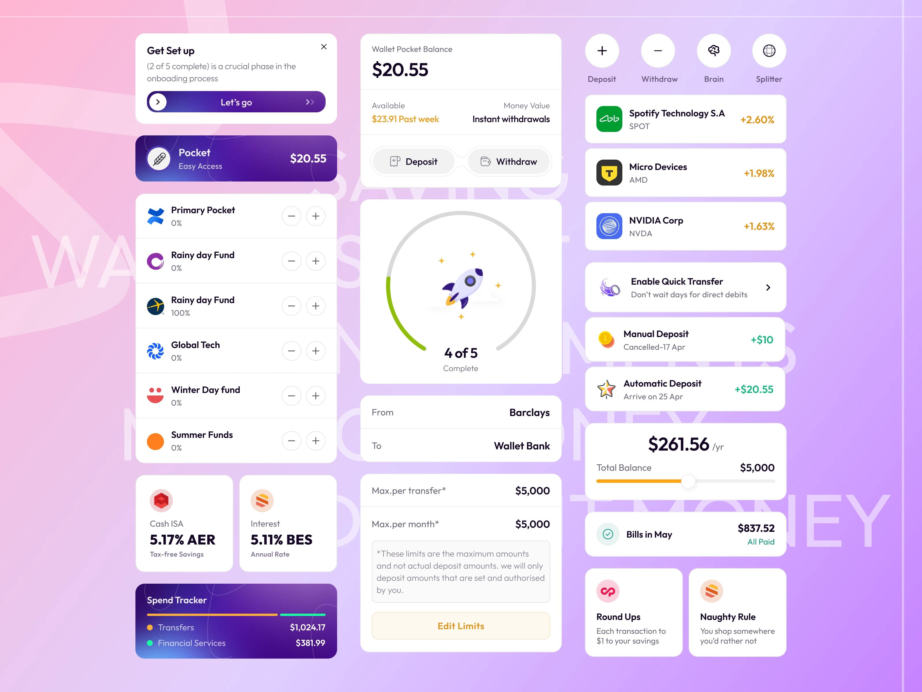 WealthFlow is an all-in-one financial platform designed to bridge the gap between simple banking and sophisticated investing. The goal was to empower users to manage their daily spending while simultaneously growing their wealth through automated "pockets," stock market access, and high-interest savings accounts.