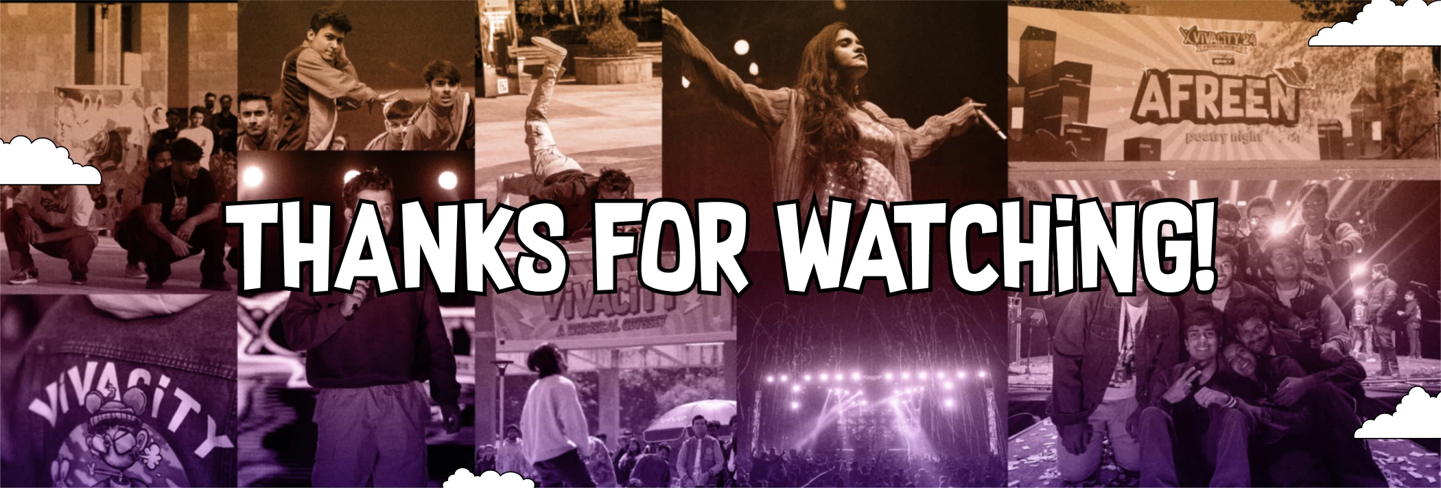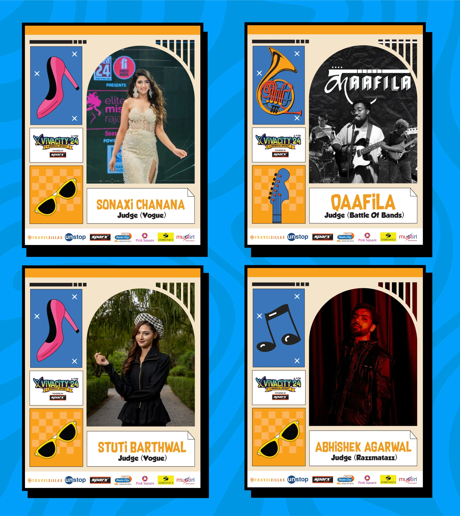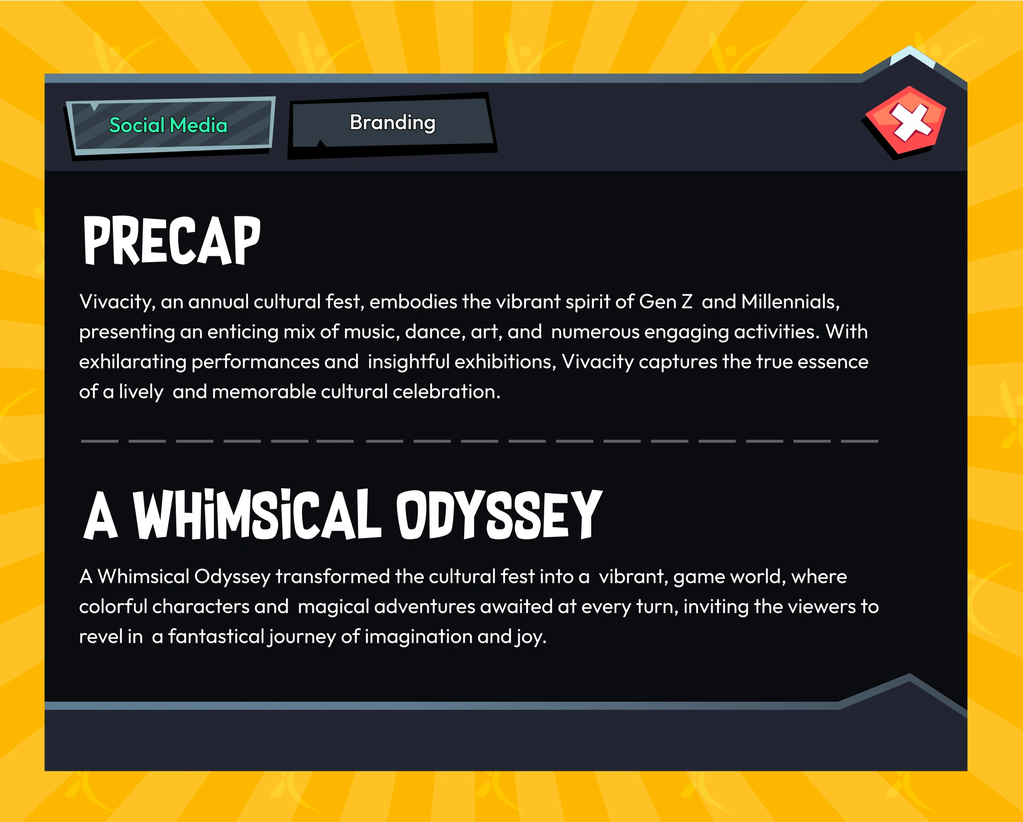 The next part of the design journey for Vivacity'24, the social media project, features artist flyers, event posters, and cutting-edge 3D and motion work.