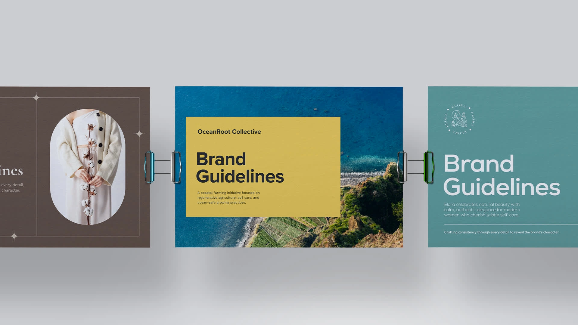 Rather than isolated elements, these compositions present the system as a whole: the rules, relationships, and rhythm that keep a brand consistent and intentional.
