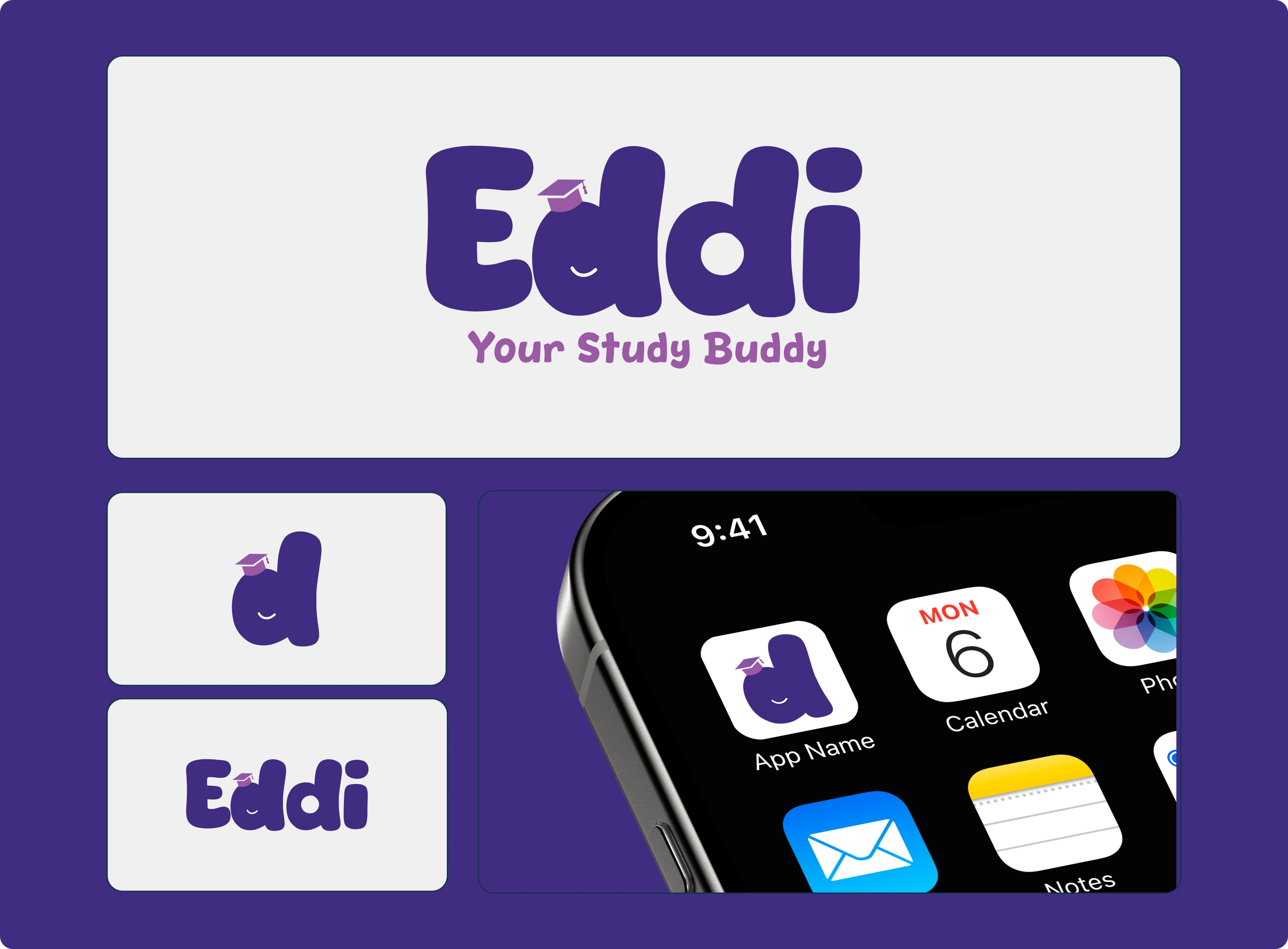 Designed brand identity for Eddi, an AI tutor for kids, balancing smart AI with playful, friendly visuals to build trust with children and parents.