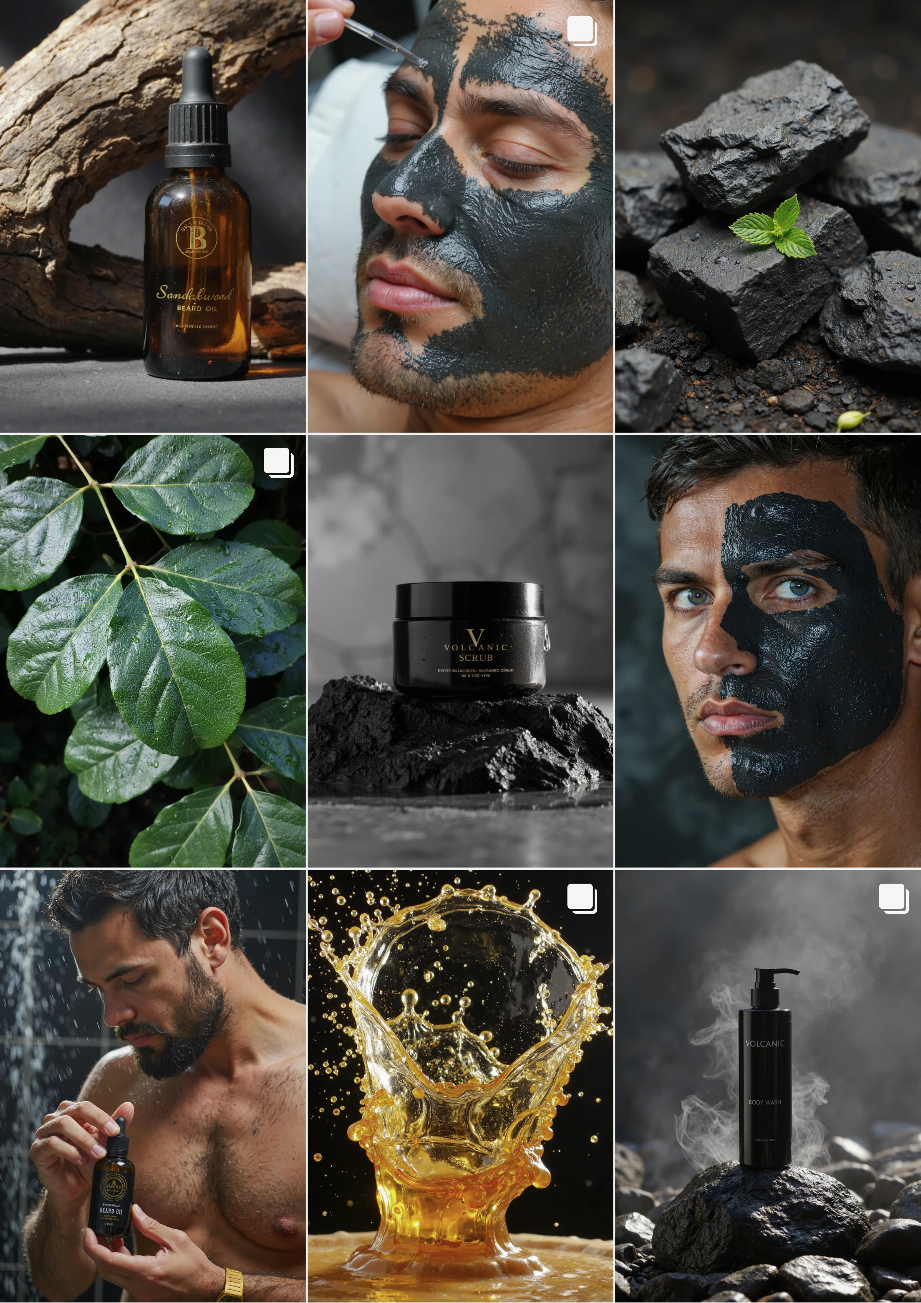 In today’s competitive grooming market, visual storytelling defines brand credibility. This project began with a challenge from a men’s skincare brand seeking to relaunch its product line with a modern, luxurious, and organic aesthetic — without the time or cost of traditional photography.