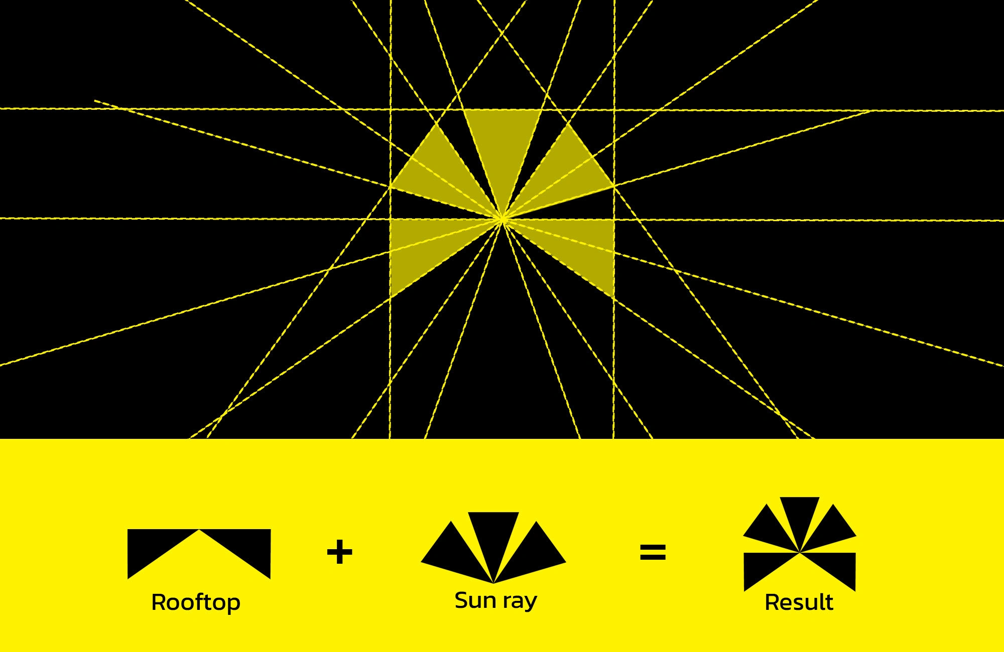 A logo inspired by solar geometry, blending abstract sun motifs with precise, modern forms.