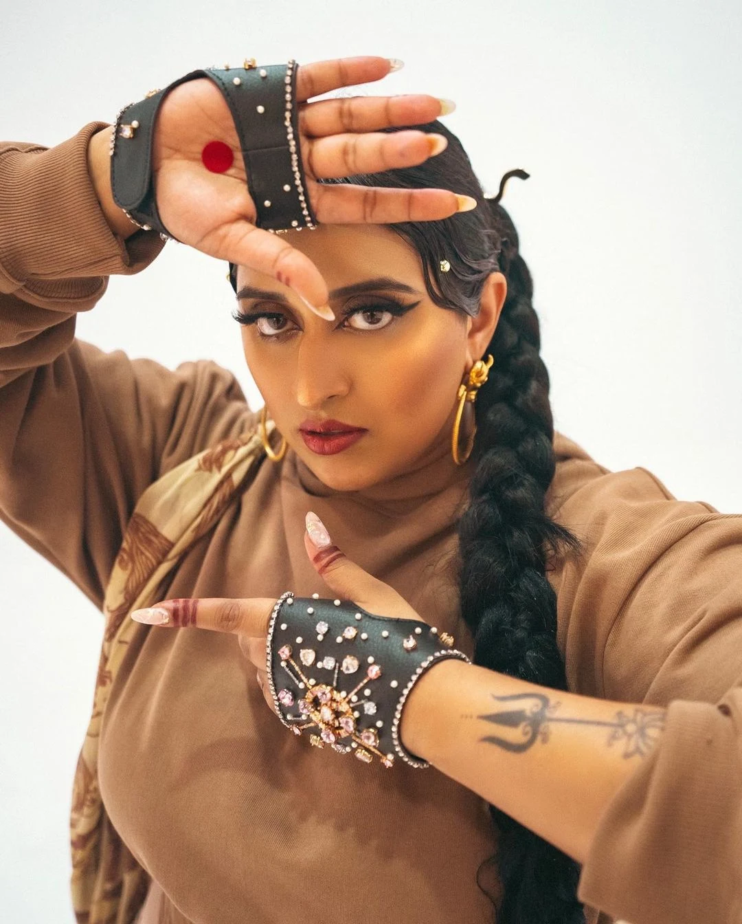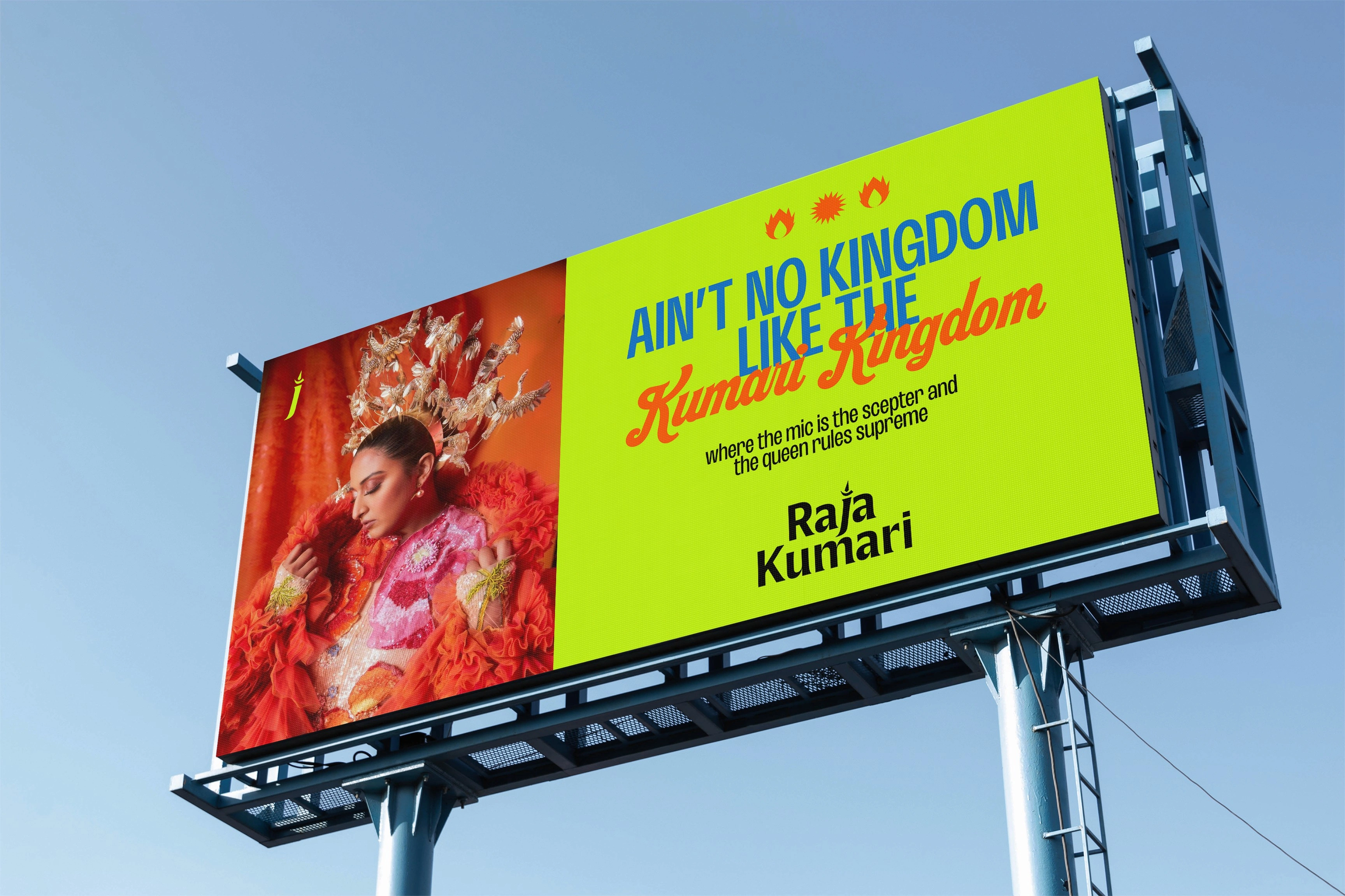 Raja Kumari’s identity is woven from powerful symbols, each telling a piece of her story. The crown represents her royalty in music, the fire her passion, the lotus—drawn from her tattoo and Indian origins symbolizes her spiritual growth, and the star reflects her rising influence. Together, these elements capture her journey of strength, resilience, and artistry, rooted in tradition yet constantly evolving into something transformative.