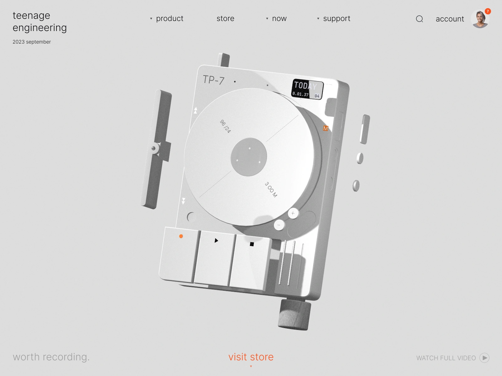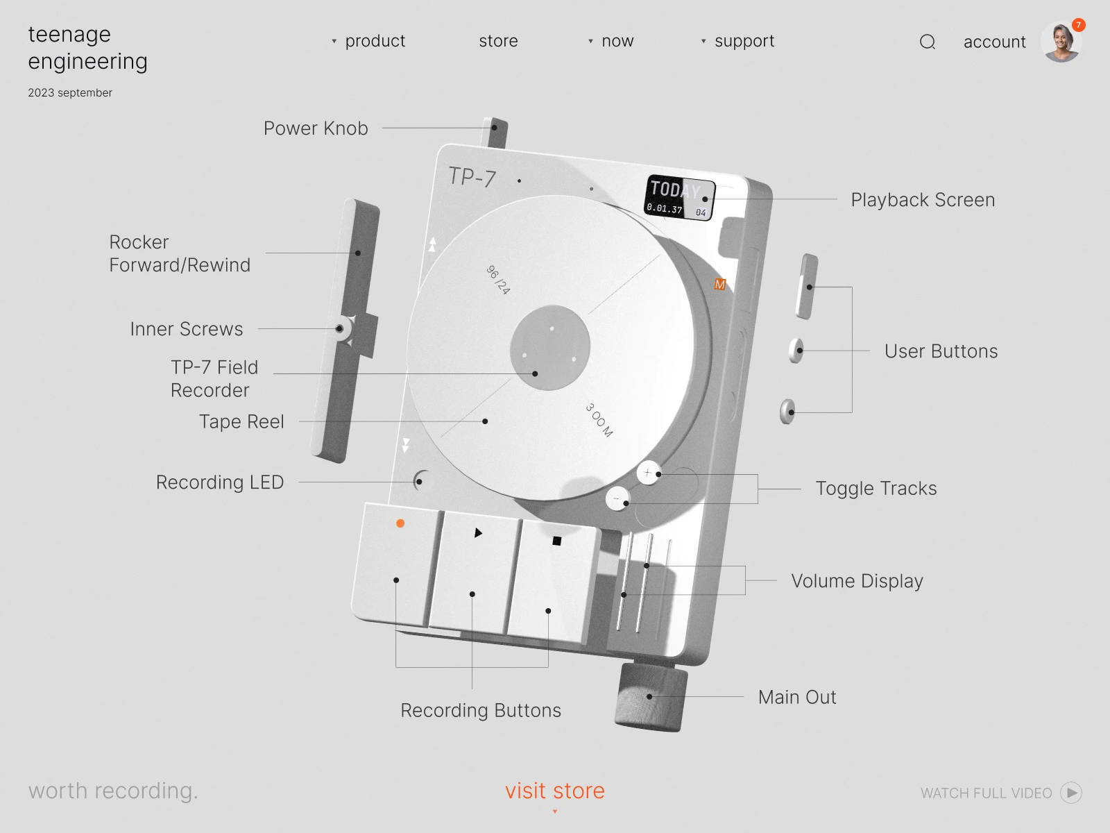 There are thoughts, ideas and fragments that - for the sake of humanity -we need to record and be able to return to as a reference, as a seed for new thoughts or just to remember another time. TP–7 is built for just that, to record sound, music,interviews and important ideas with zero friction in the highest possible quality.a device engineered in every detail to do only one thing and to do it well.a dedicated piece of hardware for ideas, or just a dirty riff.