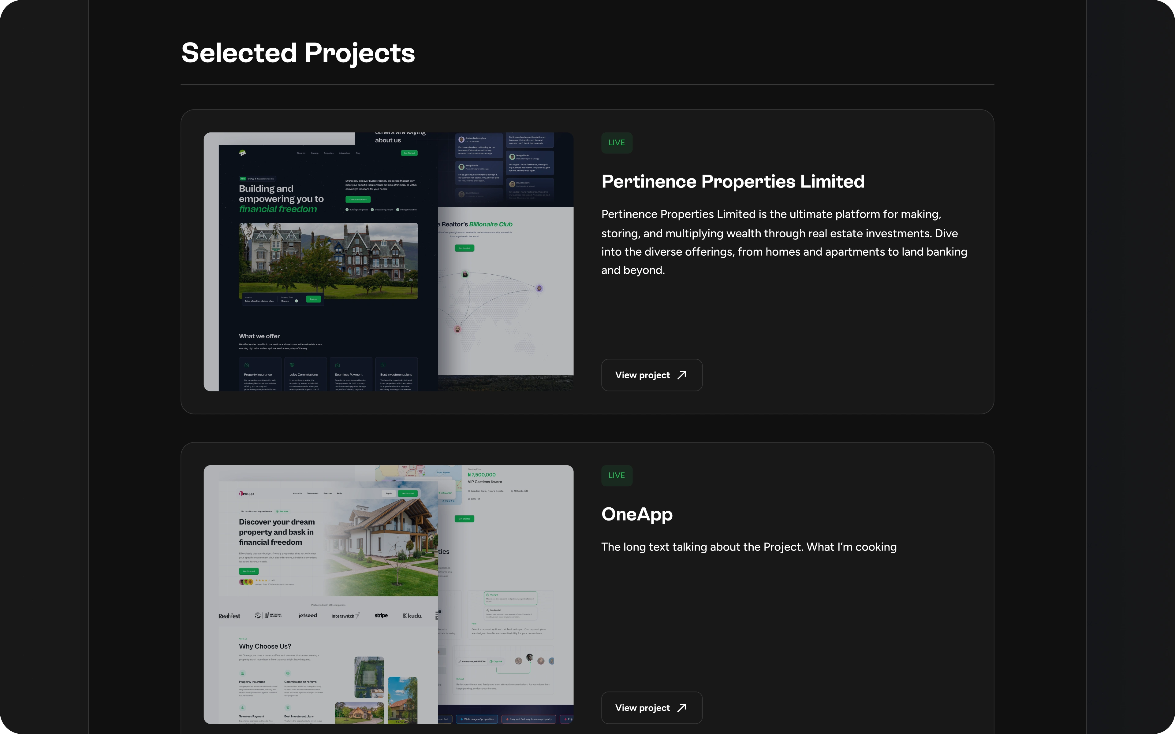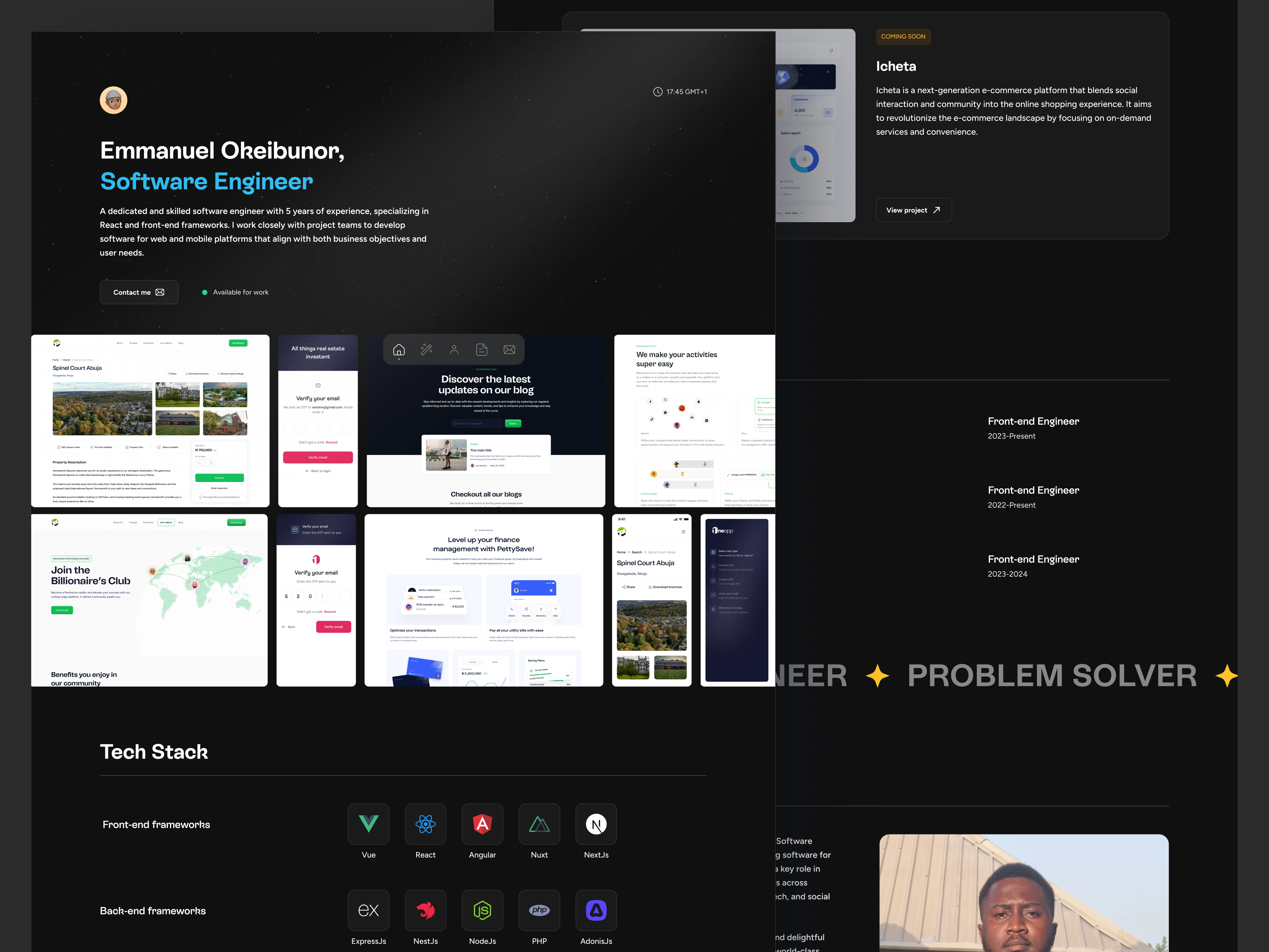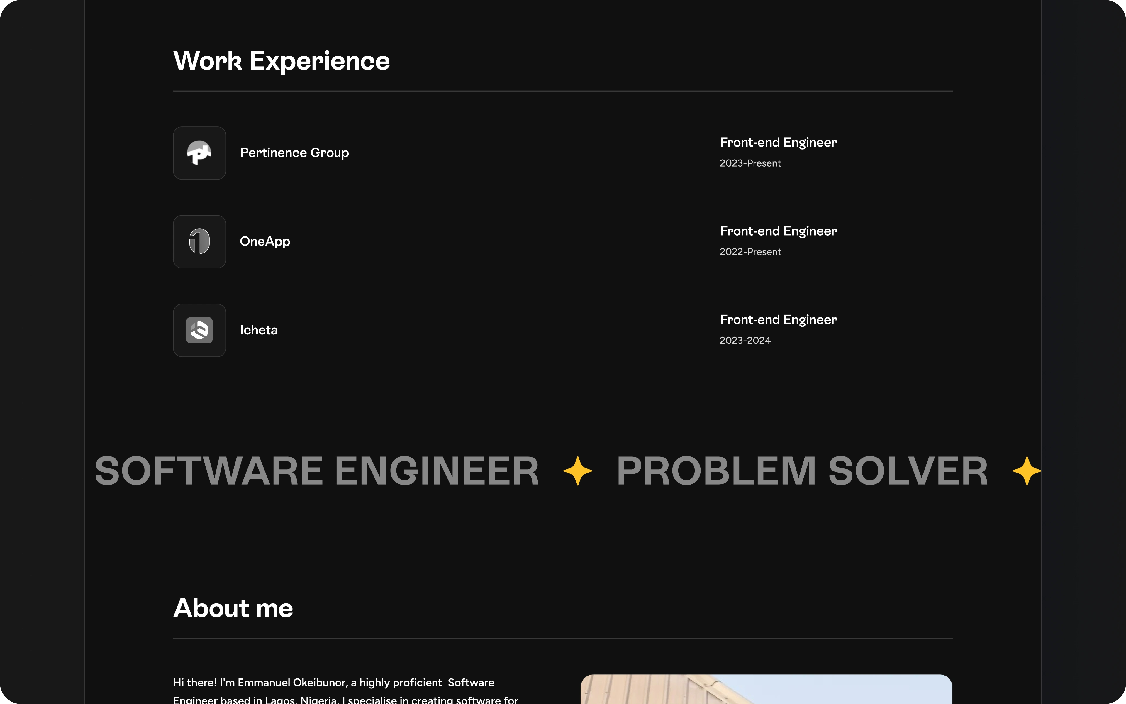 We designed a sleek, dark interface with a structure that guides visitors through a unified journey. Each element builds on the last, creating a cohesive narrative. The transformation was remarkable. What started as just another portfolio became a magnet for opportunities, delivering more interviews and stronger offers.