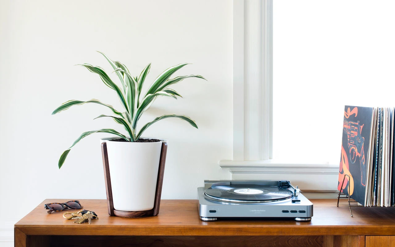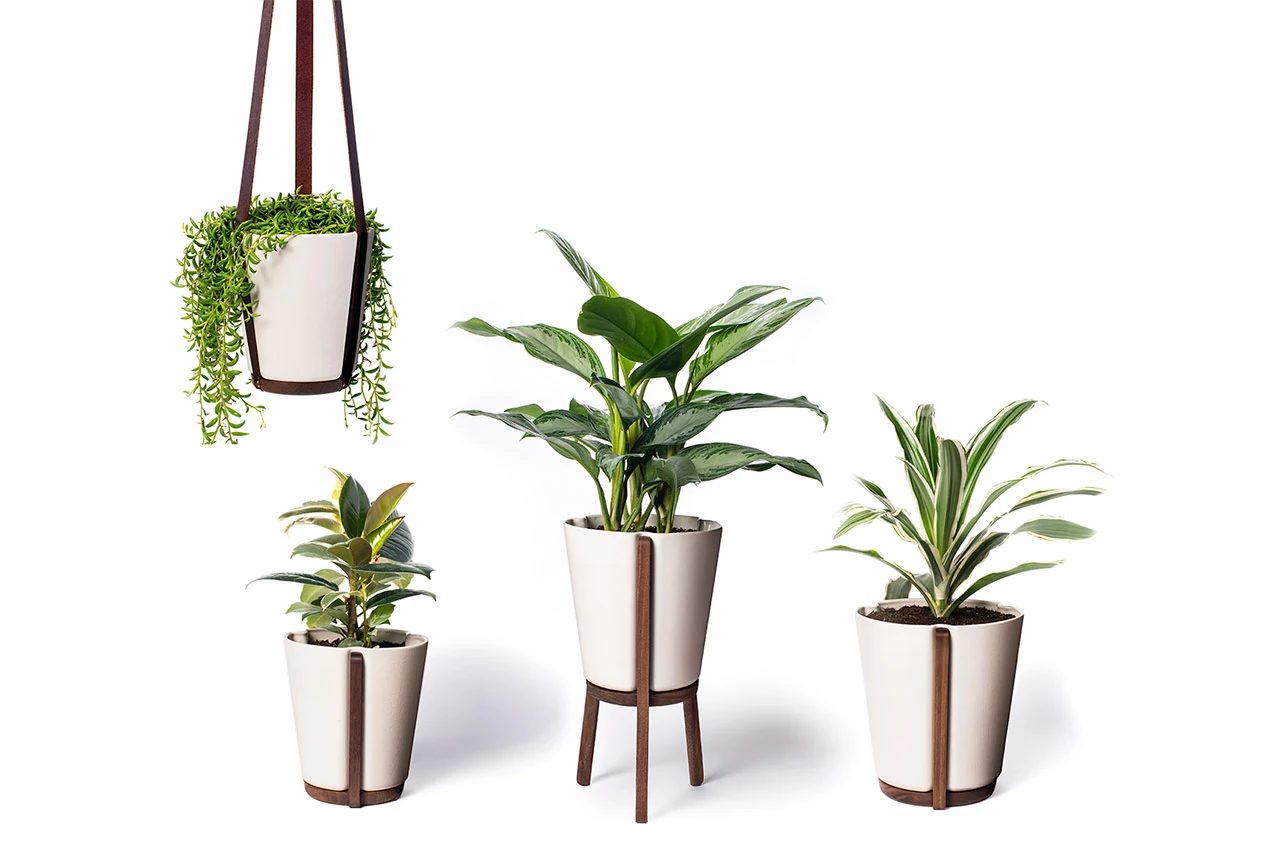 Celebrate the plants that bring life to your home with this striking collection of wood and ceramic vessels. The ceramic planters are slip-cast to conform to the handmade wood stand, creating a fluid and cohesive blend of materials that will elevate any space. Both the ceramic vessel and walnut stand are 100% made in the USA from domestically sourced materials.