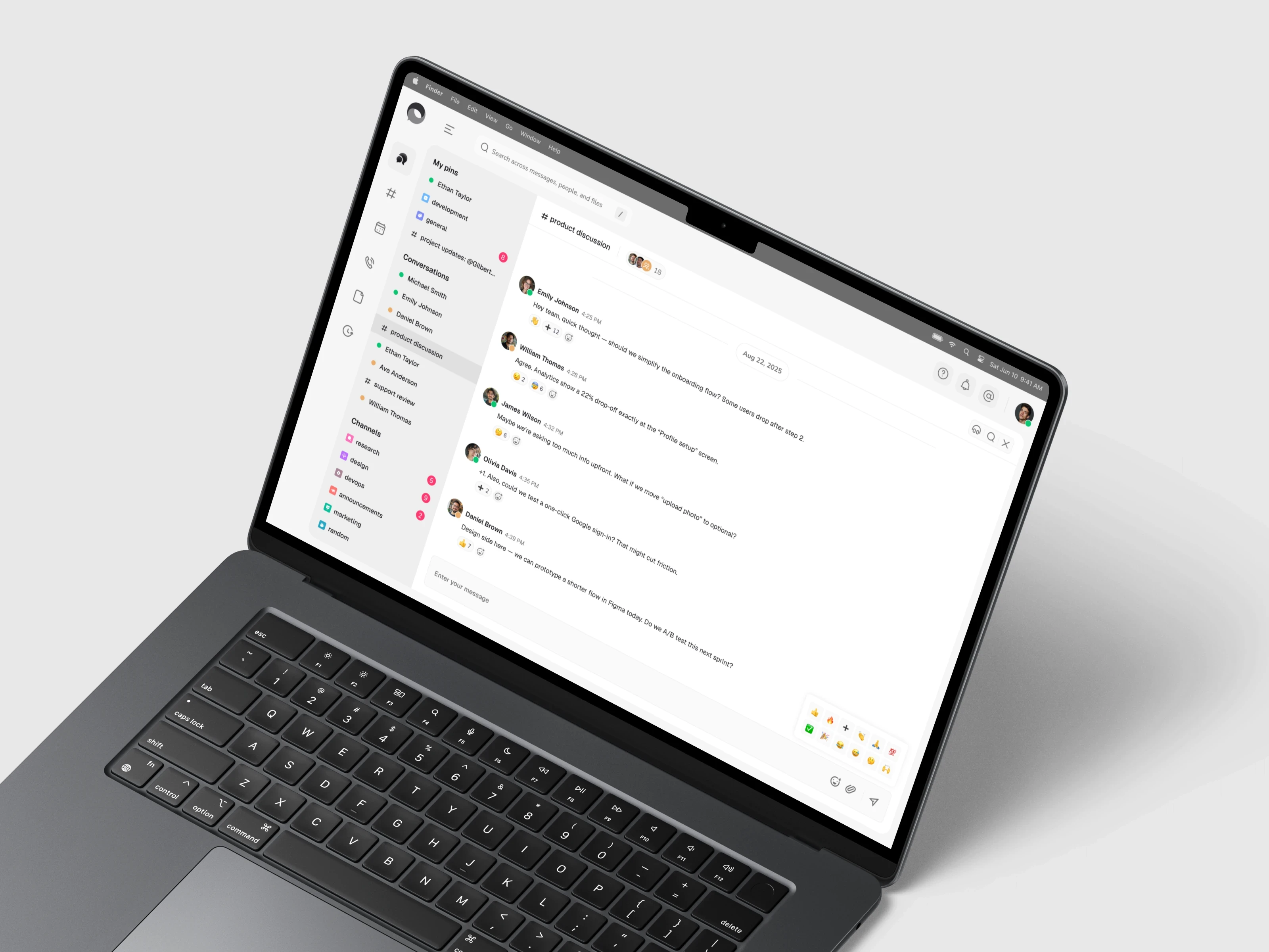 I led the end-to-end design of a corporate messaging platform (similar to Slack) for a client seeking a minimalist, clean, and intuitive interface. The goal was to create a professional, user-friendly communication tool while delivering a fast MVP.Ā