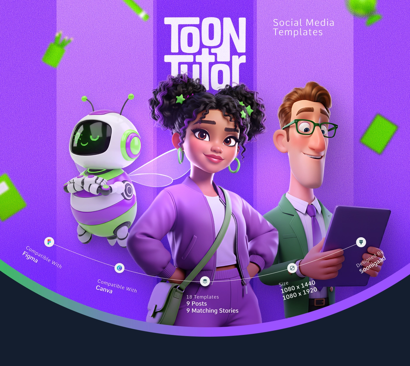Elevate your educational content with ToonTutor! π This project showcases the design process of a unique social media kit that combines high-quality 3D Pixar-style characters with professional layouts. Designed to help coaches and course creators stop the scroll and boost engagement. β¨ Project Highlights: Concept: A "Creative Lab" theme featuring 3 unique 3D characters (Rafi, Lolo, and Niho). Dual Compatibility: Meticulously designed in Figma and fully rebuilt for Canva. The Kit: Includes 18 fully editable templates (Posts & Stories).