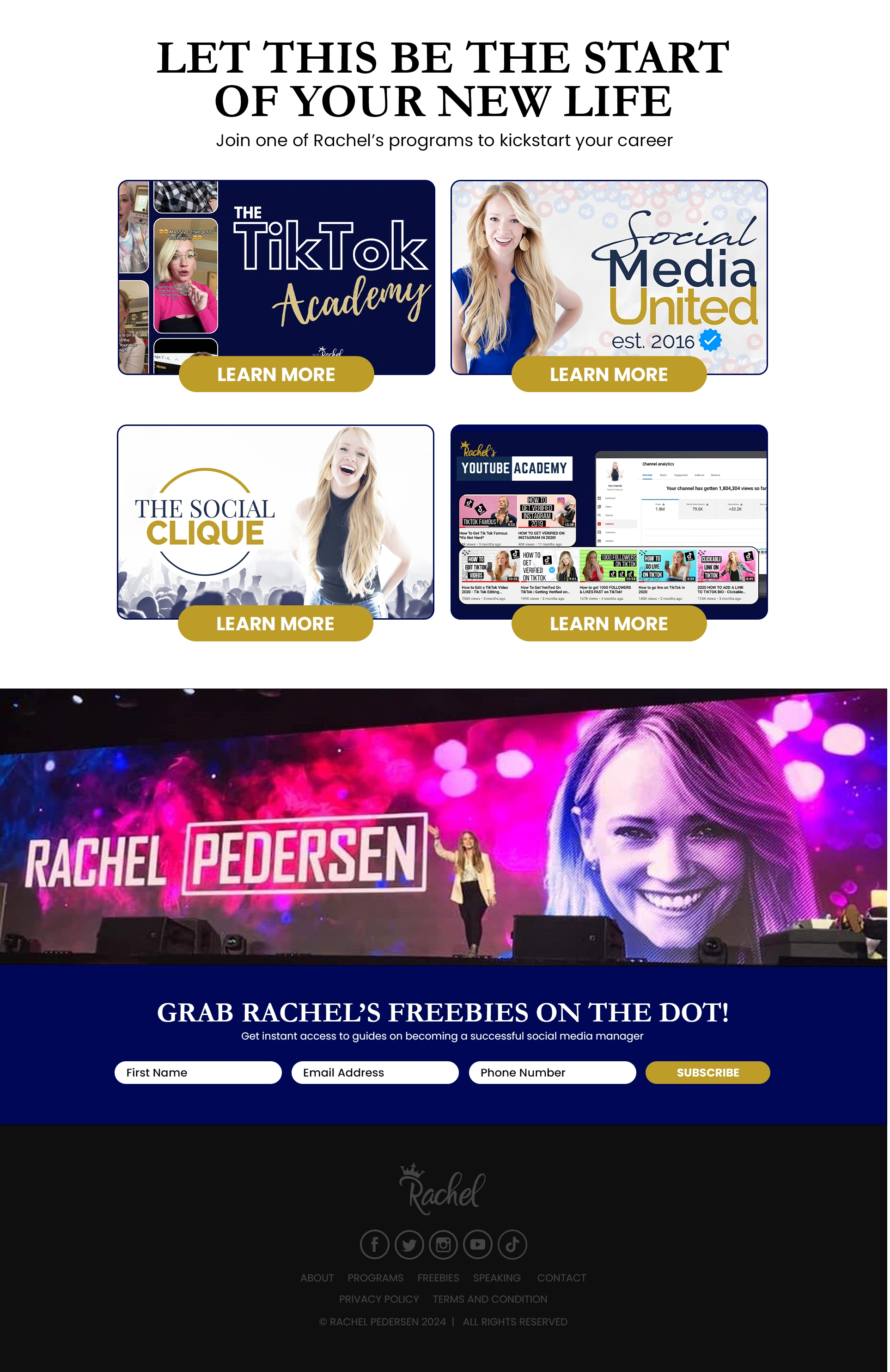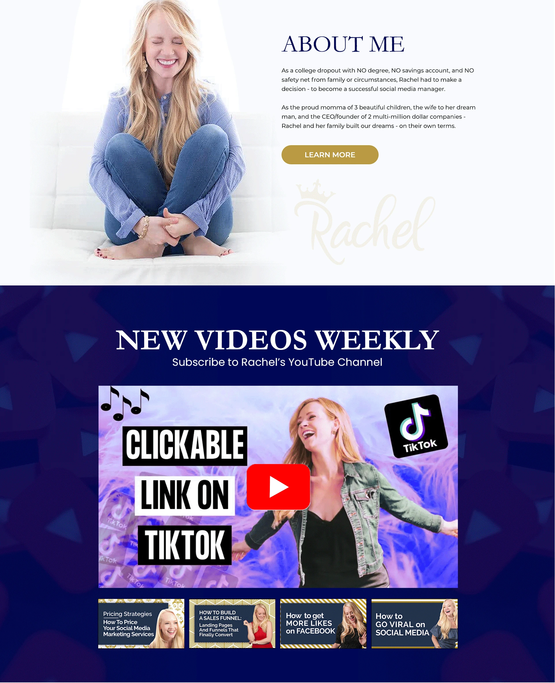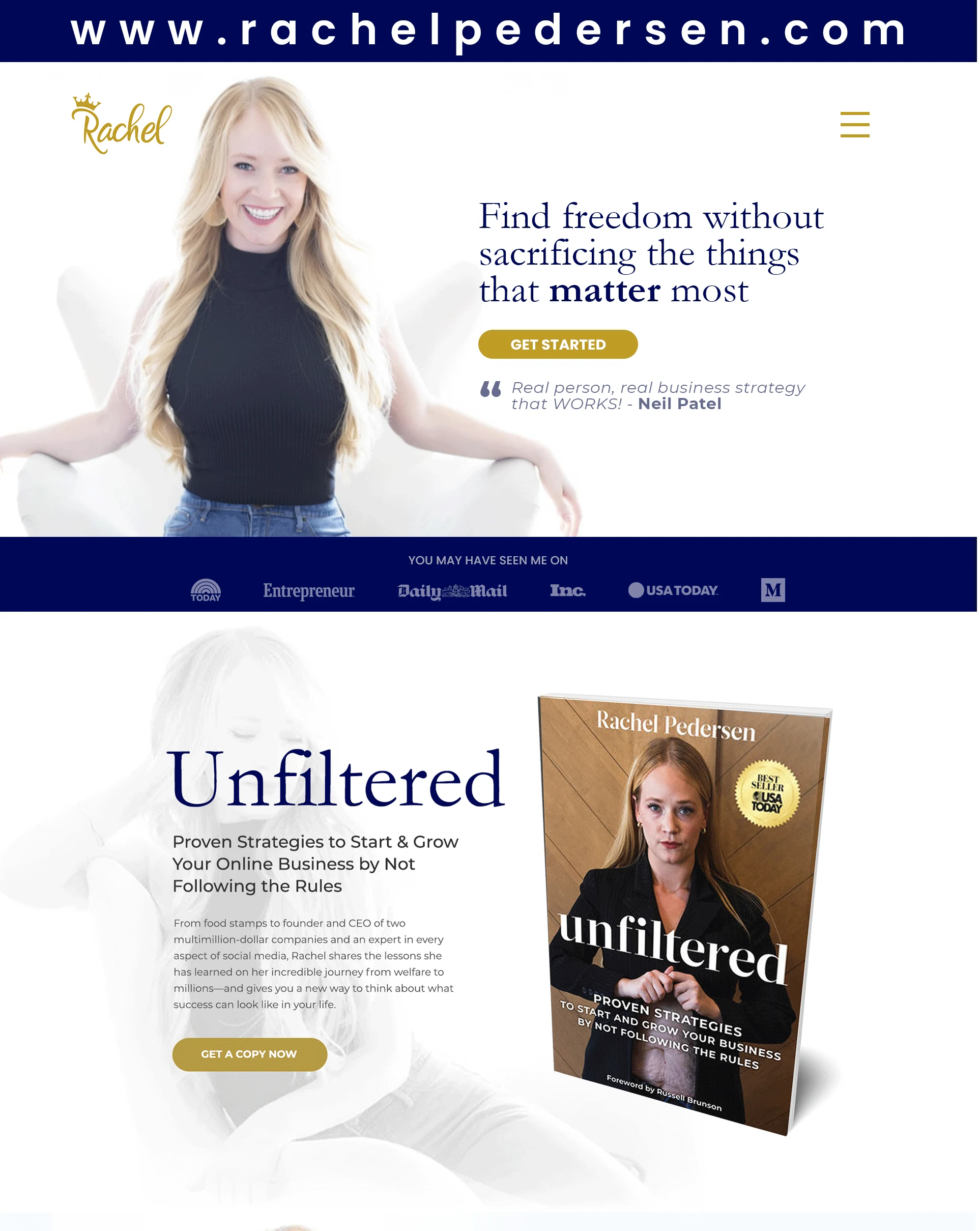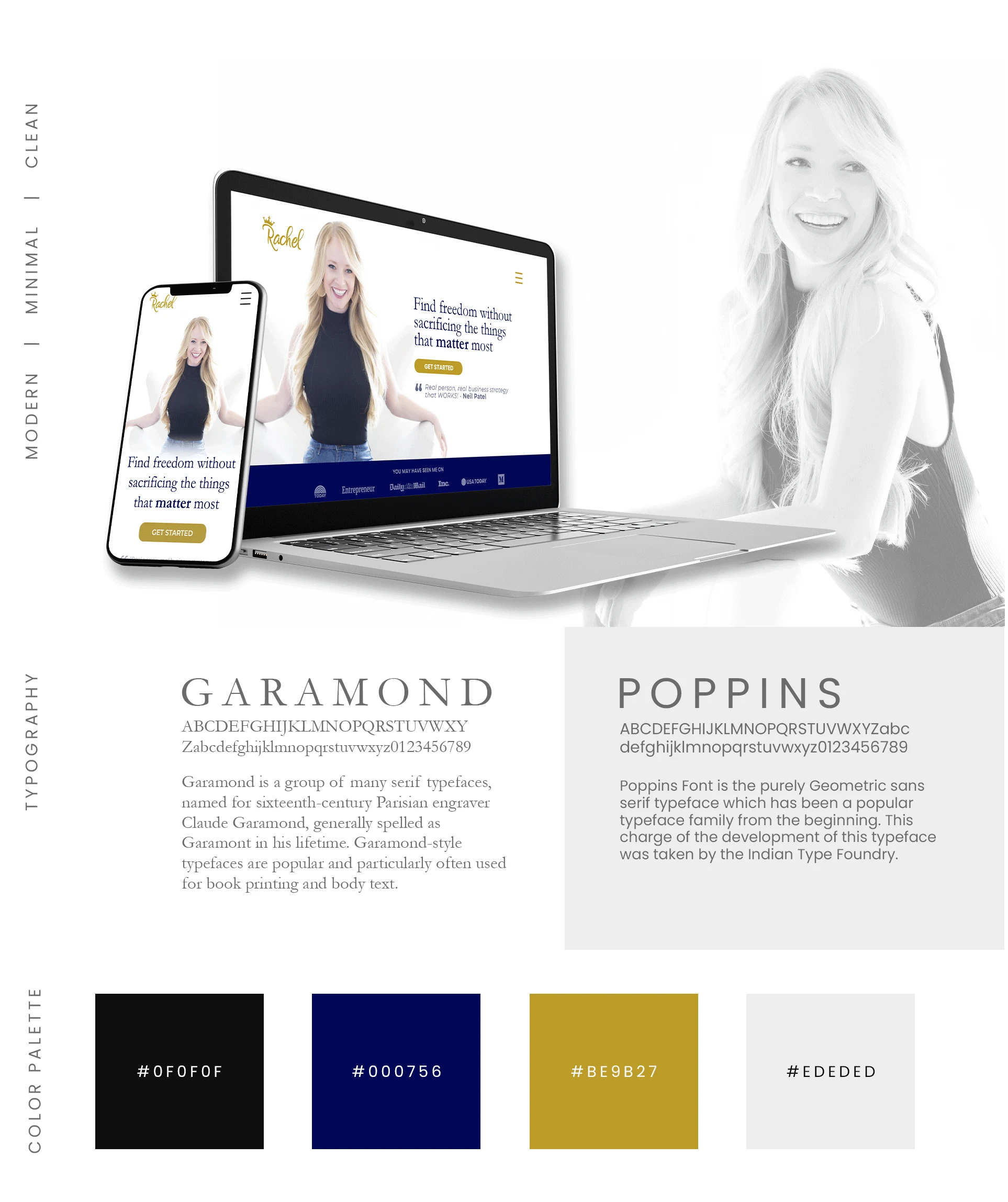 Homepage redesign concept I had using Rachel Pedersen's current brand.