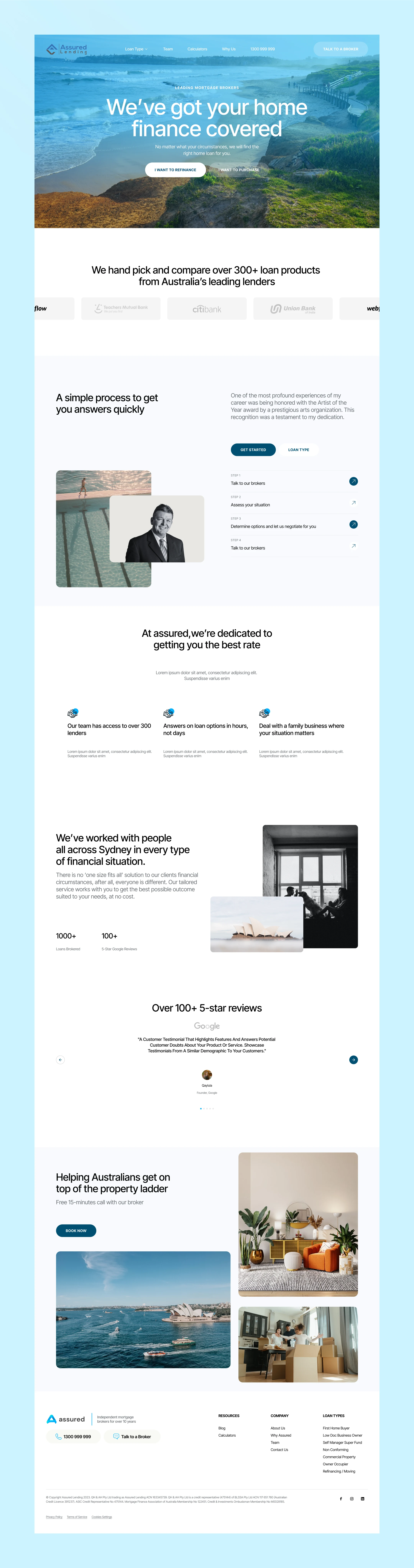 Assured Lending is a family-owned mortgage brokerage based in Sydney's Northern Beaches with over 30 years of combined experience. They serve home buyers, refinancers, and property investors across Australia, offering a remote-friendly application process via phone and video chat with access to 40+ lenders.