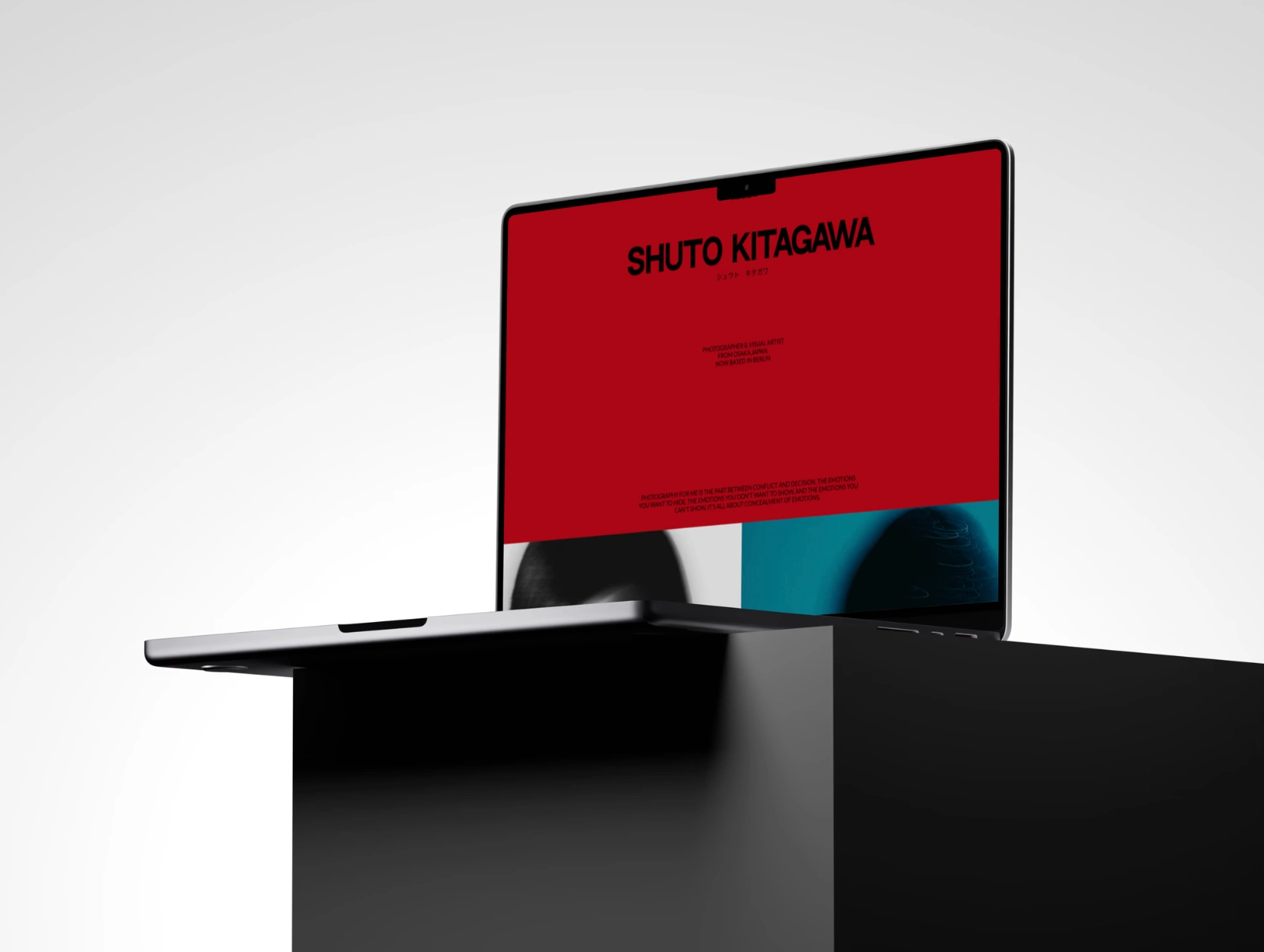A portfolio website with a slideshow and clean navigation. Negative space centers attention on the photography, while a red accent creates a cinematic mood.