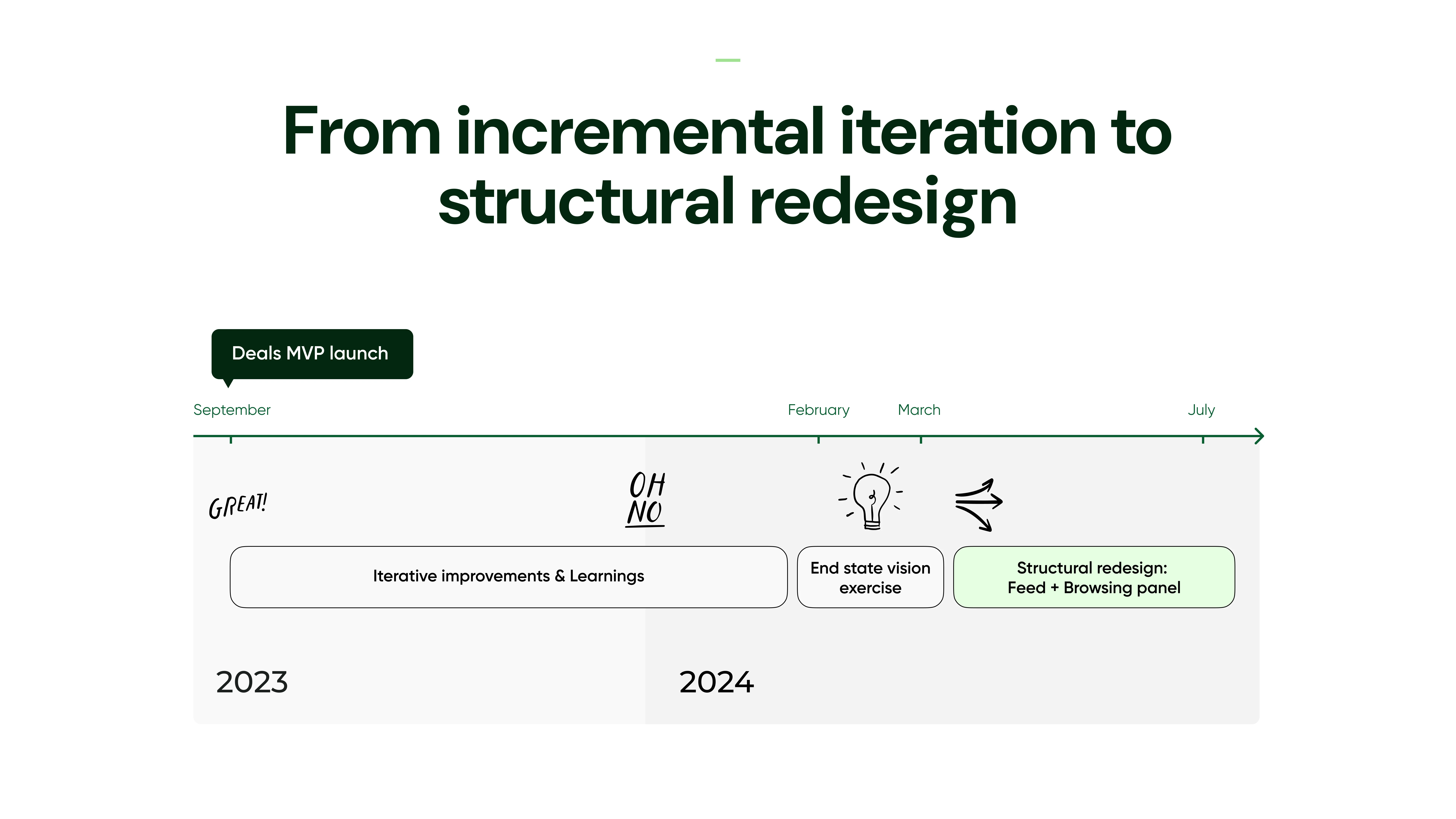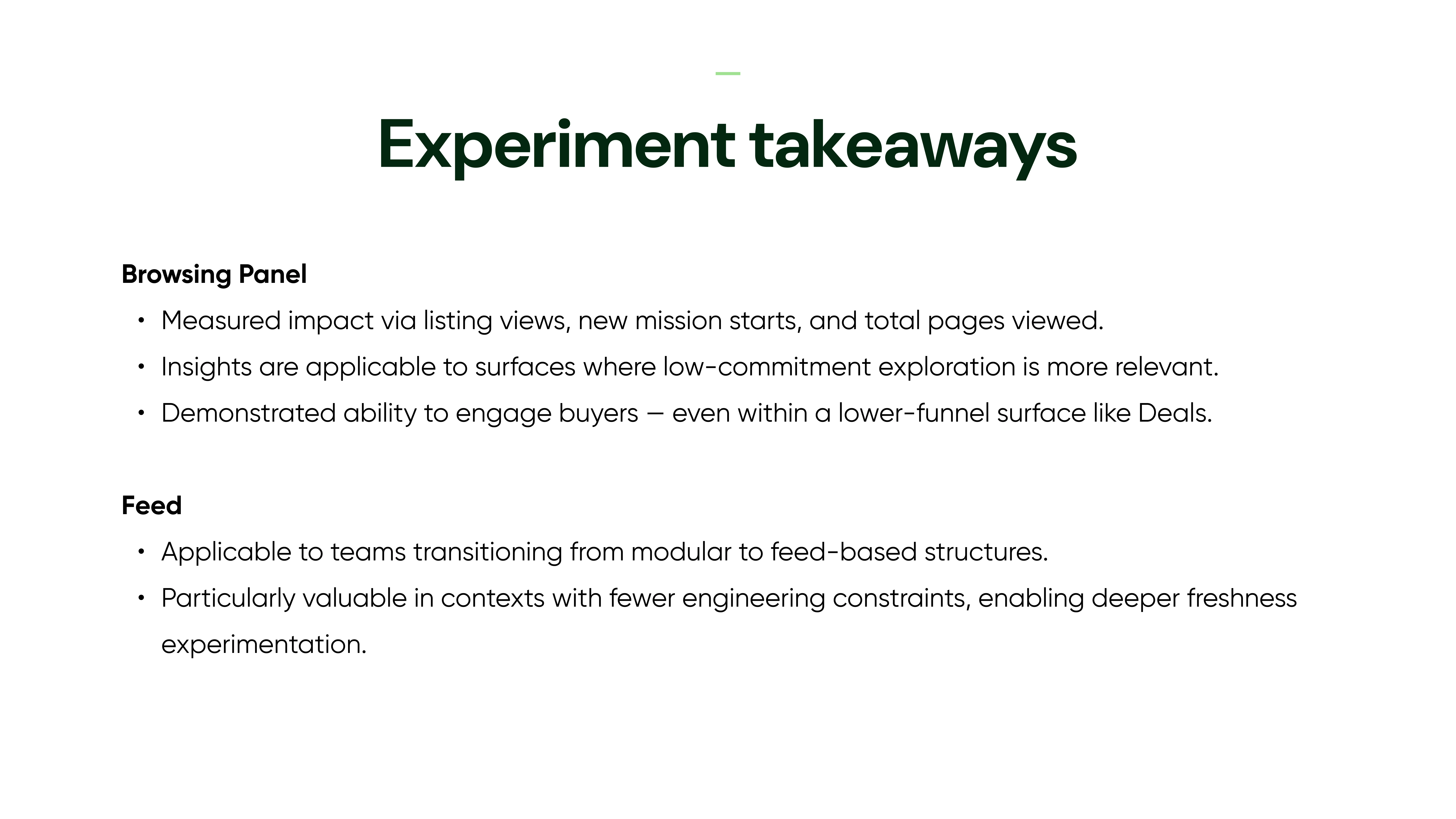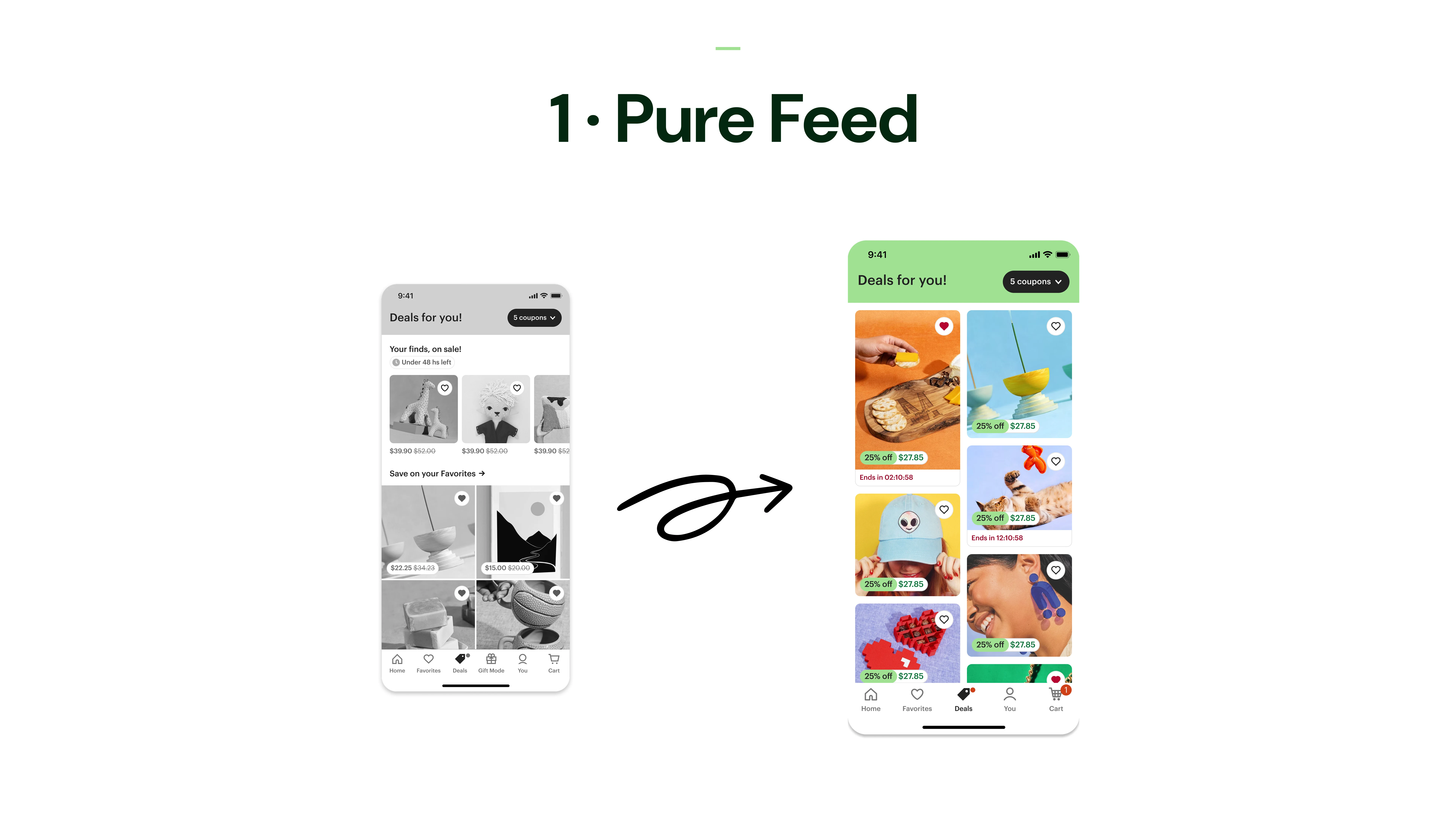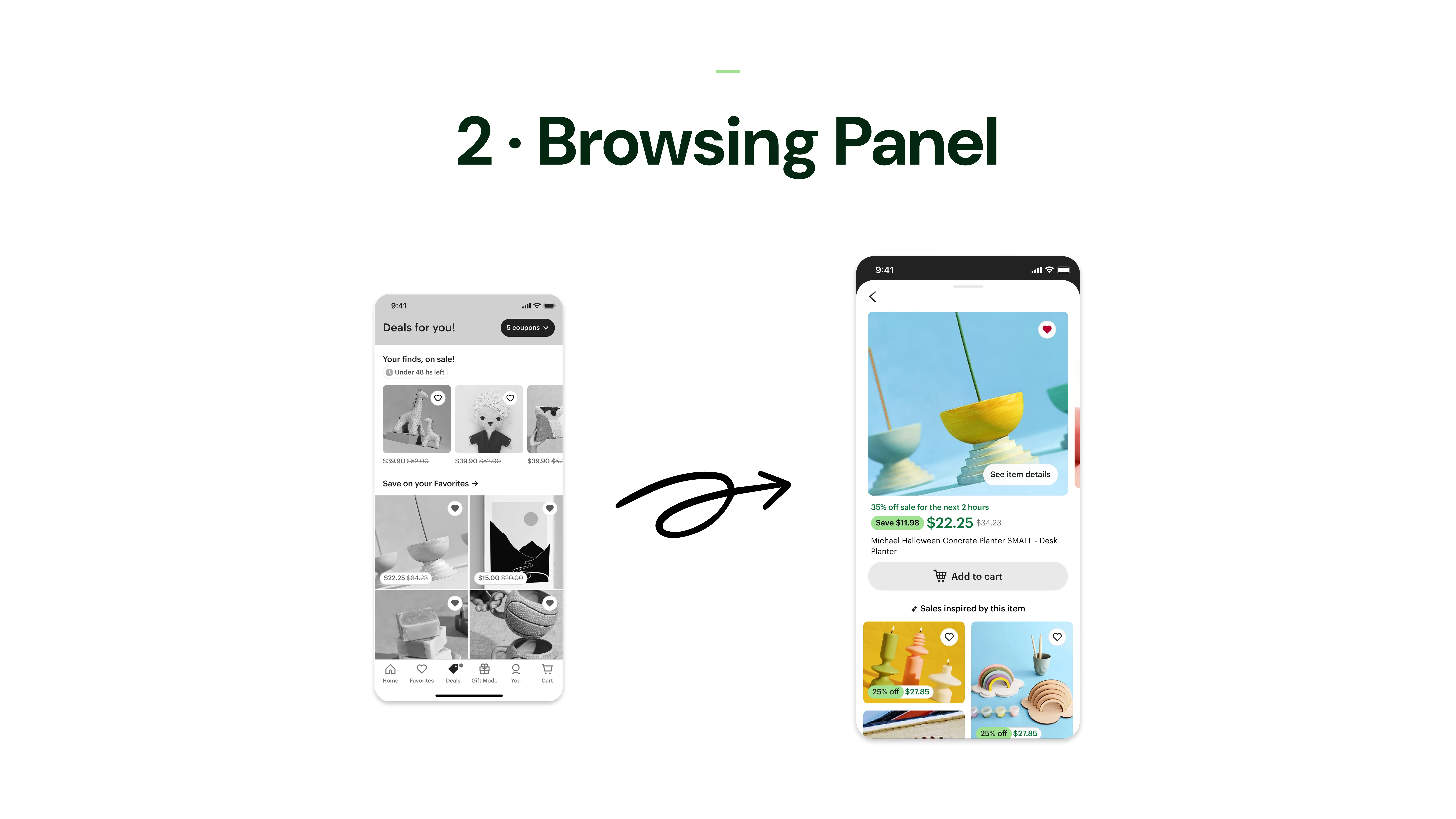 Redesign of Etsy’s Deals tab to combat staleness and boost repeat visits, shifting from modules to a dynamic feed and low-commitment browsing panel.