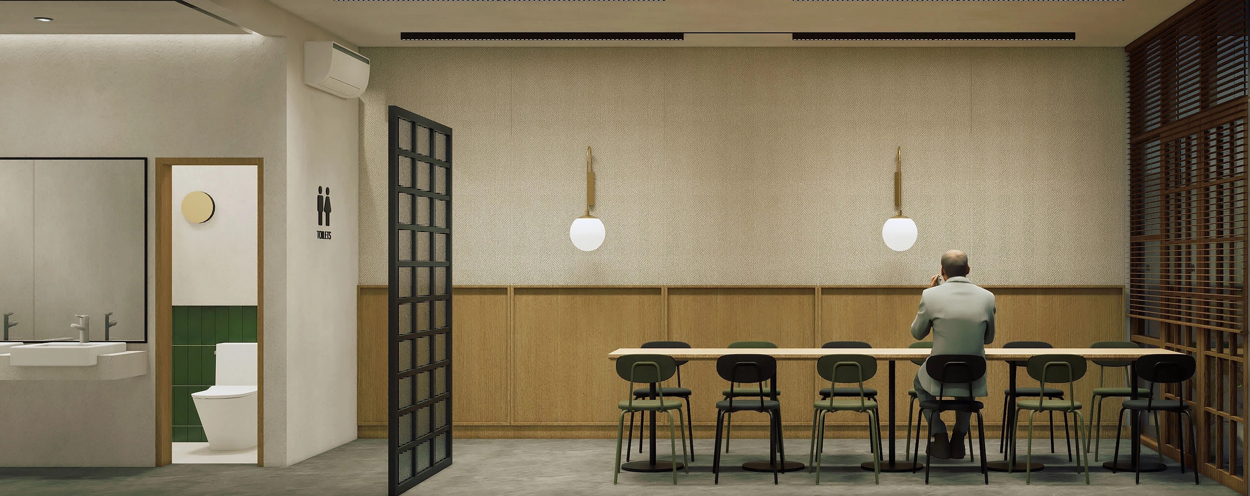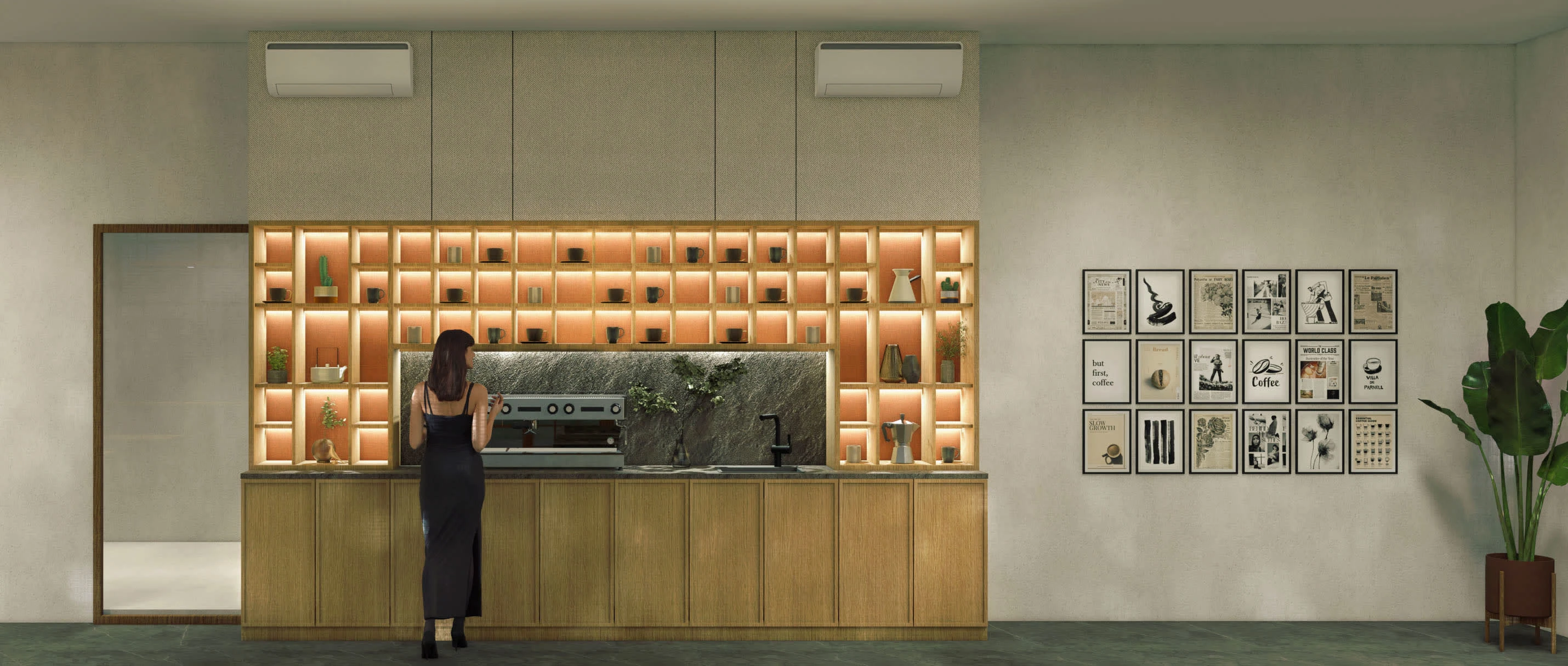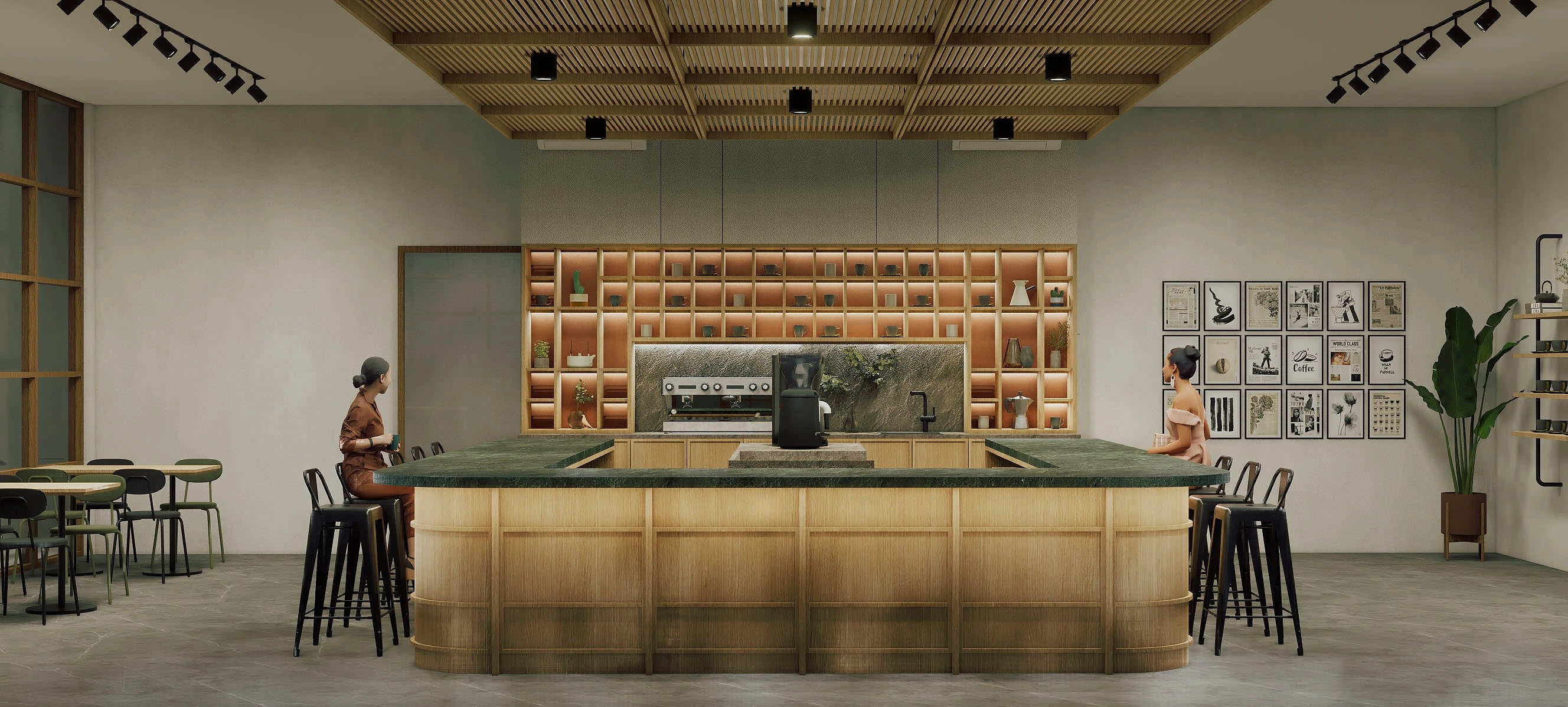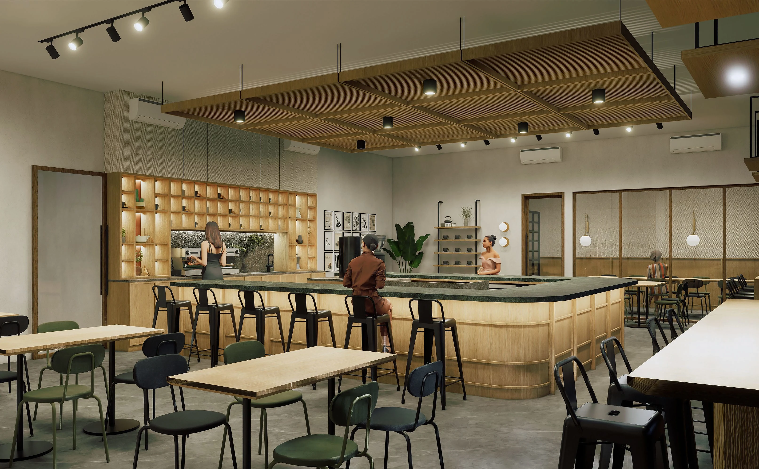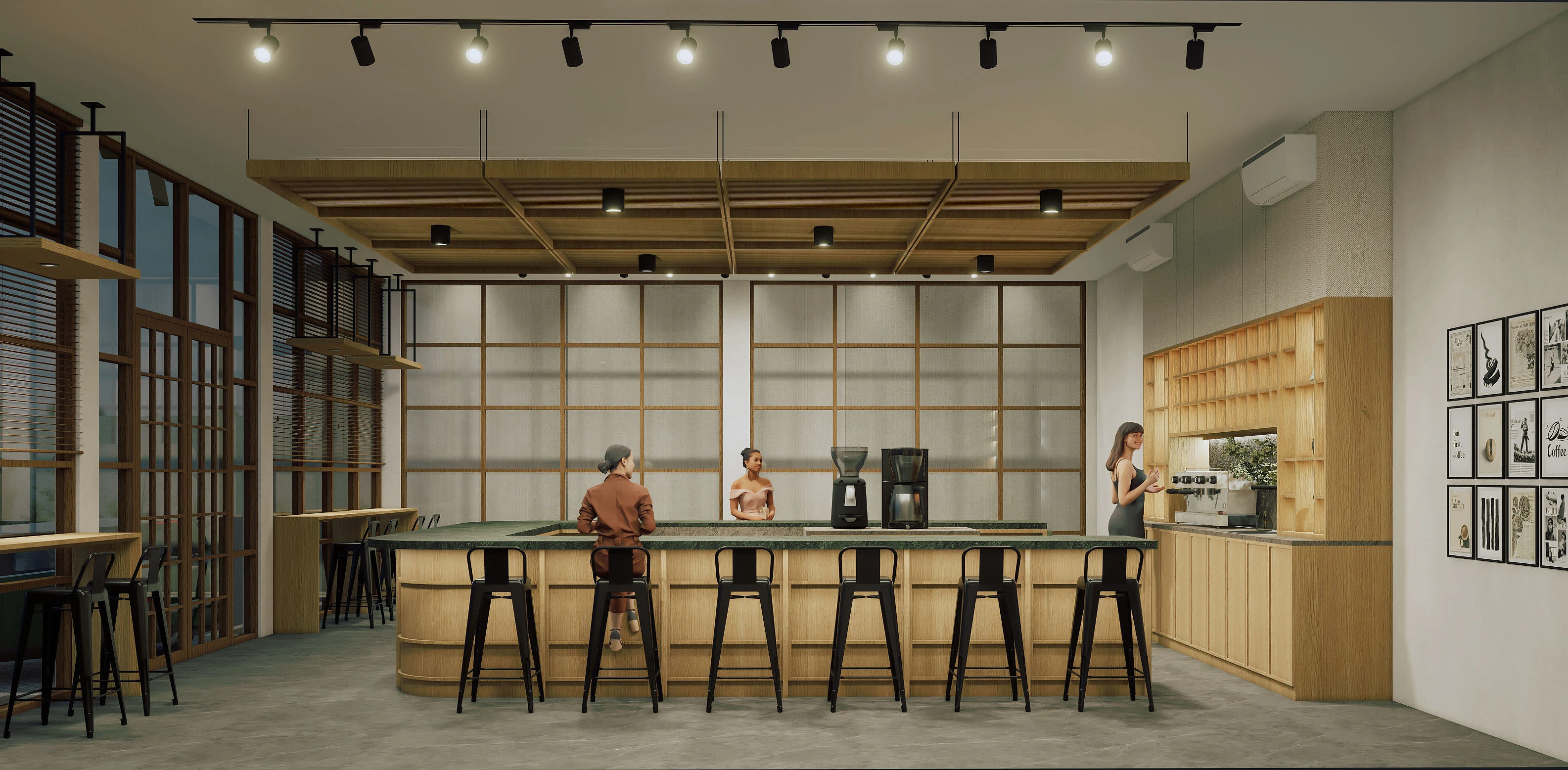 Remodeled an outdated, underutilized area to create a brand-new, more elegant, and intimate area that is ideal for a slow coffee bar!