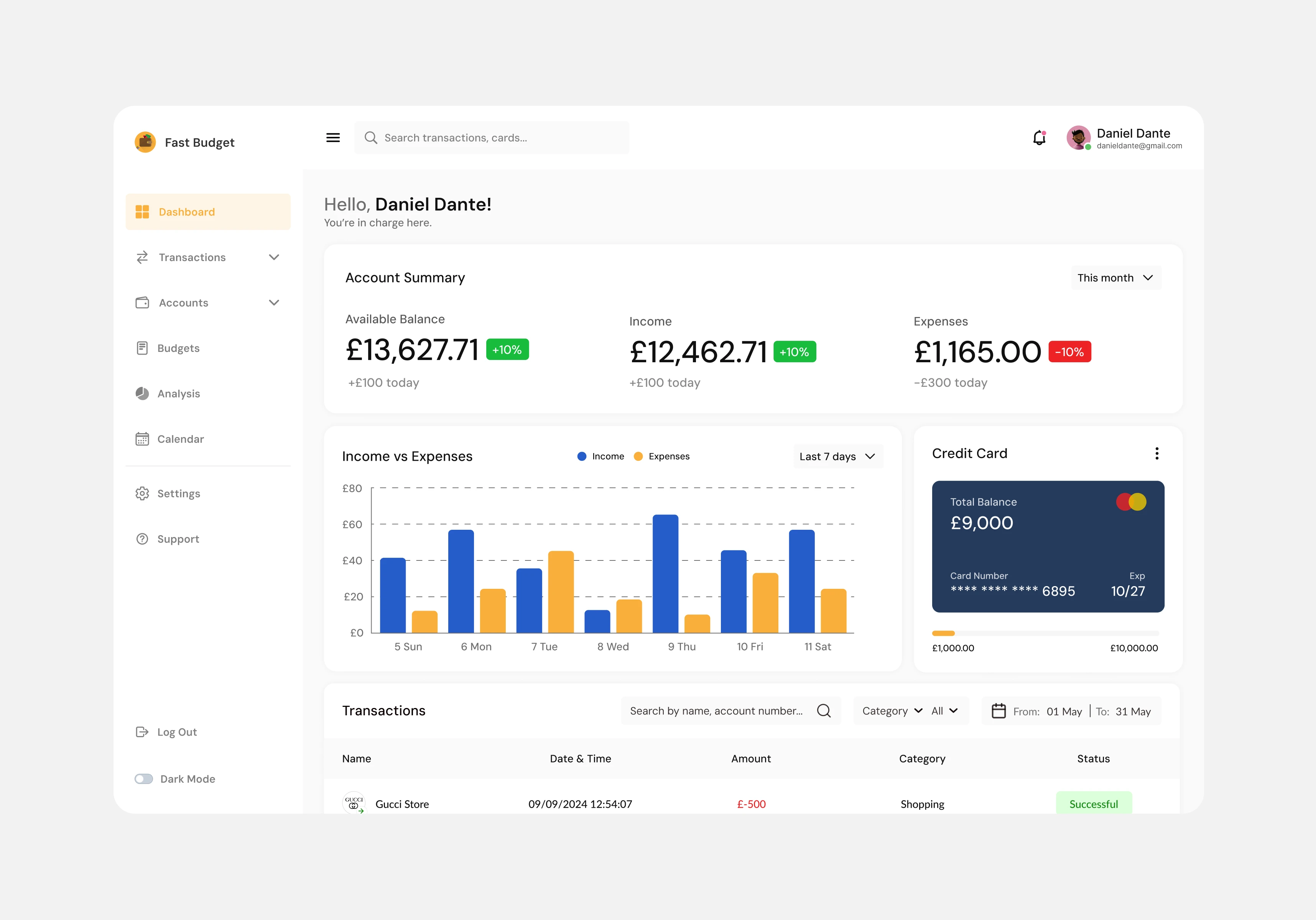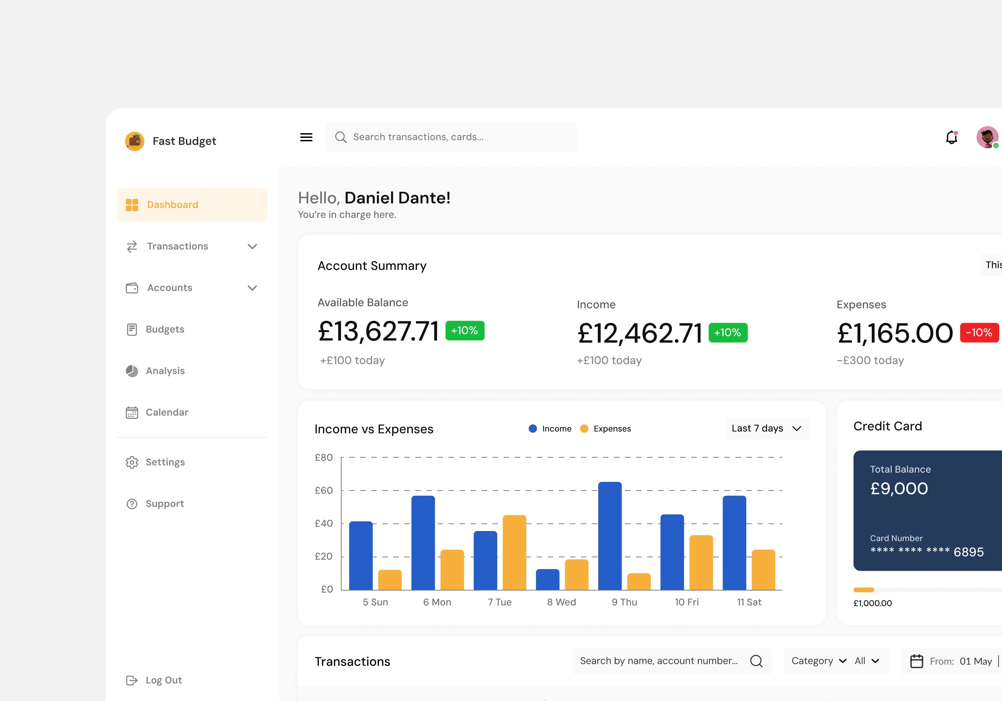 Redesigned the customer-side dashboard for Fast Budget. This was aimed at improving the overall visual design using specific principles Balance, Contrast, and Simplicity.