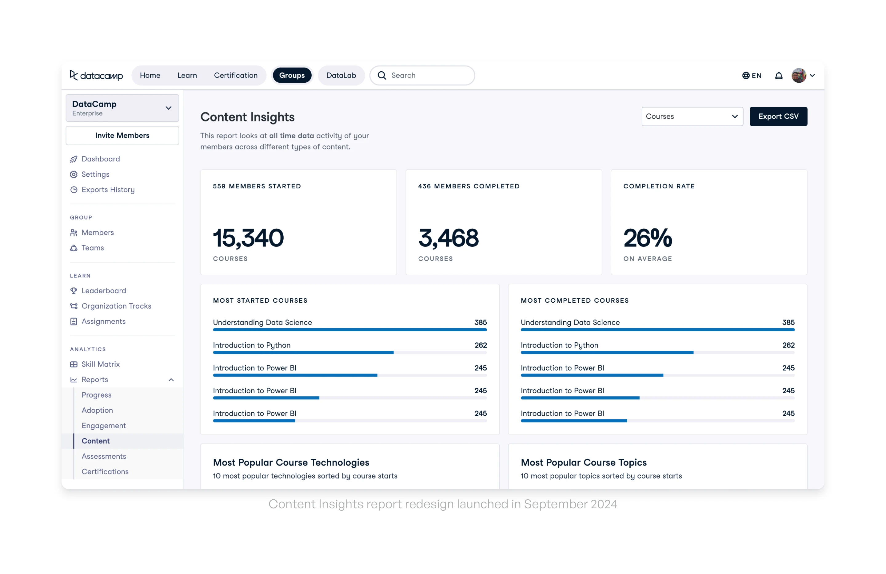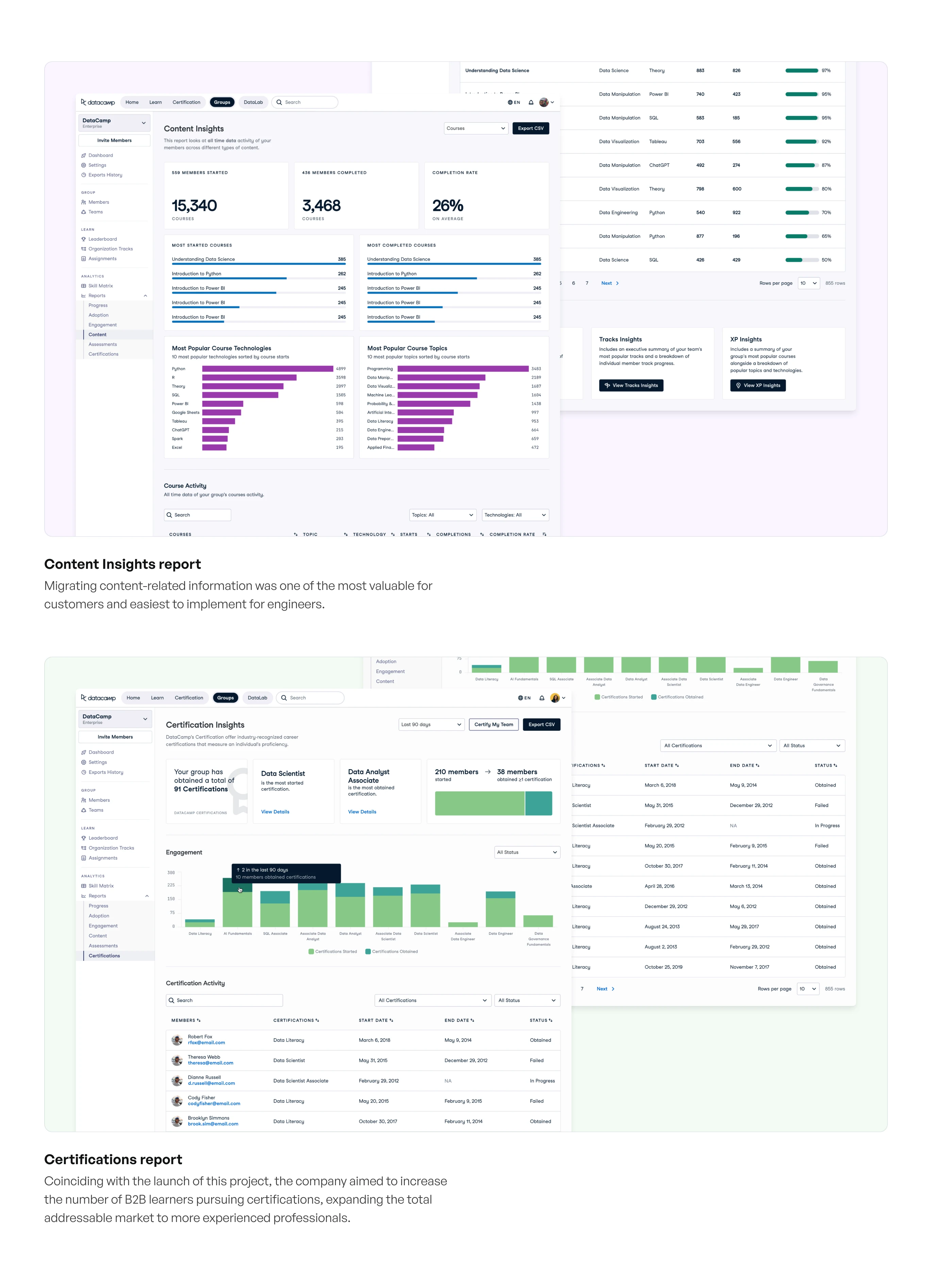 Enhancing in-app reports was a complex, cross-functional initiative with many moving parts. Given that reports constitute 60% of DataCamp’s B2B app, we recognized the project's scale and significance.