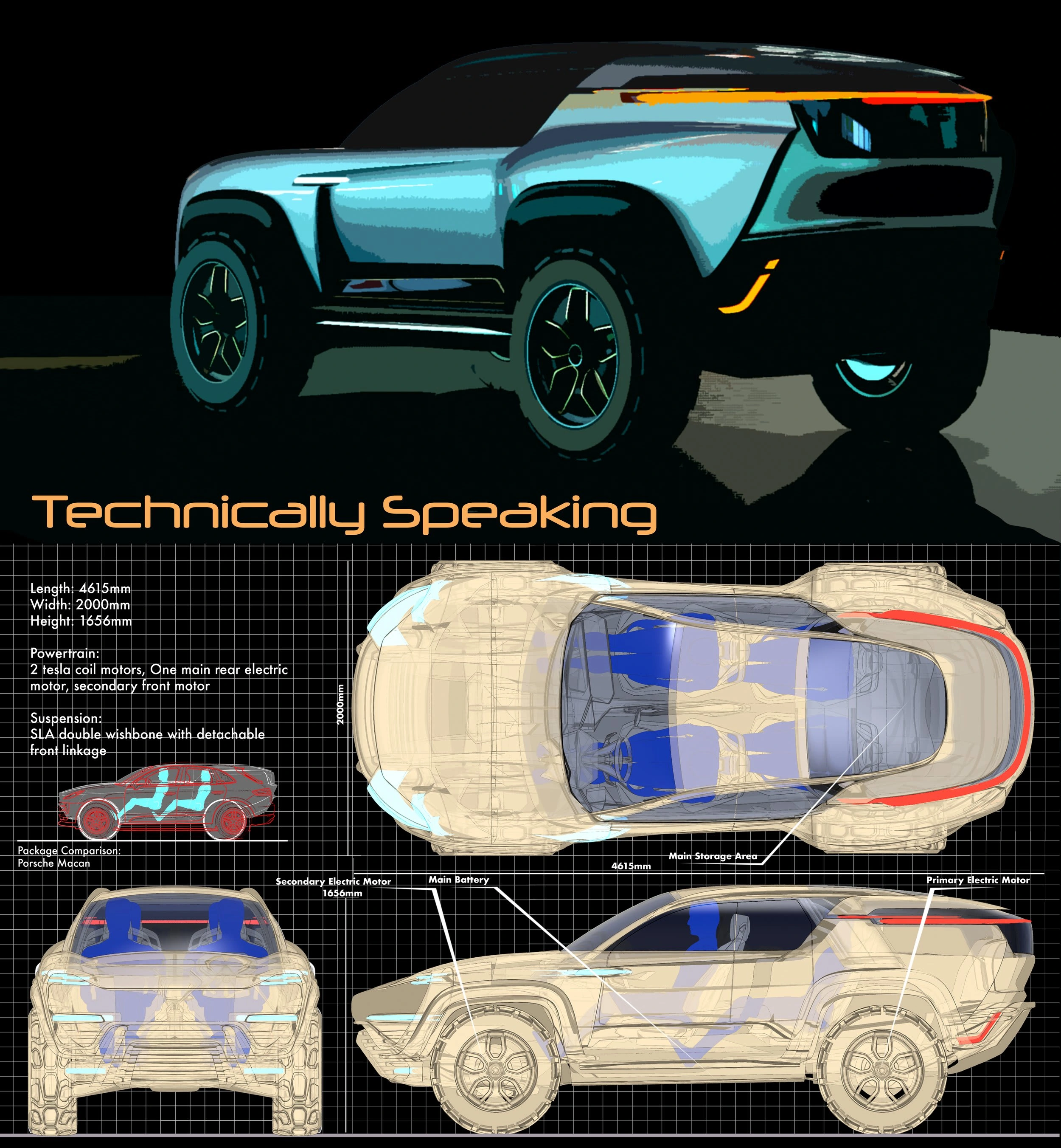 This project was created to see how Porsche can tackle a small package off road capable trail vehicle.